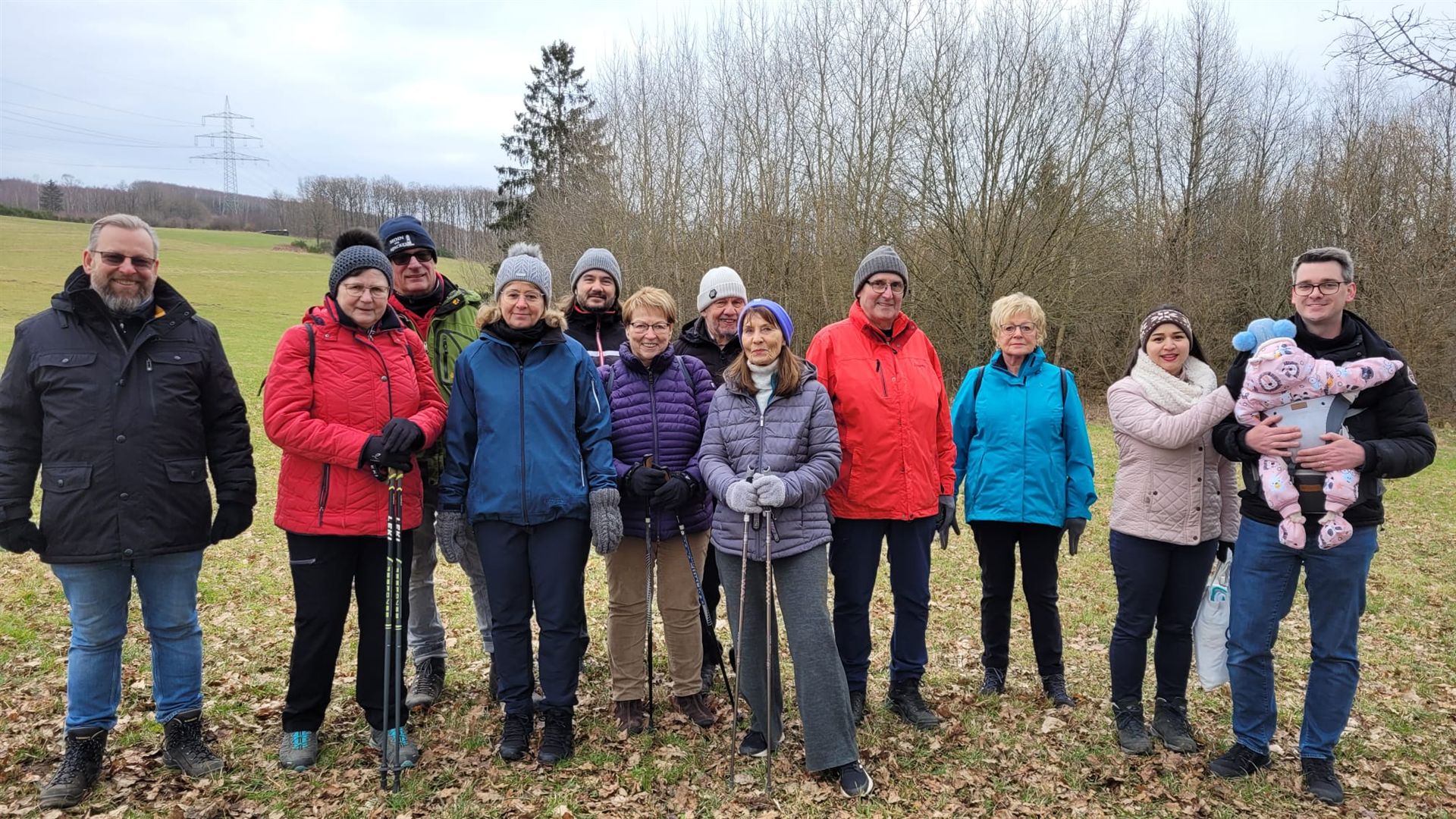 Am Sonntag, den 26.01.2025, trafen sich 15 Wanderfrauen und Wandermänner zur ersten Wanderung im neuen Jahr 2025. Die Wanderung erfolgte bei grauem Wetter mit Regen über Anzhausen, Gernsdorf nach Rudersdorf. Auf der 9 km langen Strecke konnten trotzdem noch schöne Eindrücke mitgenommen werden. In der Pizzeria Firenze in Rudersdorf wurde eine Mittagspause bei gutem Essen eingelegt. Den Rückweg zu Fuß hat dann nur noch ein Teil der Wanderfreunde bestritten. Insgesamt wurde eine Wanderstrecke von 15 km zurückgelegt.