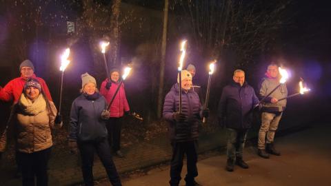 Unsere traditionelle Fackelwanderung wurde am Samstag, den 15.02.2025, durchgeführt. 13 Wanderer starteten um 15.00 Uhr von der Hütte aus über die Höhen von Flammersbach und Anzhausen bis zur Pizzeria Picco Bello. Nach einem gemeinsamen Abendessen wurden die Fackeln entzündet und es ging bei Feuerschein durch Wald und Feld zurück nach Flammersbach.
