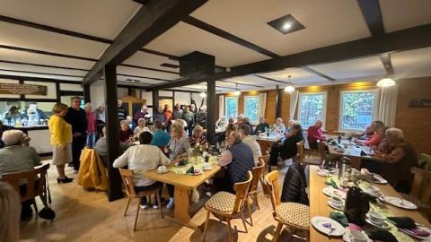 Am Sonntag, den 28.01.2024, sind 21 Wanderfrauen und Wandermänner nach Irmgarteichen von der Hütte aus aufgebrochen. Bei bestem Wanderwetter konnten wir auf unserer 9 km langen Strecke sehr schöne Eindrücke erleben. Anschließend sind wir im Gasthof Jokebes zu einer zünftigen Mahlzeit eingekehrt, hier sind dann auch noch 4 weitere Personen zu uns gestoßen, die sich die lange Wanderung nicht mehr zugetraut haben. Den Rückweg zu Fuß hat dann nur noch ein kleiner Teil der Wanderfreunde bestritten.