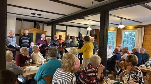 Mit 55 Personen war die Seniorenfeier sehr gut besucht. Das Wetter hätte nicht besser sein können, neben Kaffee und Kuchen gab es noch zwei Tänze von drei jungen Flammersbacherinnen. Des Weiteren wurden vier Lieder vom 100jährigen Bestehen des Niederdielfers MGVs auf der Leinwand präsentiert.