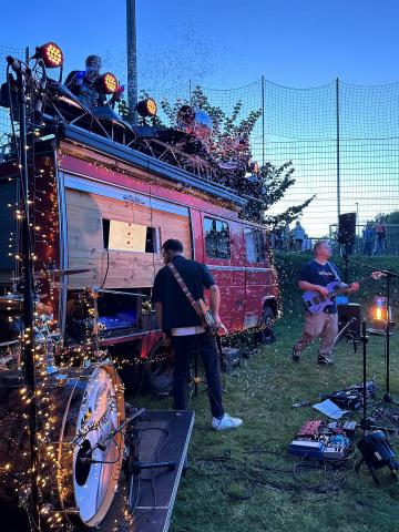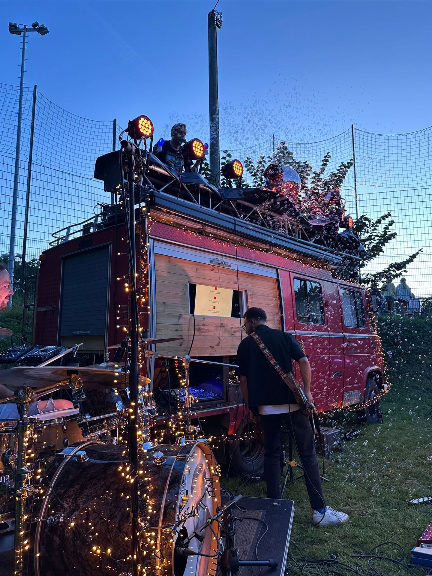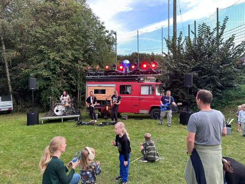 Die zahlreichen Besucher konnten eine Vielzahl an Speisen und Getränken genießen. Die Hüpfburg und viele andere angebotene Spiele haben gerade viele junge Familien mit ihren Kindern zum Fest gelockt und alle konnten einen entspannten Nachmittag bei uns verbringen. Der Abend war dann noch mit einem Highlight versehen. Die Wilnsdorfer Band KosmikKurier kam mit ihrem Feuerwehr-Oldtimer hat uns mit Live-Musik versorgt. Der Auftritt geschah auf Spendenbasis. Die wirklich reichlichen Spenden gehen an die Kinderinsel der DRK-Kinderklinik.