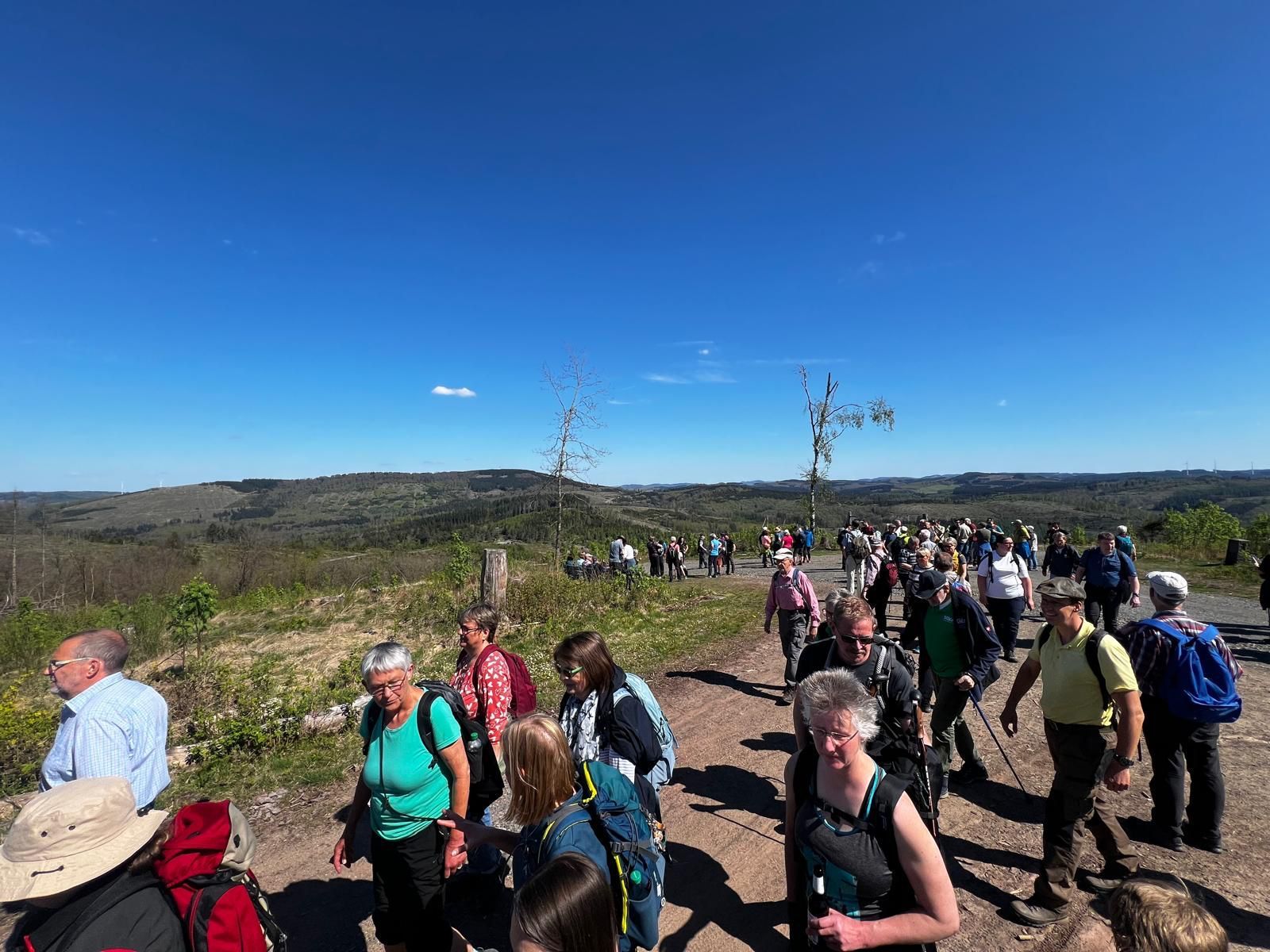 Am Sonntag, den 27.04.2025, hatten wir eine Sternwanderung zum Kindelsbergturm. Wir sind mit 83 Wanderfreundinnen und Wanderfreunden von der SGV-Hütte in Ferndorf zum Kindelsberg und wieder zurück gelaufen. Das Wetter, die Organisation und die Verpflegung waren TOP. Insgesamt sind rund 250 Personen von vier unterschiedlichen Startpunkten losgegangen.