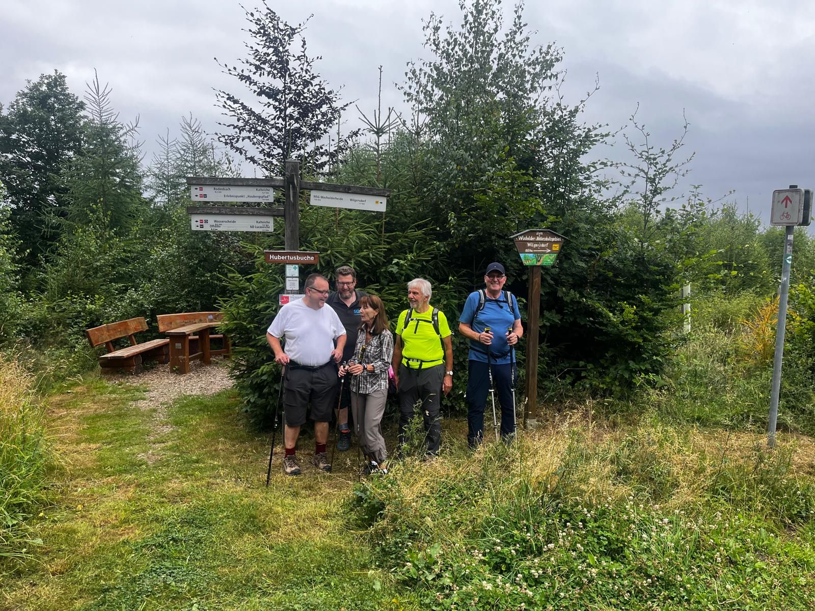 Am Sonntag dem 16.06.2024 haben sich 13 Wanderer/innen auf einen 12 km langen Rundwanderweg um Wilgersdorf aufgemacht. Es ging vorbei an der Wacholderheide, dem traditionell erstellten Hauberg bis zu einem Rastplatz mit Hütte. Dort ließen sich die hungrigen Wanderer eine Brotzeit aus dem Rucksack gut schmecken. Von dort ging es weiter vorbei am Goldschmiedsborn bis zum Ausgangspunkt.