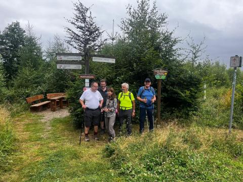 Die Wanderung begann am alten Bahnhof Zollhaus über grüne Wiesen bis nach Grund. Vorbei an Jung-Stillings Geburtshaus ging es mit einem wunderschönen Ausblick auf Grund bergauf bis zur Kronprinzeneiche. Auf der Ginsburger Heide wurde eine Rast eingelegt um frisch gestärkt den Rückweg anzutreten. Die Wegstrecke umfasste 4 Stunden und wurde von 8 Wanderern zurückgelegt.