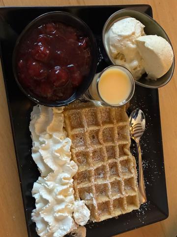 Oben gab es Waffeln mit diverse Toppings oder hausgemachte Kuchen - lecker ?