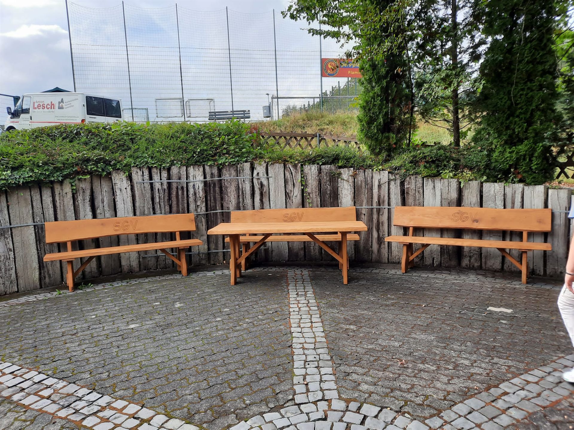 Dank einer Spende von Westnetz konnten die alten Bänke auf dem Platz durch drei neue Bänke und einen Tisch ersetzt werden. Das Arrangement lädt gerade bei Sonnenschein zu einer schönen Brotzeit ein.