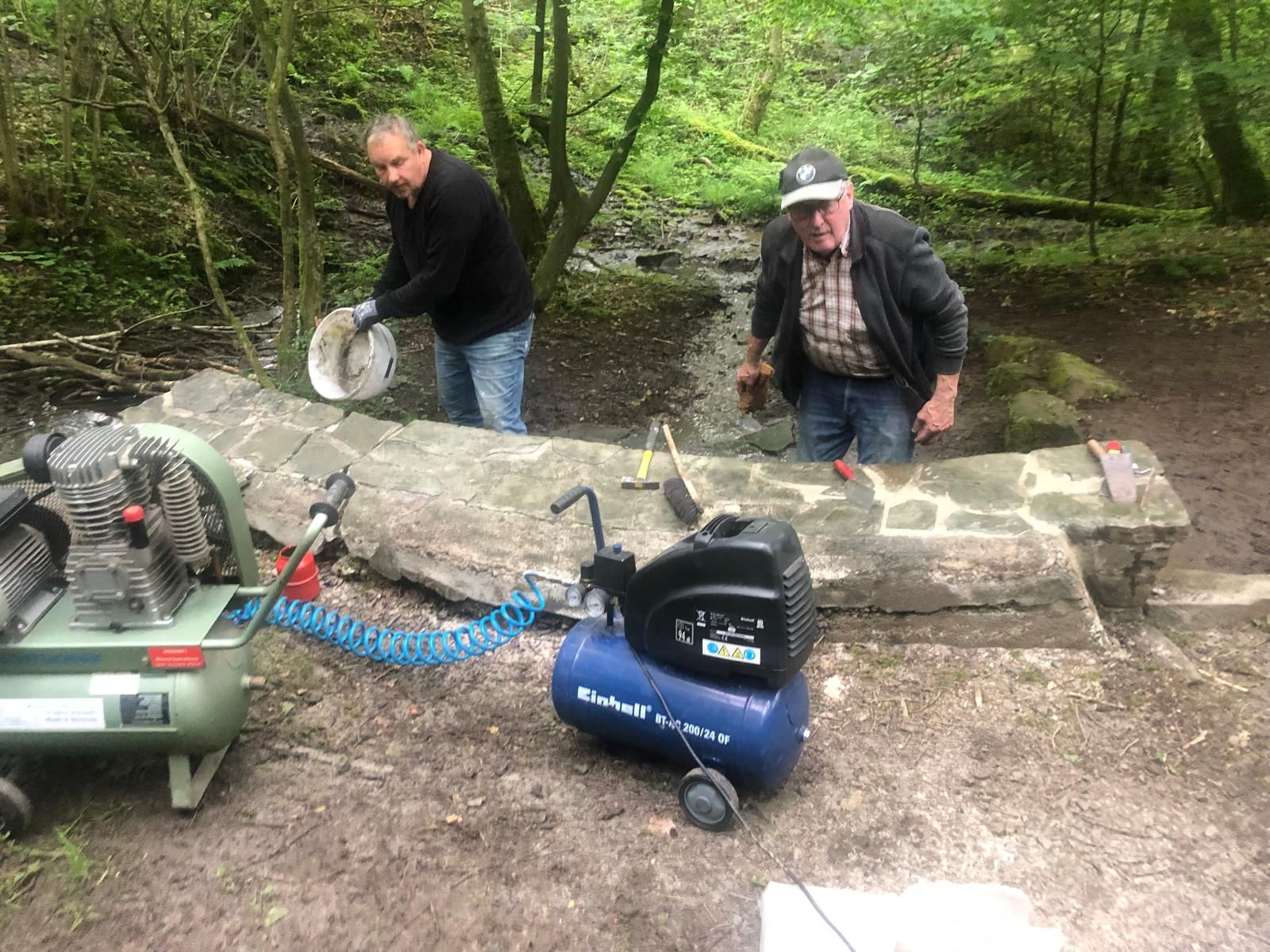 Die Flammersbacher Quelle und der umliegende Bereich ist etwas in die Jahre gekommen. Aus diesem Grund haben Thomas, Reinhard und Oskar kleine Sanierungsarbeiten vorgenommen. Es wurde ein neuer Wassertrog vor dem Wasserauslauf gestellt, die Bodensteine vor der Quelle schön ausgerichtet, die Fugen im Mauerwerk ausgebessert sowie die umstehenden Bänke abgeschliffen und neu gestrichen. Großen Dank an euch!