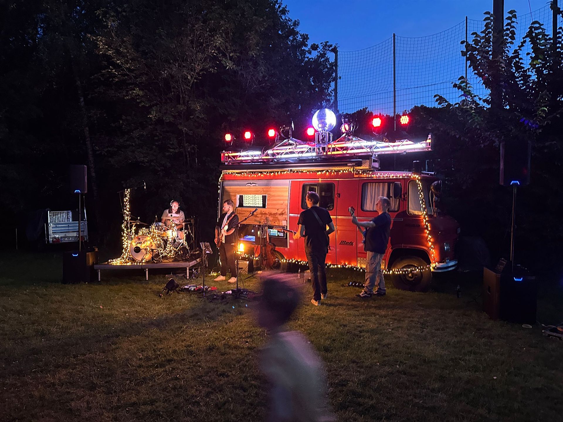 Die zahlreichen Besucher konnten eine Vielzahl an Speisen und Getränken genießen. Die Hüpfburg und viele andere angebotene Spiele haben gerade viele junge Familien mit ihren Kindern zum Fest gelockt und alle konnten einen entspannten Nachmittag bei uns verbringen. Der Abend war dann noch mit einem Highlight versehen. Die Wilnsdorfer Band KosmikKurier kam mit ihrem Feuerwehr-Oldtimer hat uns mit Live-Musik versorgt. Der Auftritt geschah auf Spendenbasis. Die wirklich reichlichen Spenden gehen an die Kinderinsel der DRK-Kinderklinik.
