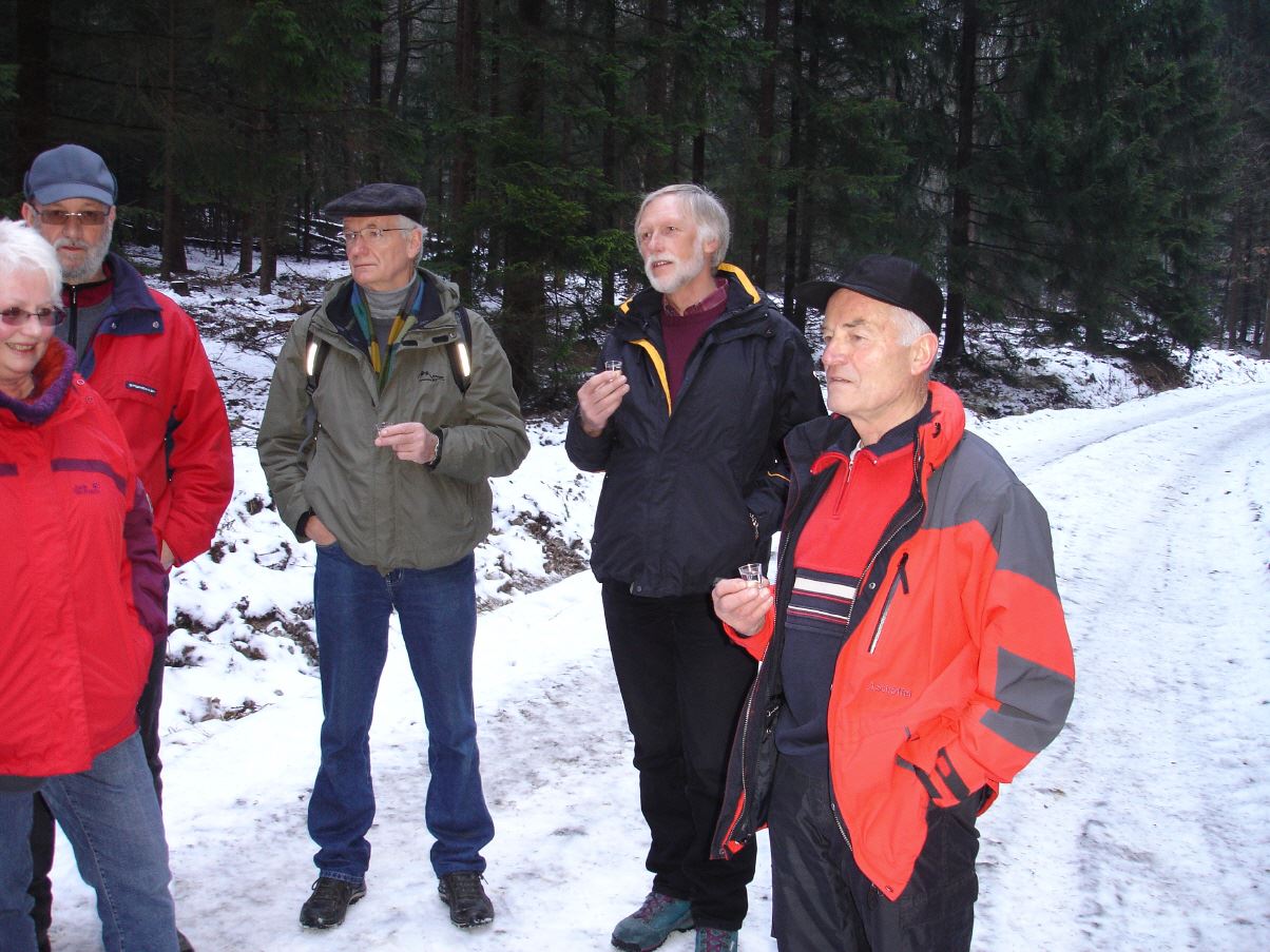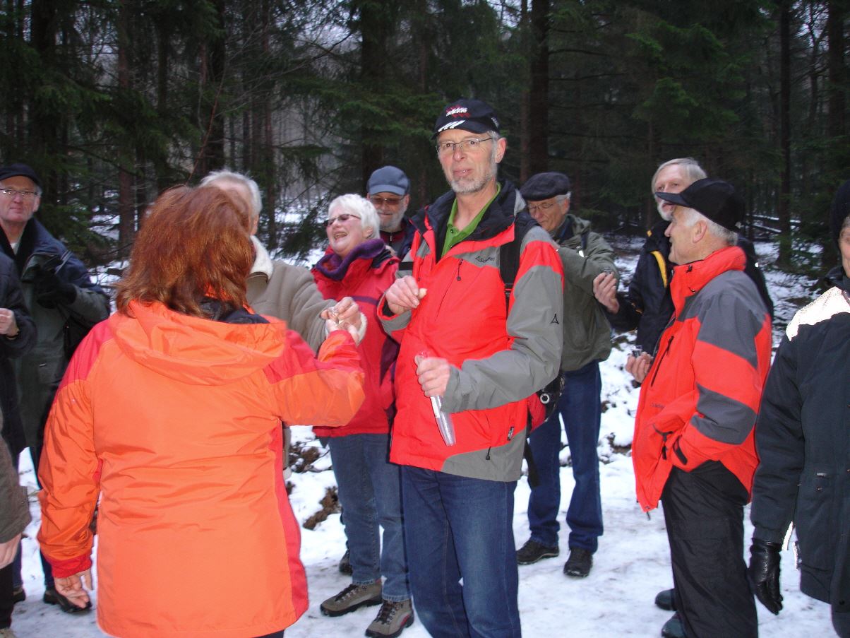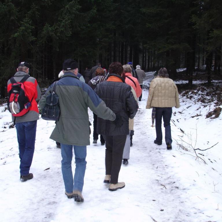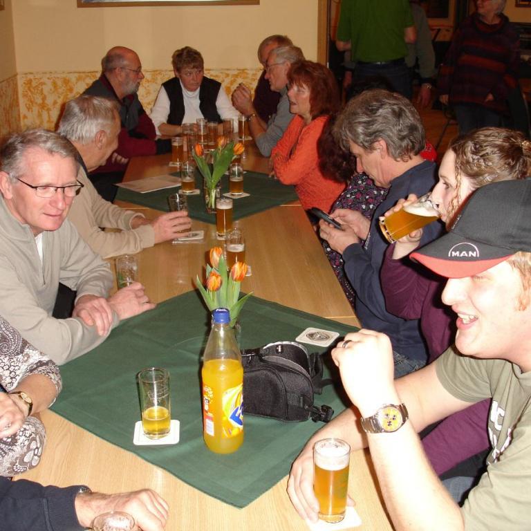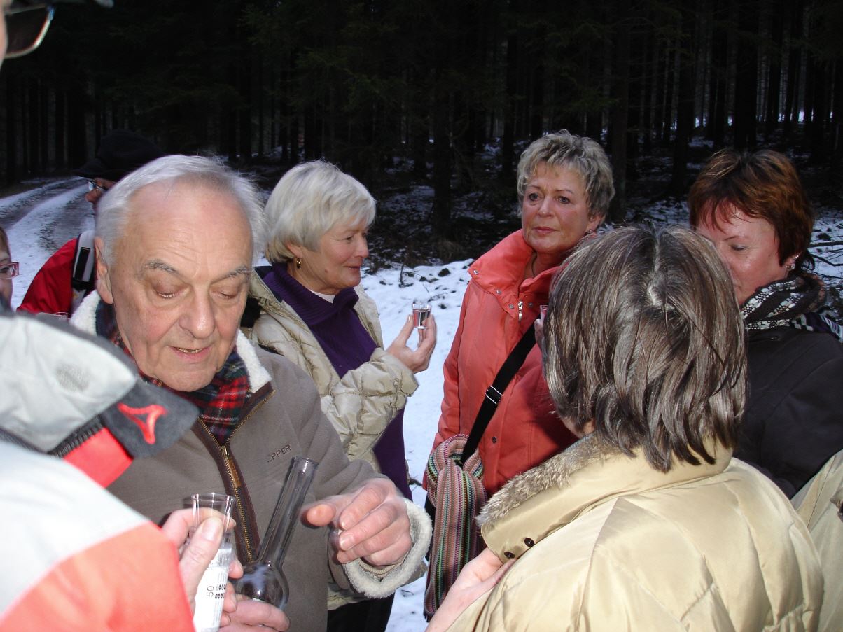 Regina und Rainer Müller hatten sich etwas einfallen lassen mit ihrer Wanderung zur Ilsenbraurei nach Littfeld. 26 Wanderfreunde trafen sich zur Fahrt mit Bus und Bahn nach Eichen. Von dort aus machte man eine Wanderung am Fuße des Kindelsbergs nach Littfeld. Die Wanderwege waren durch die Eisglätte nicht leicht zu begehen. Das Ziel Ilsenbrauerei erreichte man nach anderthalb Stunden. Hier gab es naturtrübes Bier und Schinkenbrote satt.