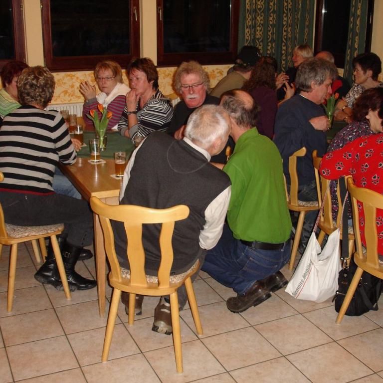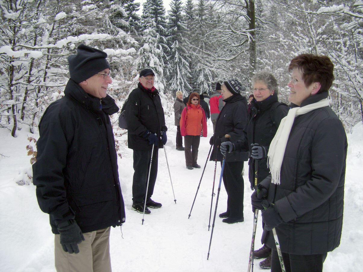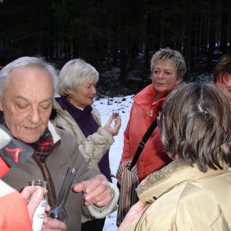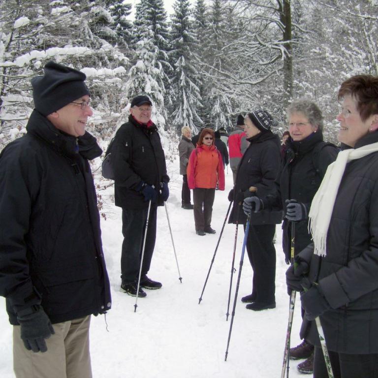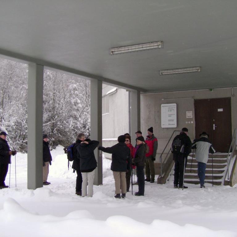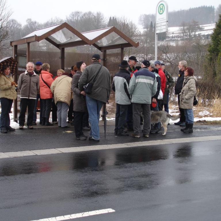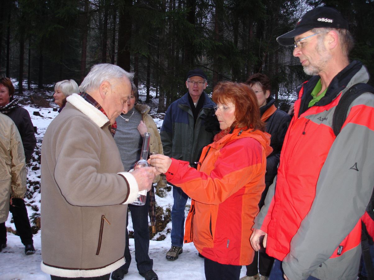Regina und Rainer Müller hatten sich etwas einfallen lassen mit ihrer Wanderung zur Ilsenbraurei nach Littfeld. 26 Wanderfreunde trafen sich zur Fahrt mit Bus und Bahn nach Eichen. Von dort aus machte man eine Wanderung am Fuße des Kindelsbergs nach Littfeld. Die Wanderwege waren durch die Eisglätte nicht leicht zu begehen. Das Ziel Ilsenbrauerei erreichte man nach anderthalb Stunden. Hier gab es naturtrübes Bier und Schinkenbrote satt.