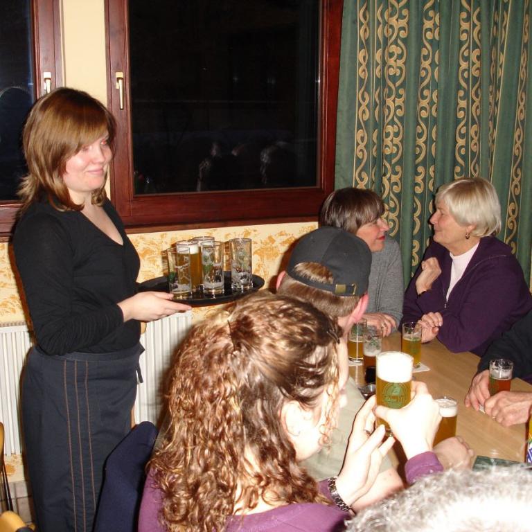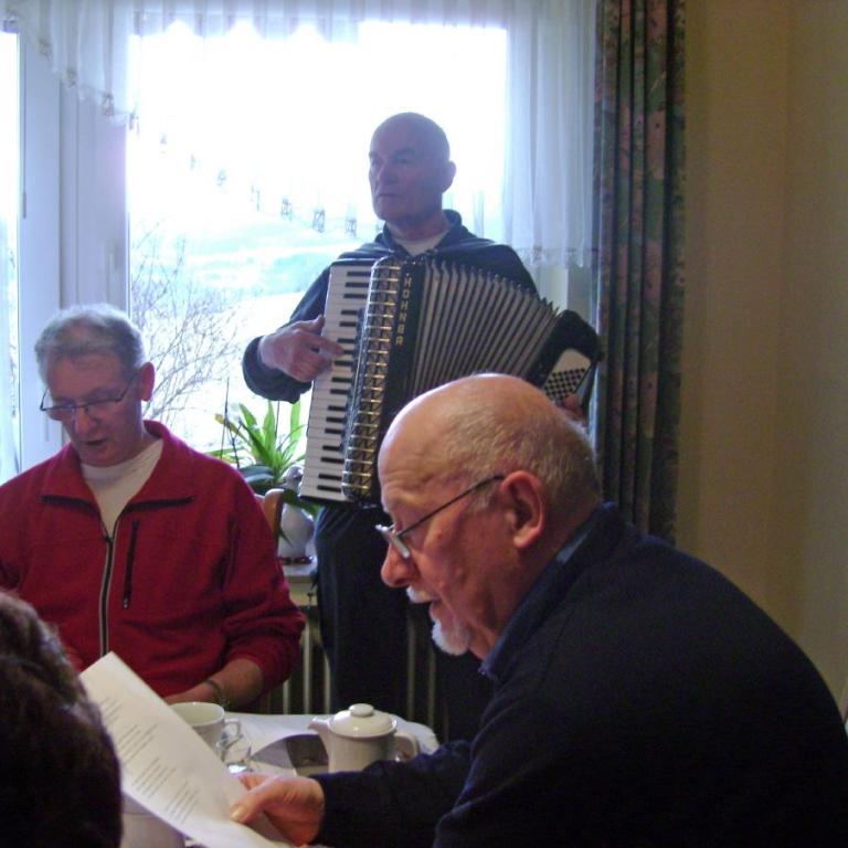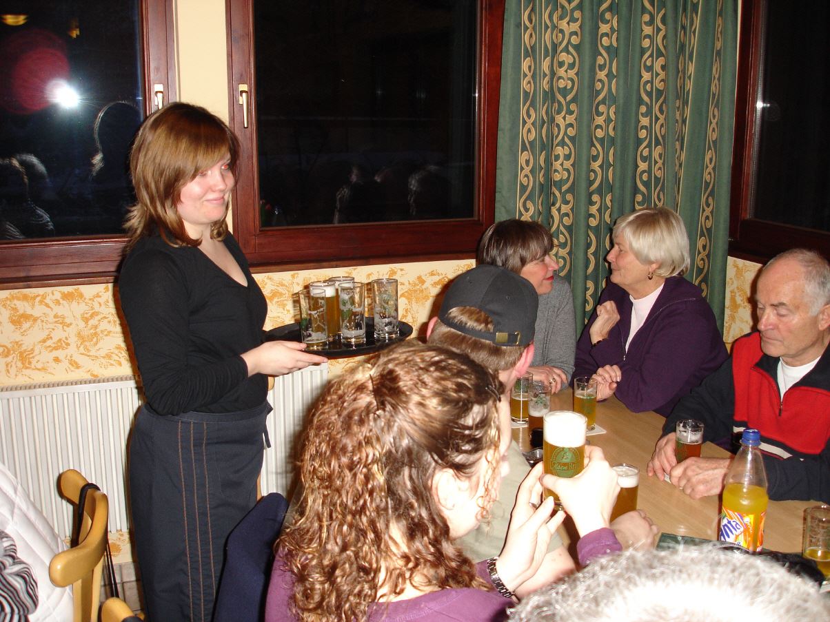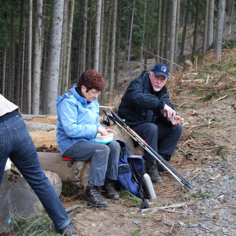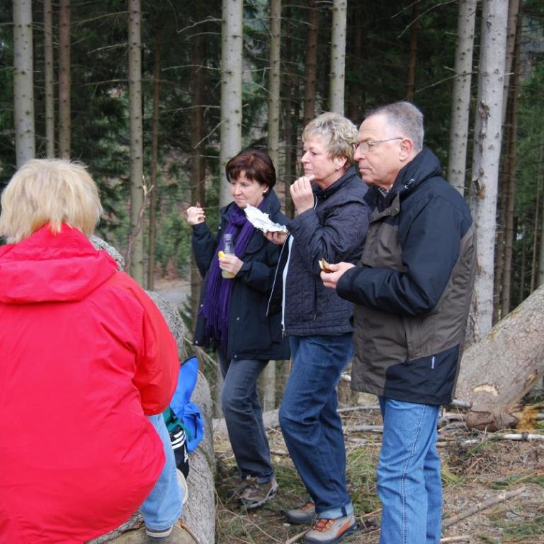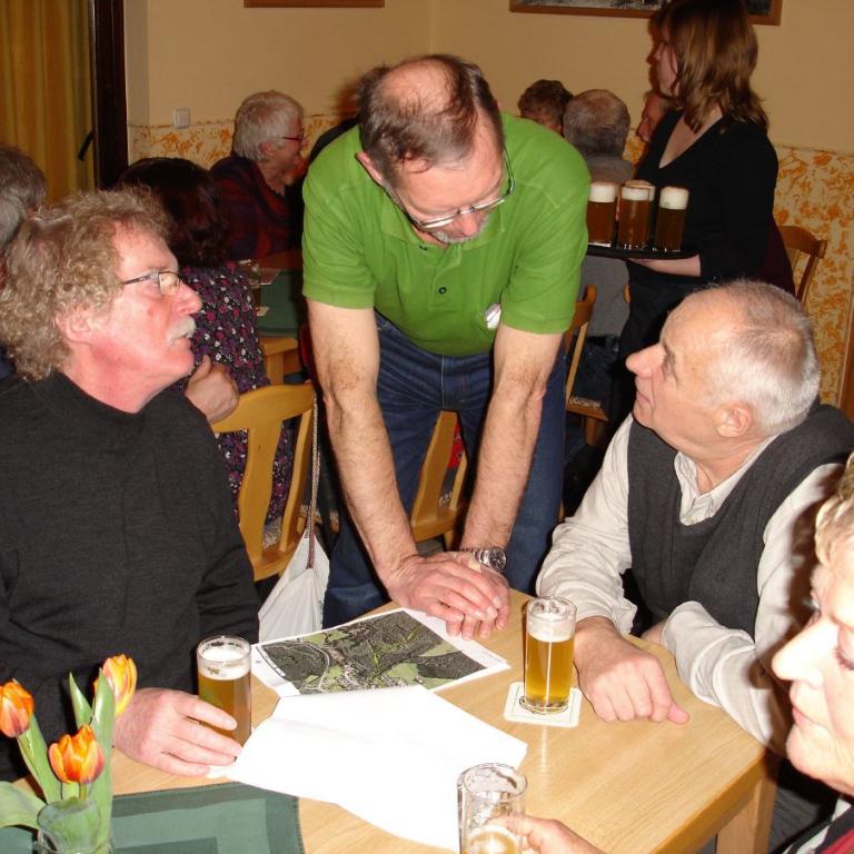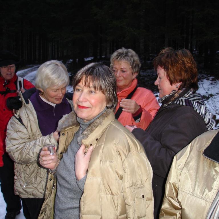 Regina und Rainer Müller hatten sich etwas einfallen lassen mit ihrer Wanderung zur Ilsenbraurei nach Littfeld. 26 Wanderfreunde trafen sich zur Fahrt mit Bus und Bahn nach Eichen. Von dort aus machte man eine Wanderung am Fuße des Kindelsbergs nach Littfeld. Die Wanderwege waren durch die Eisglätte nicht leicht zu begehen. Das Ziel Ilsenbrauerei erreichte man nach anderthalb Stunden. Hier gab es naturtrübes Bier und Schinkenbrote satt.