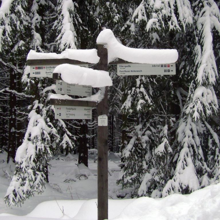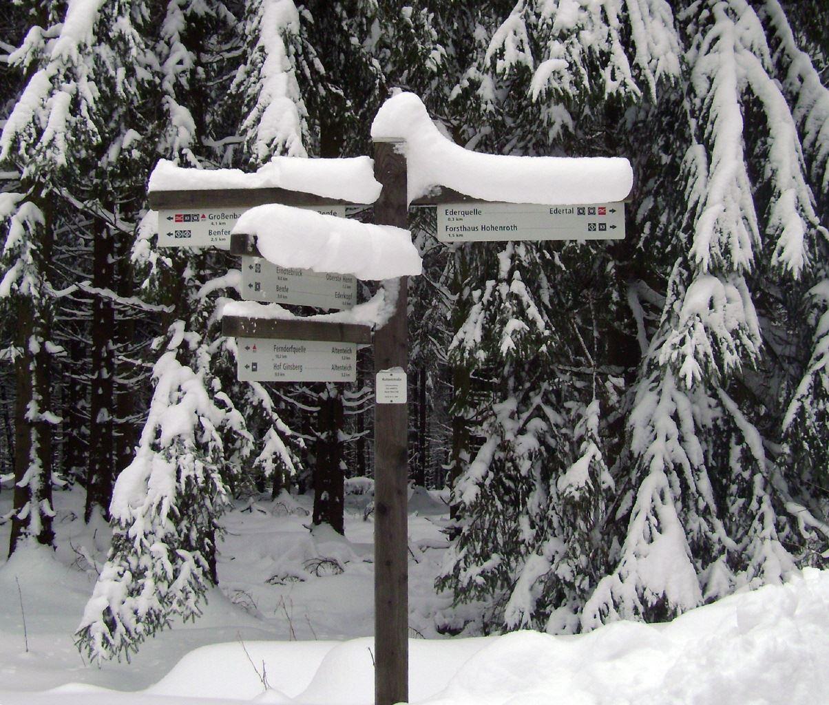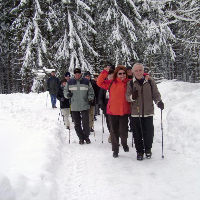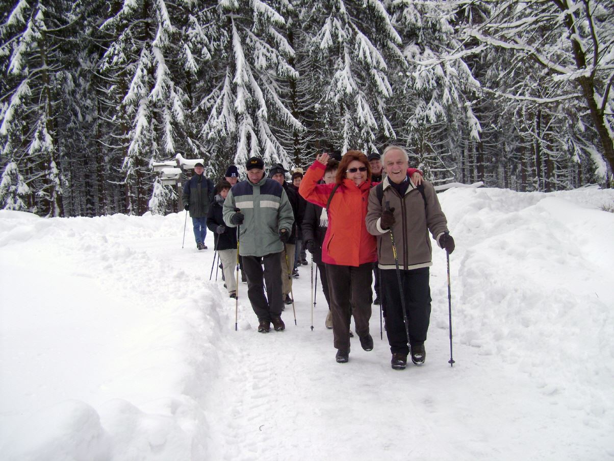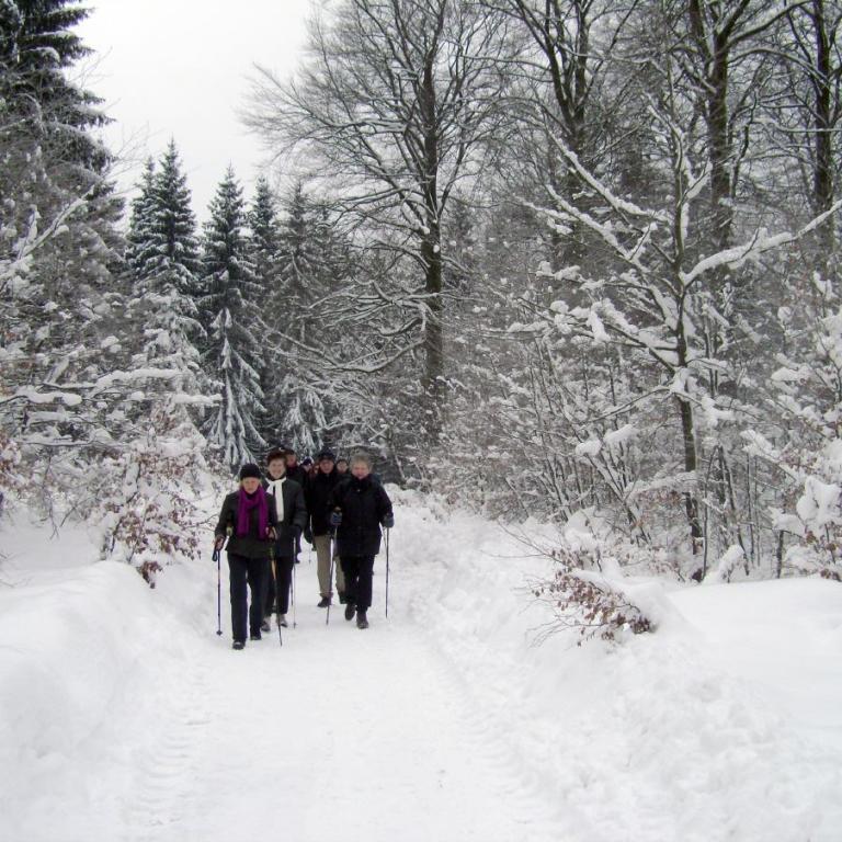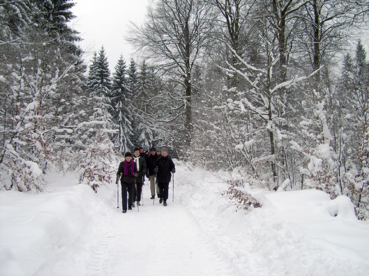 Eine Gruppe von 19 Wanderern traf sich um 10:30 Uhr am Parkplatz Hohenroth bei kaltem Winterwetter und hohem Schnee. Zunächst ging es zum Fernsehturm " auf der oberste Henn" und von dort an der Ederquelle vorbei. Ein Stück des Weges folgten wir dem Tal der jungen Eder, um dann durch die verschneiten Wälder an "Krämers Wiese" vorbei in einem Bogen zum Forsthaus Hohenroth zu gelangen. Die ursprünglich vorgesehene Strecke konnte nicht vollständig gewandert werden, da der hohe Schnee das Laufen zu beschwerlich machte. Um 12:30 Uhr haben wir dann mit 24 Personen in gemütlicher Runde das vorbestellte Mittagessen im Gasthaus Hohenroth zu uns genommen.