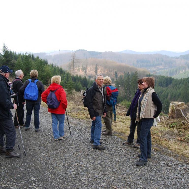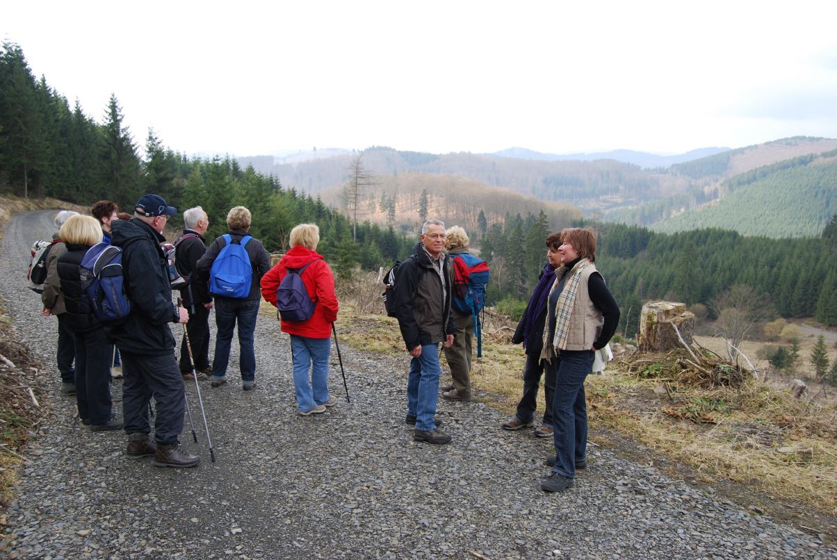 Unter der Führung von Rita Richter fuhr eine Gruppe von 21 Wanderern nach Erndtebrück zum Bauerhof-Cafe Afflerbach. Von dort aus startete die Wanderung in Richtung Sportflughafen Schameder.