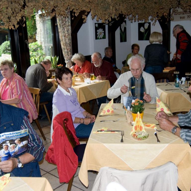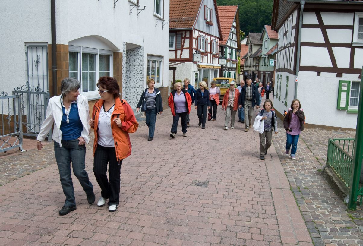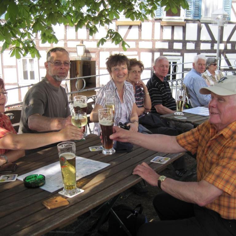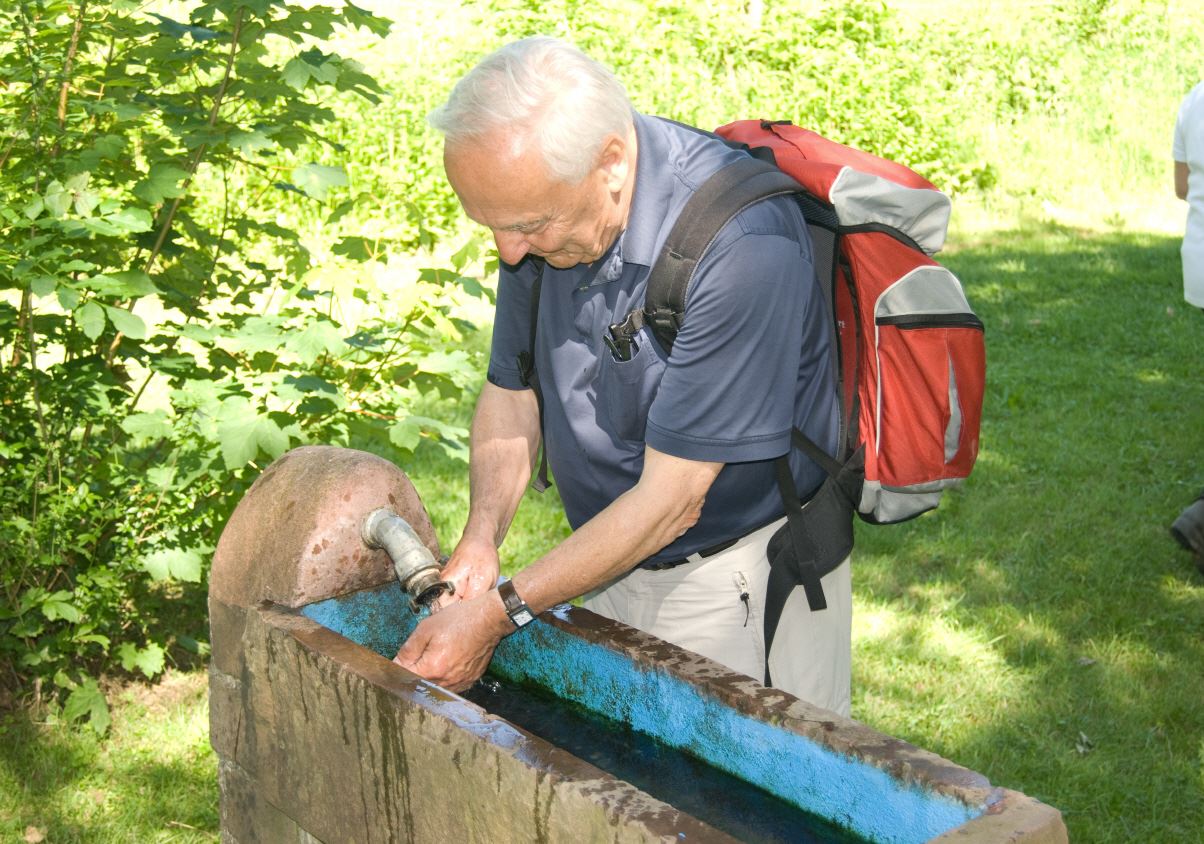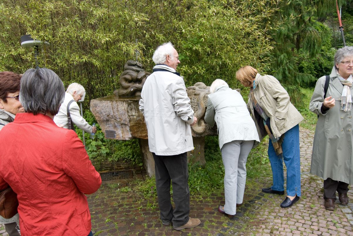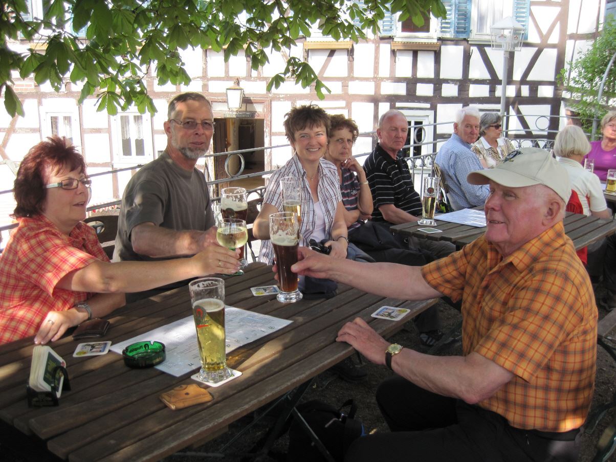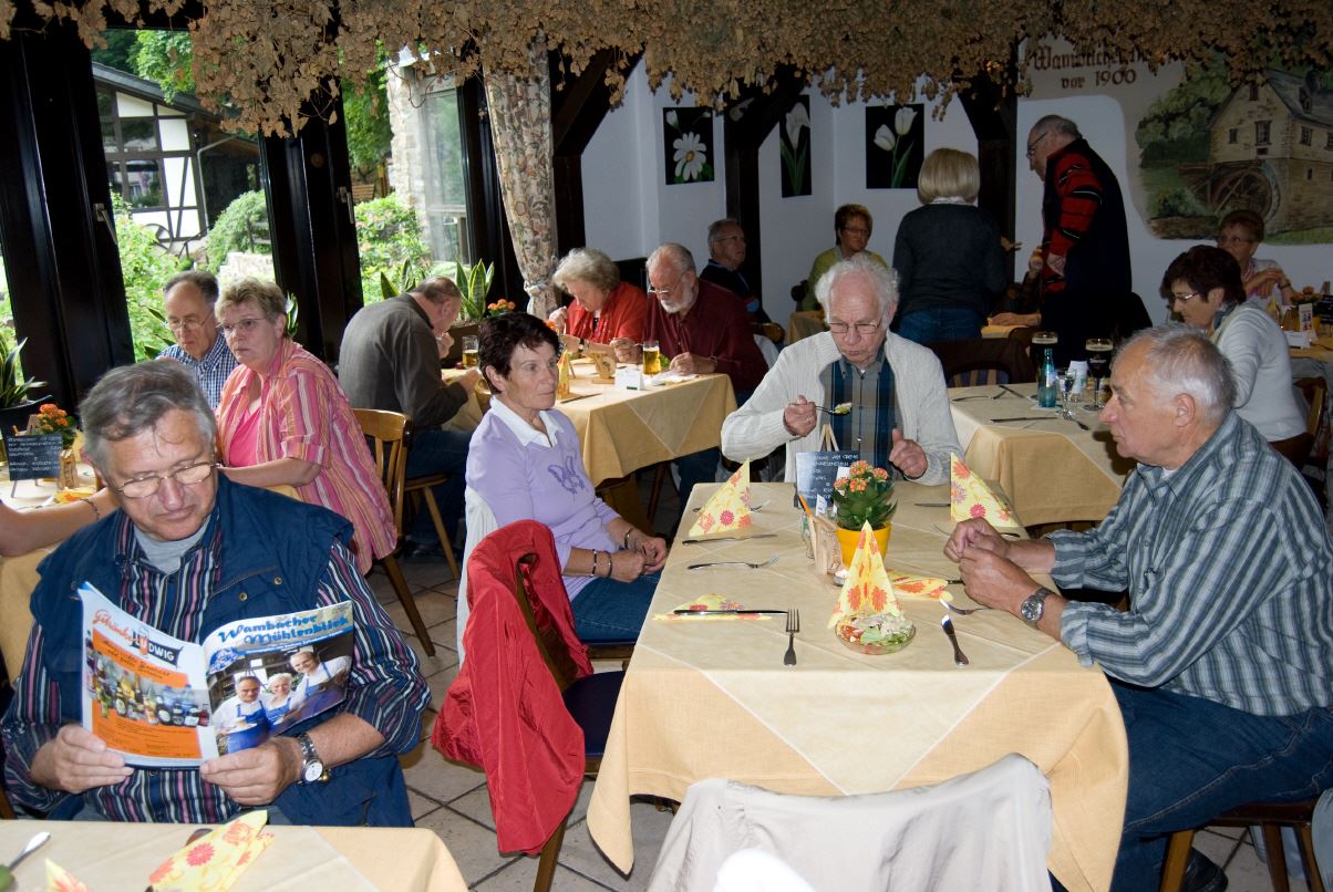 Heinrich Menn ging die Fahrt zur Wambacher Mühle bei Schlangenbad im Taunus. Hier wurde zuerst eine kleine Wanderung mit Stadtführung ins Heilbad Schlangenbad unternommen, wo man sich am Heilquellwasser labte. Der Heilerfolg stellte sich sofort ein und man eilte munteren Schrittes zurück zur Wambacher Mühle wo man das Mittagsessen einnahm. Ein Besuch im Mühlenmuseum informierte die Wanderfreunde über alte Mühlen- Haus- und Handwerkstechniken.