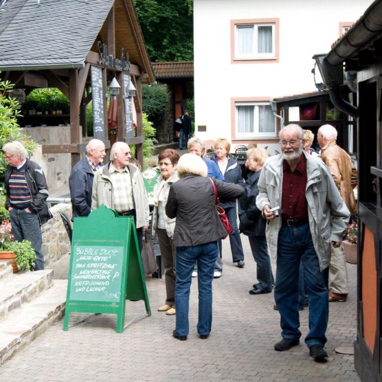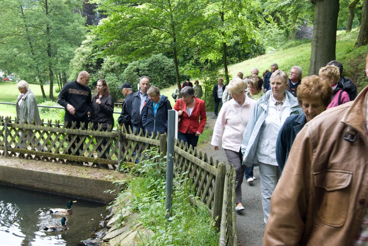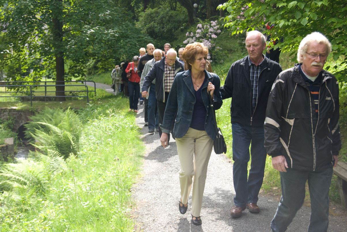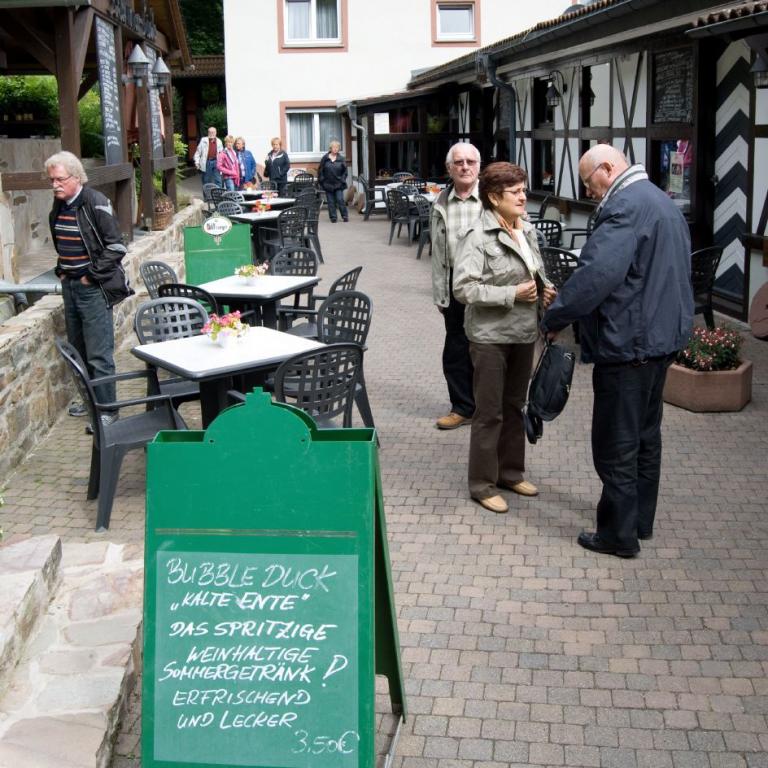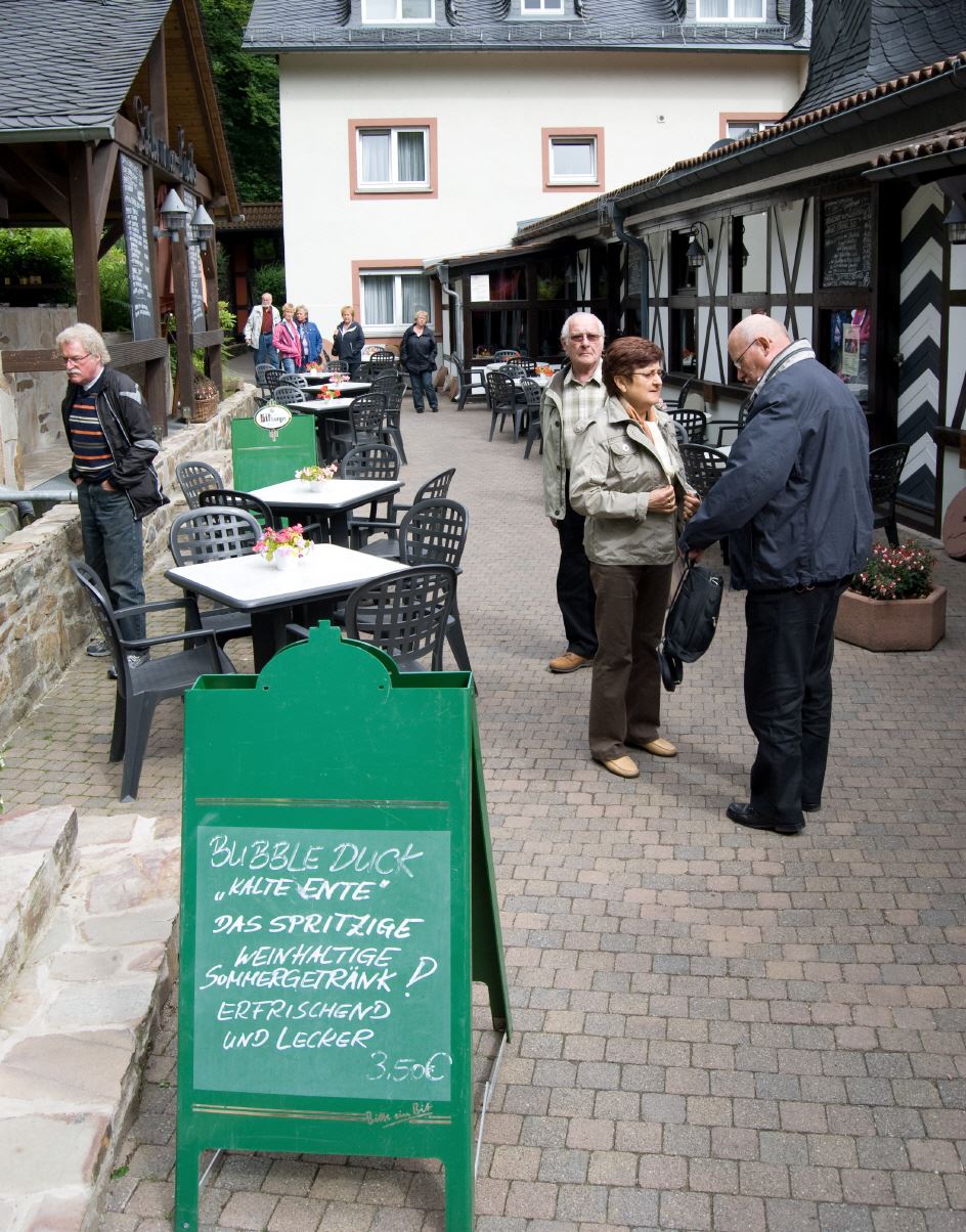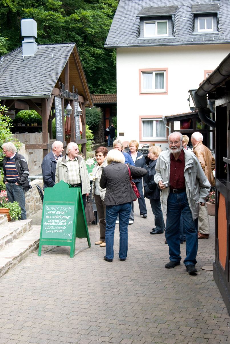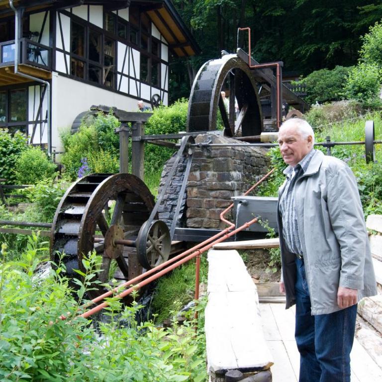 Heinrich Menn ging die Fahrt zur Wambacher Mühle bei Schlangenbad im Taunus. Hier wurde zuerst eine kleine Wanderung mit Stadtführung ins Heilbad Schlangenbad unternommen, wo man sich am Heilquellwasser labte. Der Heilerfolg stellte sich sofort ein und man eilte munteren Schrittes zurück zur Wambacher Mühle wo man das Mittagsessen einnahm. Ein Besuch im Mühlenmuseum informierte die Wanderfreunde über alte Mühlen- Haus- und Handwerkstechniken.
