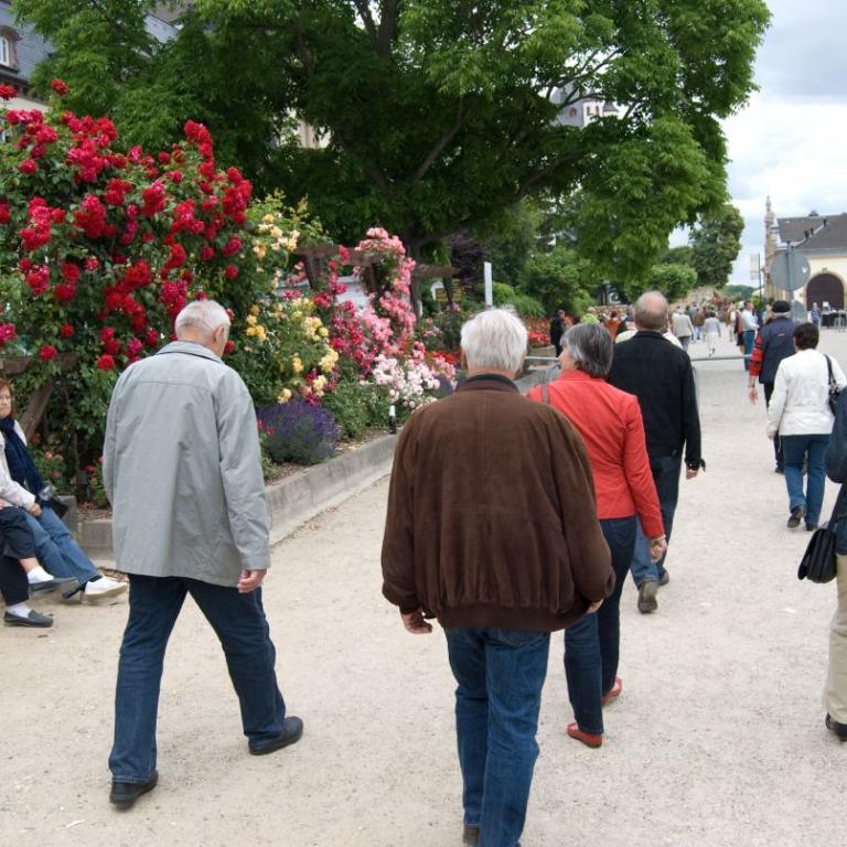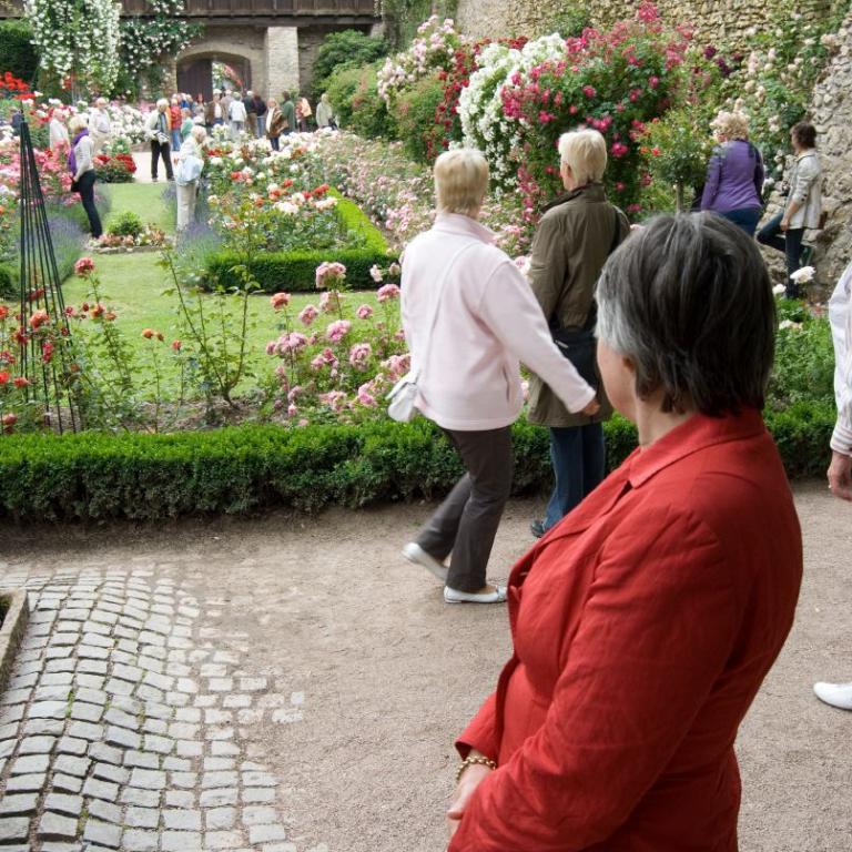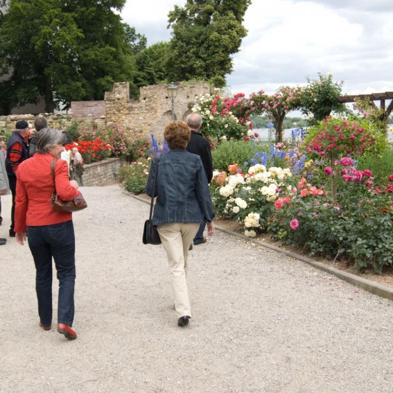 Am frühen Nachmittag ging die Fahrt weiter in die Rosenstadt Eltville am Rhein. Die prächtigen Rosenrabatten in den Kurfürstlichen Gärten erfreuten Augen und Herzen der Betrachter.