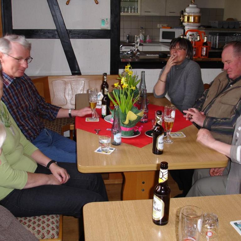 Eine große Gruppe von mehr als 30 Personen konnten wir als unsere Gäste begrüßen. Es wurden viele Anregungen über Wanderungen und die Vereinsarbeit ausgetauscht. Auch andere Themen, die für Nachbargemeinden interessant sind, wurden diskutiert. Für beide Abteilungen war es ein anregender aber auch fröhlicher Abend. Da unsere Wanderfreunde den Rückweg wieder zu Fuß antreten mussten, ging der Abend zwar spät, aber bei der guten Stimmung dennoch zu früh zu Ende.