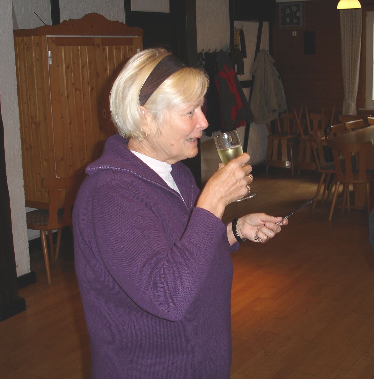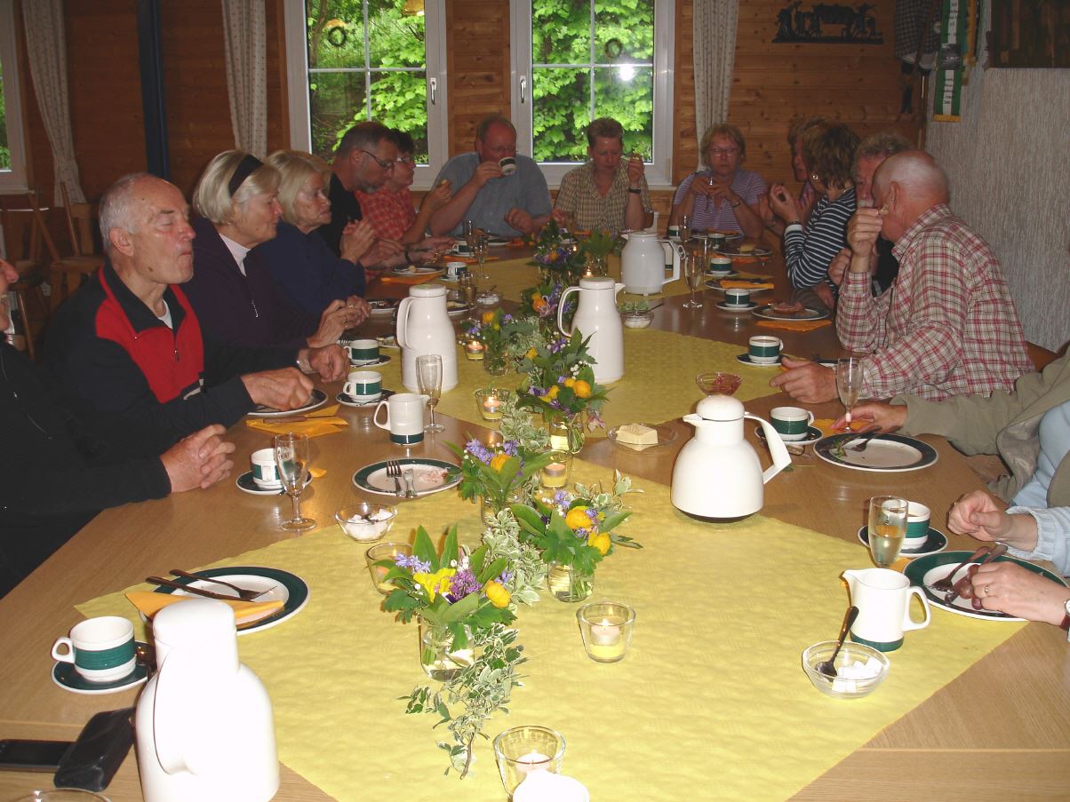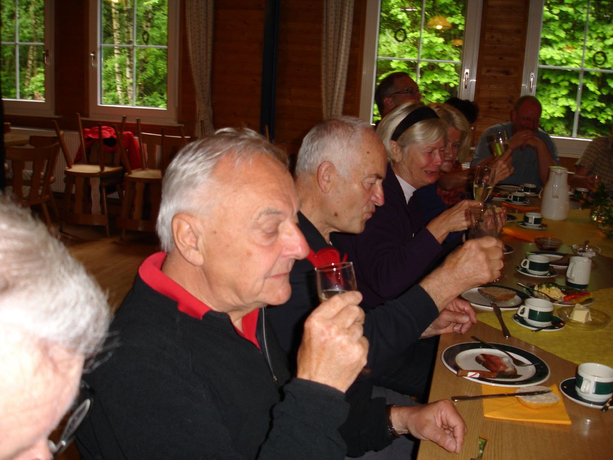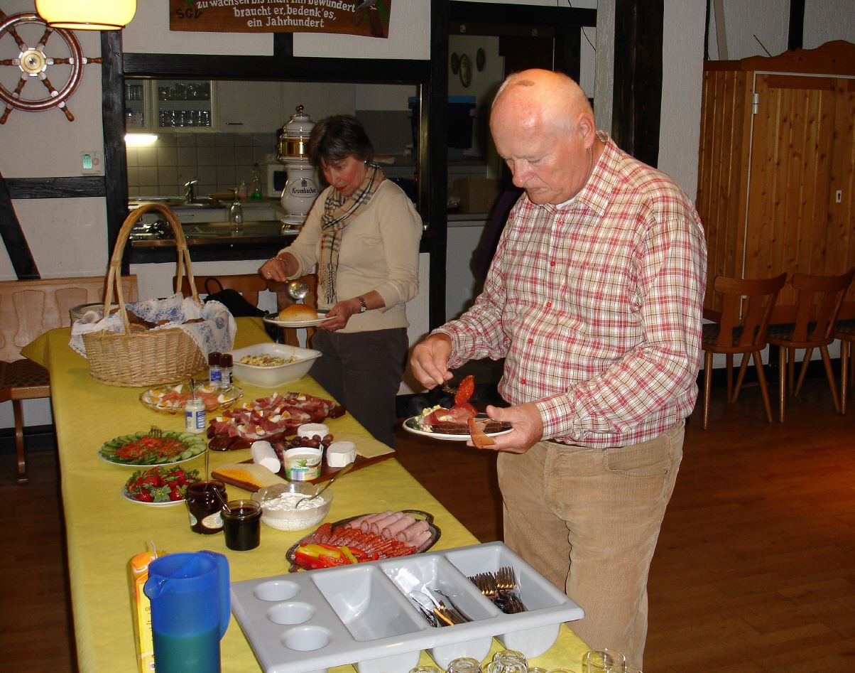 Wanderung endete im SGV Wanderheim. Hier hatte Karin Kölsch sich wieder einmal sehr viel Mühe mit einem opulenten Frühstück gemacht. Ein Gläschen Sekt rundete das Mahl ab. Karl-Heinz erfreute die Wanderer mit Melodien auf dem Schifferklavier.