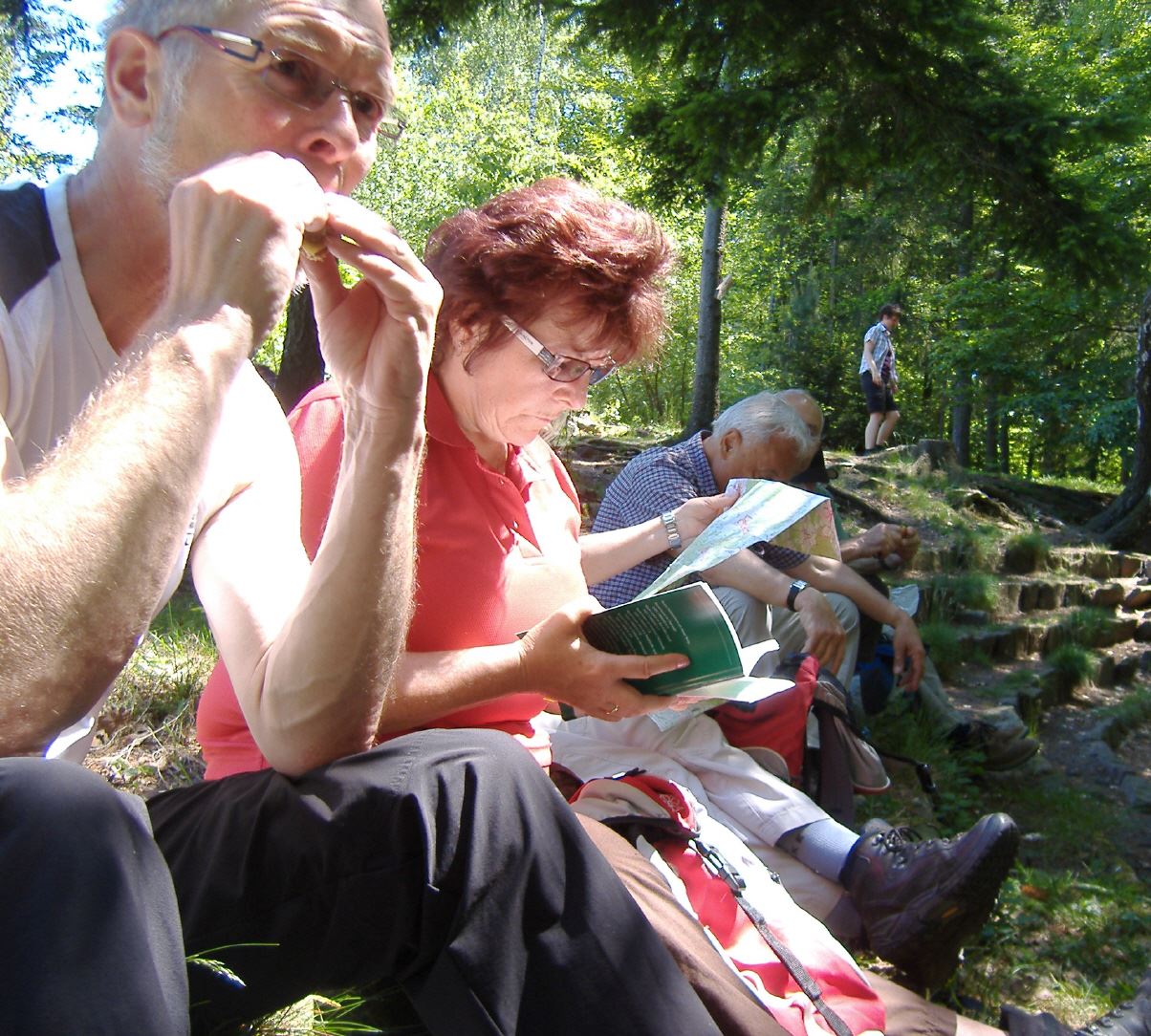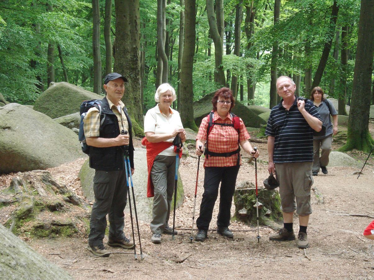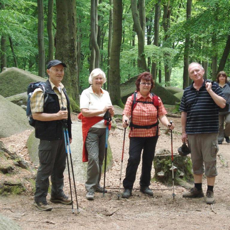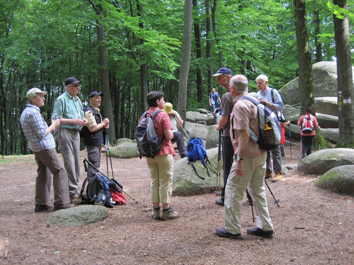 Donnerstags nahm man die erste Etappe des Nibelungensteigs von Zwingenberg nach Reichenbach in Angriff. Die Wanderstecke erwies sich als anspruchsvoll, man hatte einige kräftige Anstiege zu bewältigen. es ging zuerst zum Melibokus (517m). Von hier aus hatte man einen herrlichen Ausblick ins Rheintal. Weiter ging es in Richtung Reichenbach durch das sagenumwobene Felsenmeer. Am späten Nachmittag kehrte man nach Lindefels zurück.
