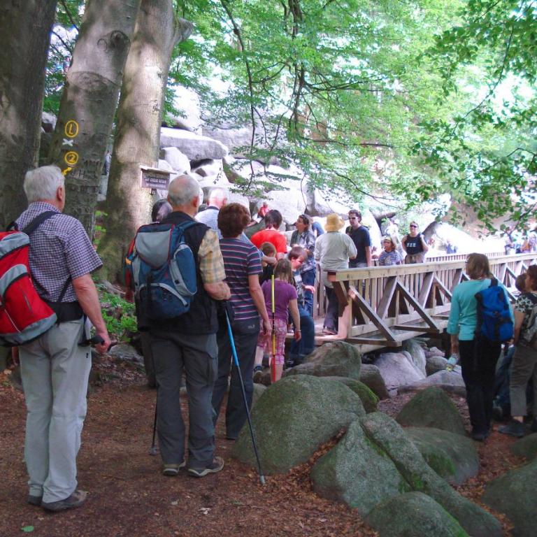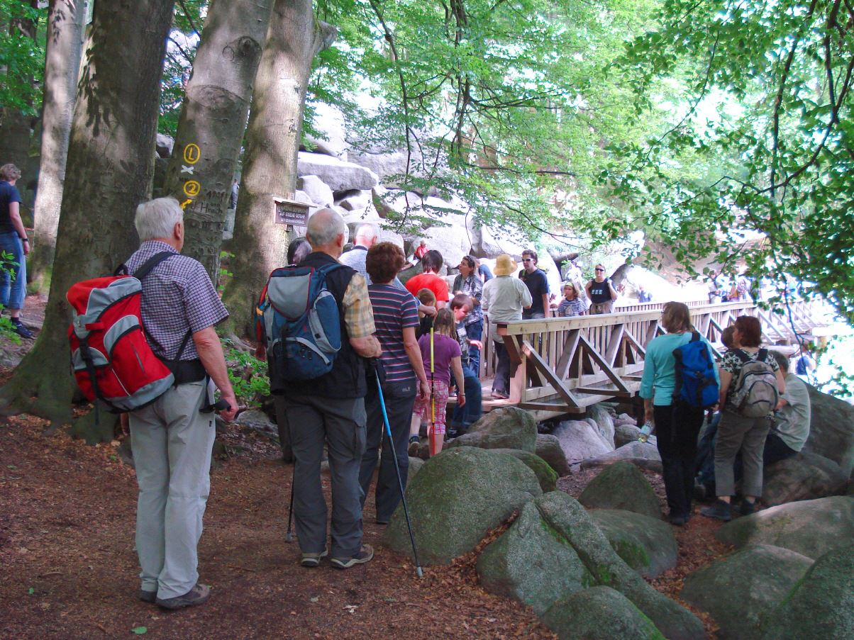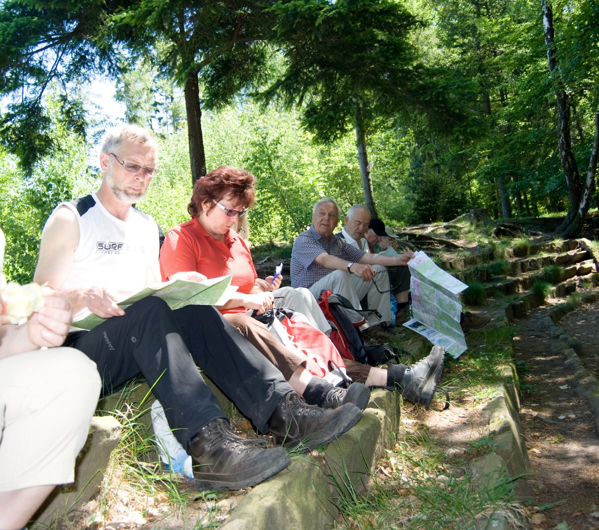 Donnerstags nahm man die erste Etappe des Nibelungensteigs von Zwingenberg nach Reichenbach in Angriff. Die Wanderstecke erwies sich als anspruchsvoll, man hatte einige kräftige Anstiege zu bewältigen. es ging zuerst zum Melibokus (517m). Von hier aus hatte man einen herrlichen Ausblick ins Rheintal. Weiter ging es in Richtung Reichenbach durch das sagenumwobene Felsenmeer. Am späten Nachmittag kehrte man nach Lindefels zurück.