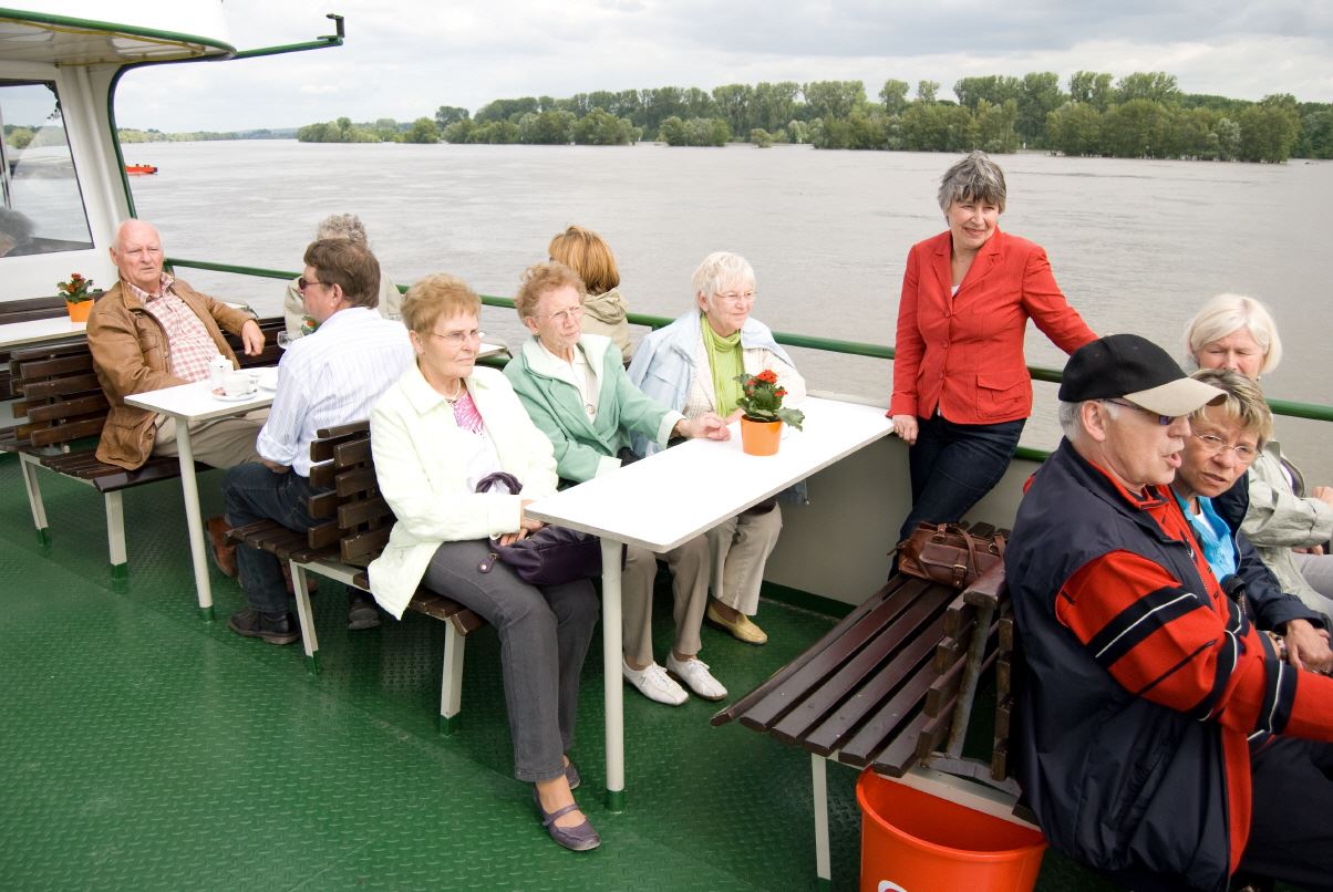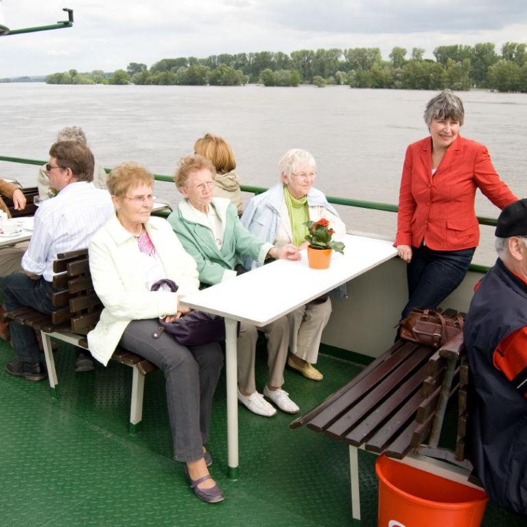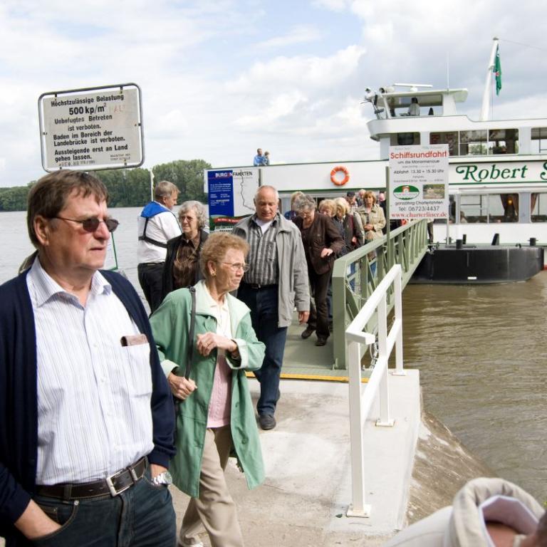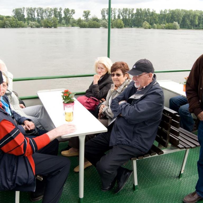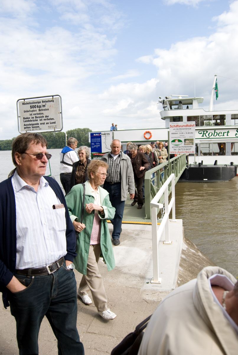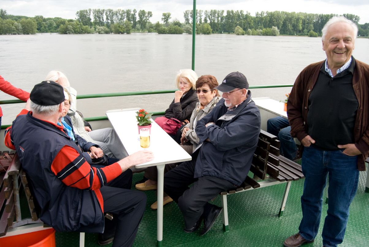 Gegen vier Uhr fand man sich an der Schiffsanlegestelle zu einer Rheinfahrt zur Mariannenaue, der größten Insel im Rhein. Am späten Nachmittag macht man noch einen Rundgang durch die Rosenstadt.