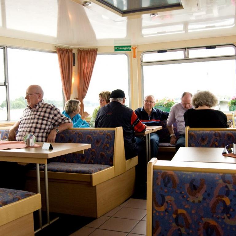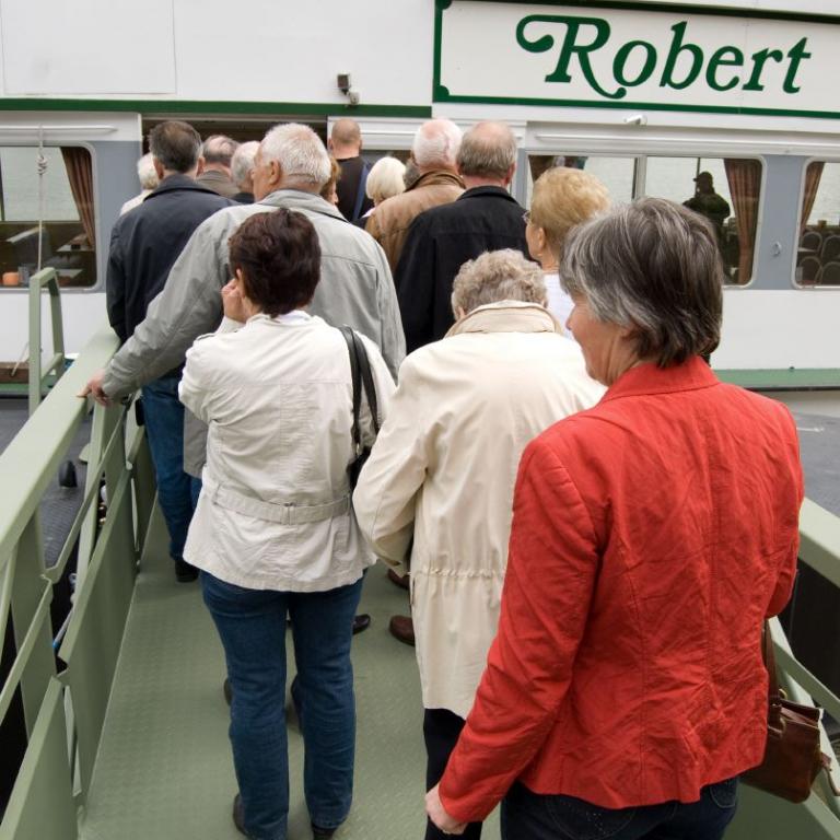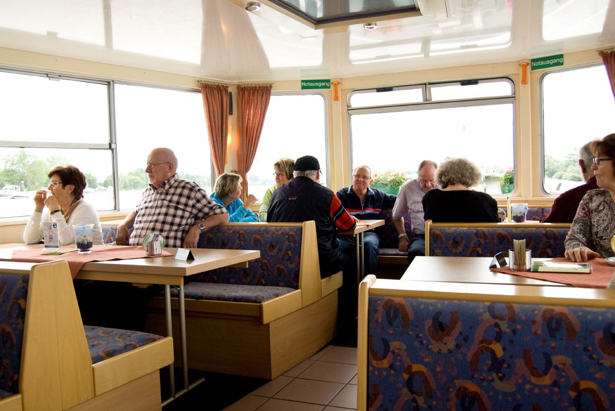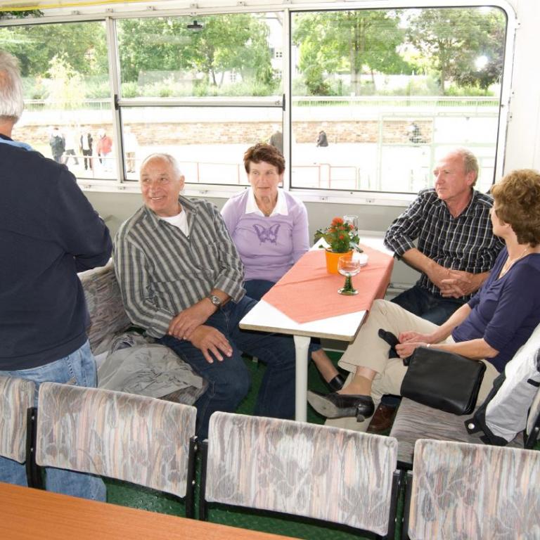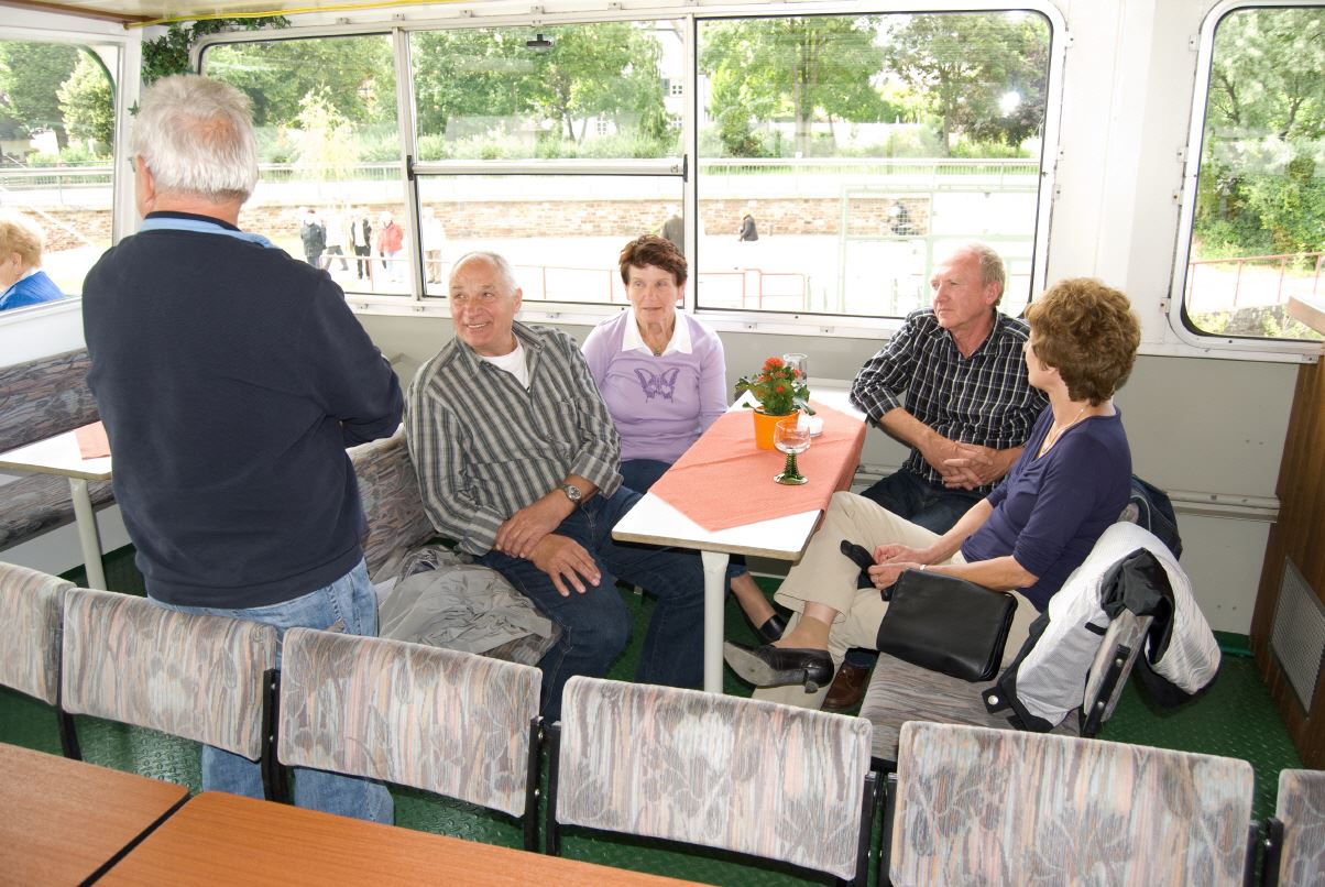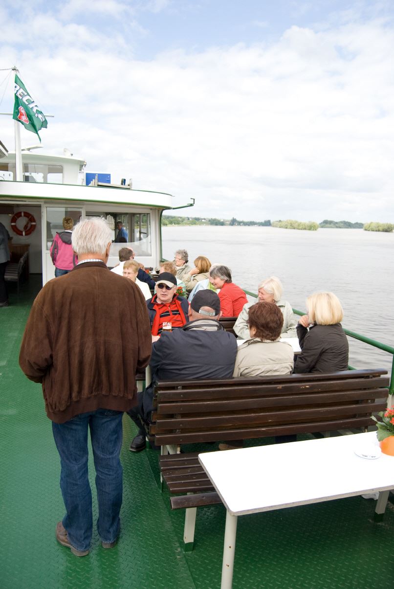 Gegen vier Uhr fand man sich an der Schiffsanlegestelle zu einer Rheinfahrt zur Mariannenaue, der größten Insel im Rhein. Am späten Nachmittag macht man noch einen Rundgang durch die Rosenstadt.