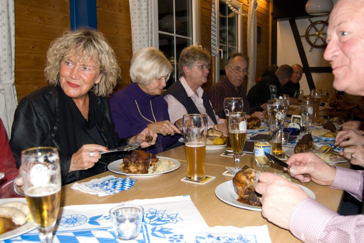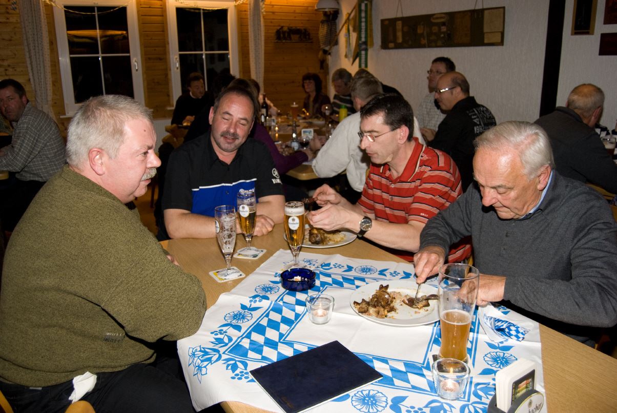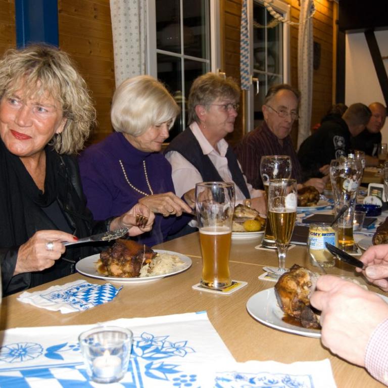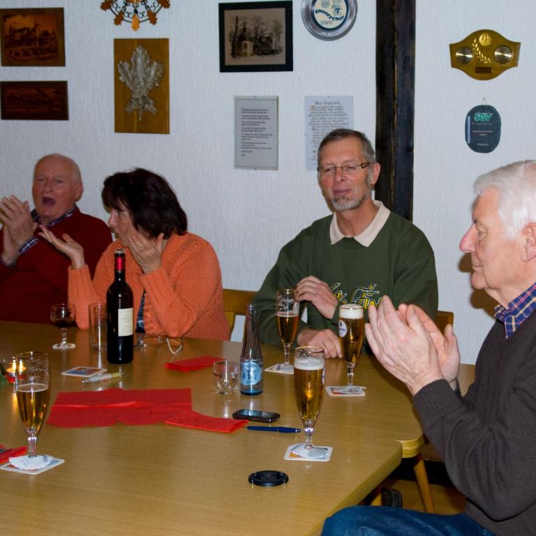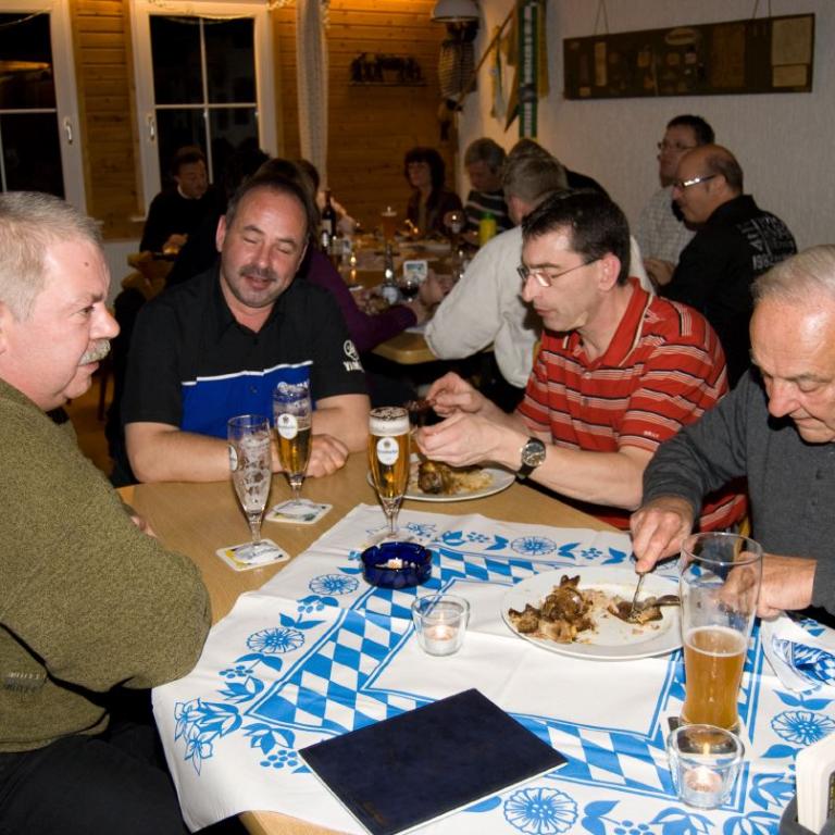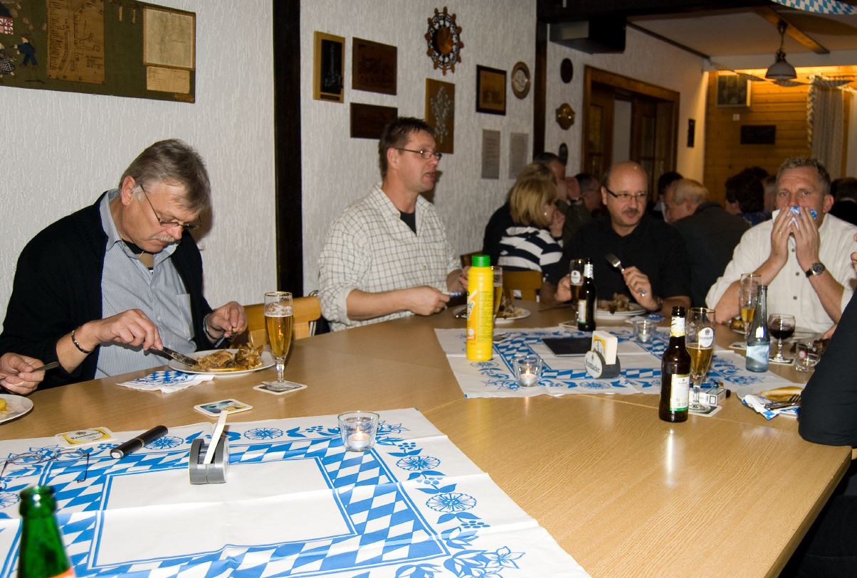 Das rührige Serviceteam hatte wieder mal keine Mühen gescheut und für das leibliche Wohl der Gäste gesorgt. Es gab leckere Schweinshaxen mit deftigem Sauerkraut und Knödel. Bis in die Nacht hinein fand man sich in fröhlicher Runde im SGV-Wanderheim.
