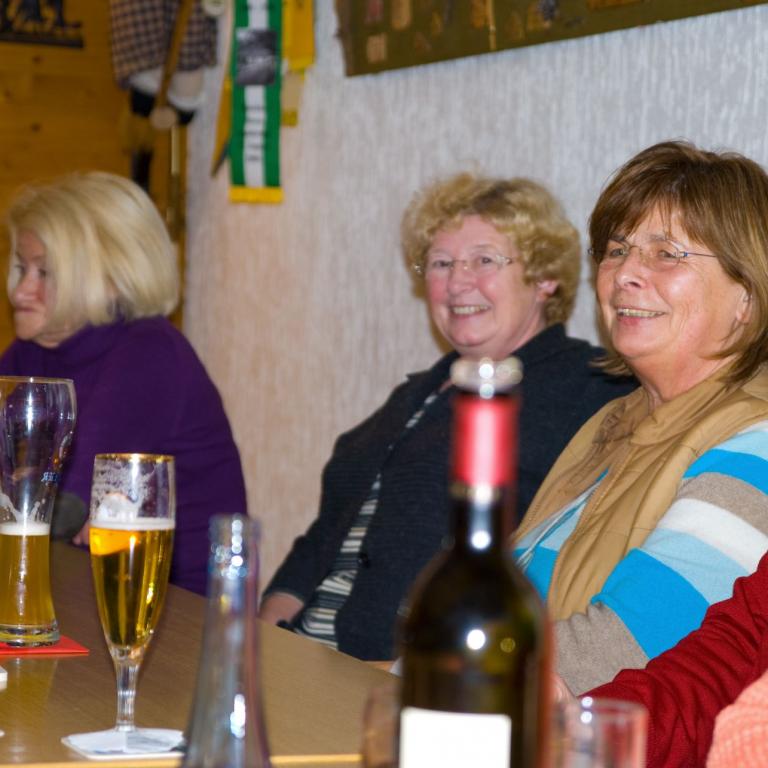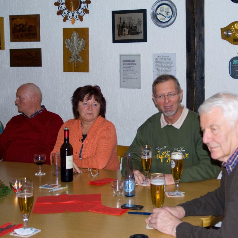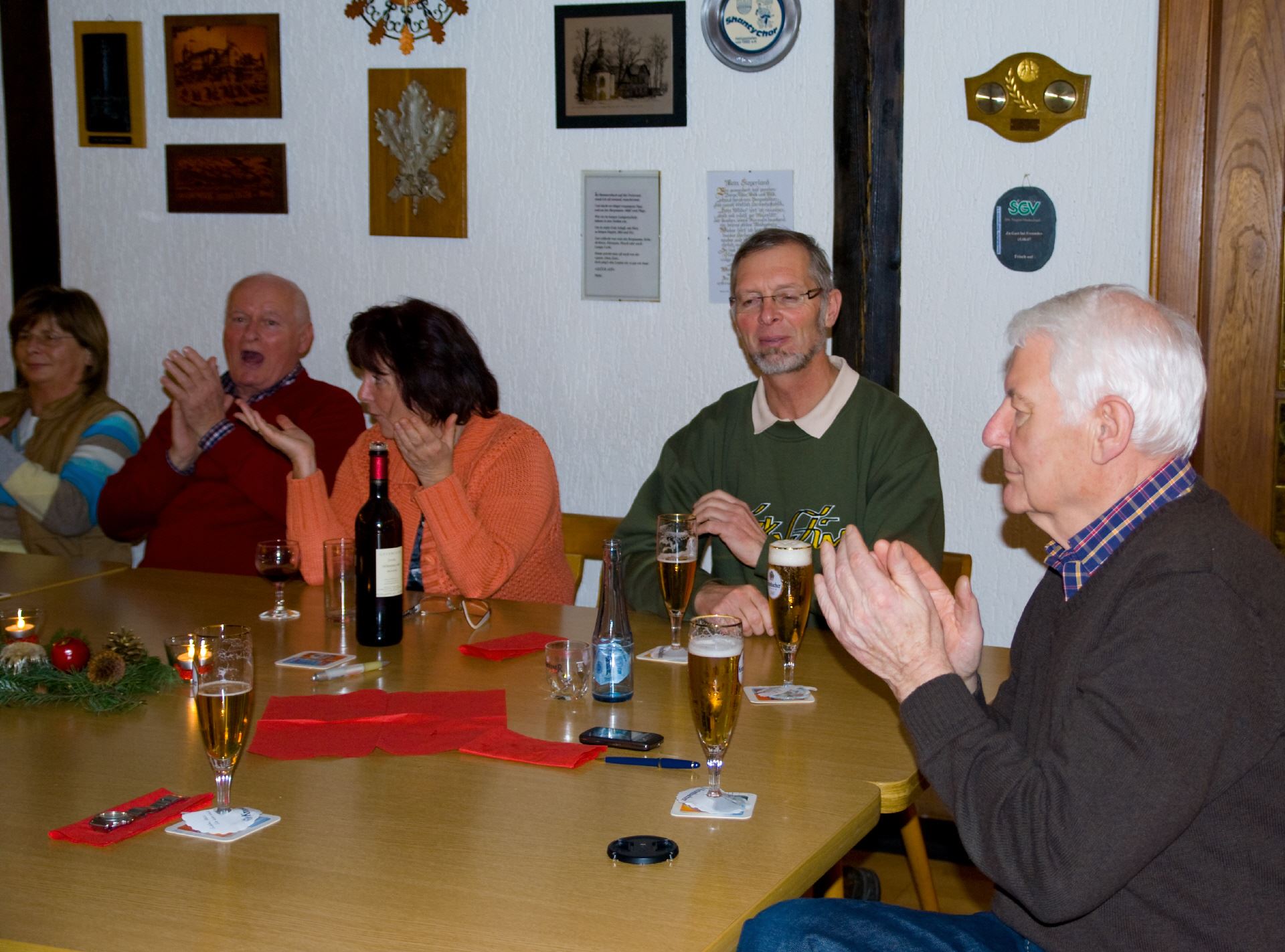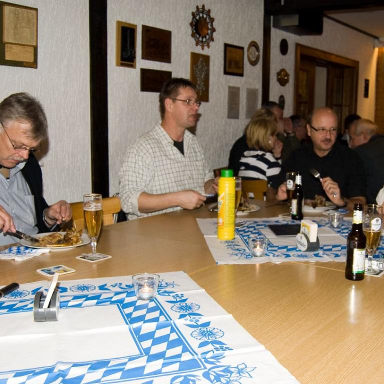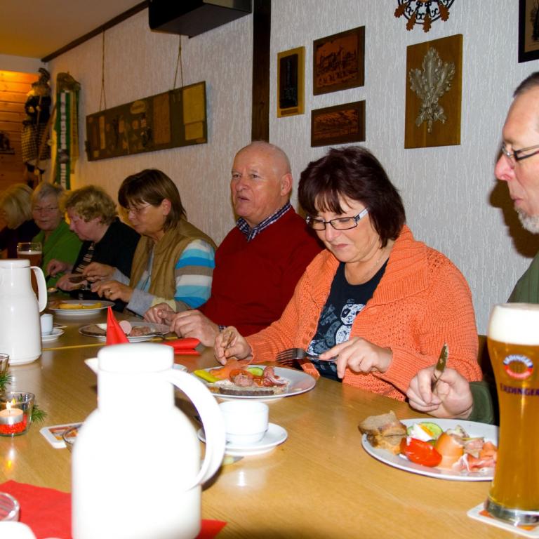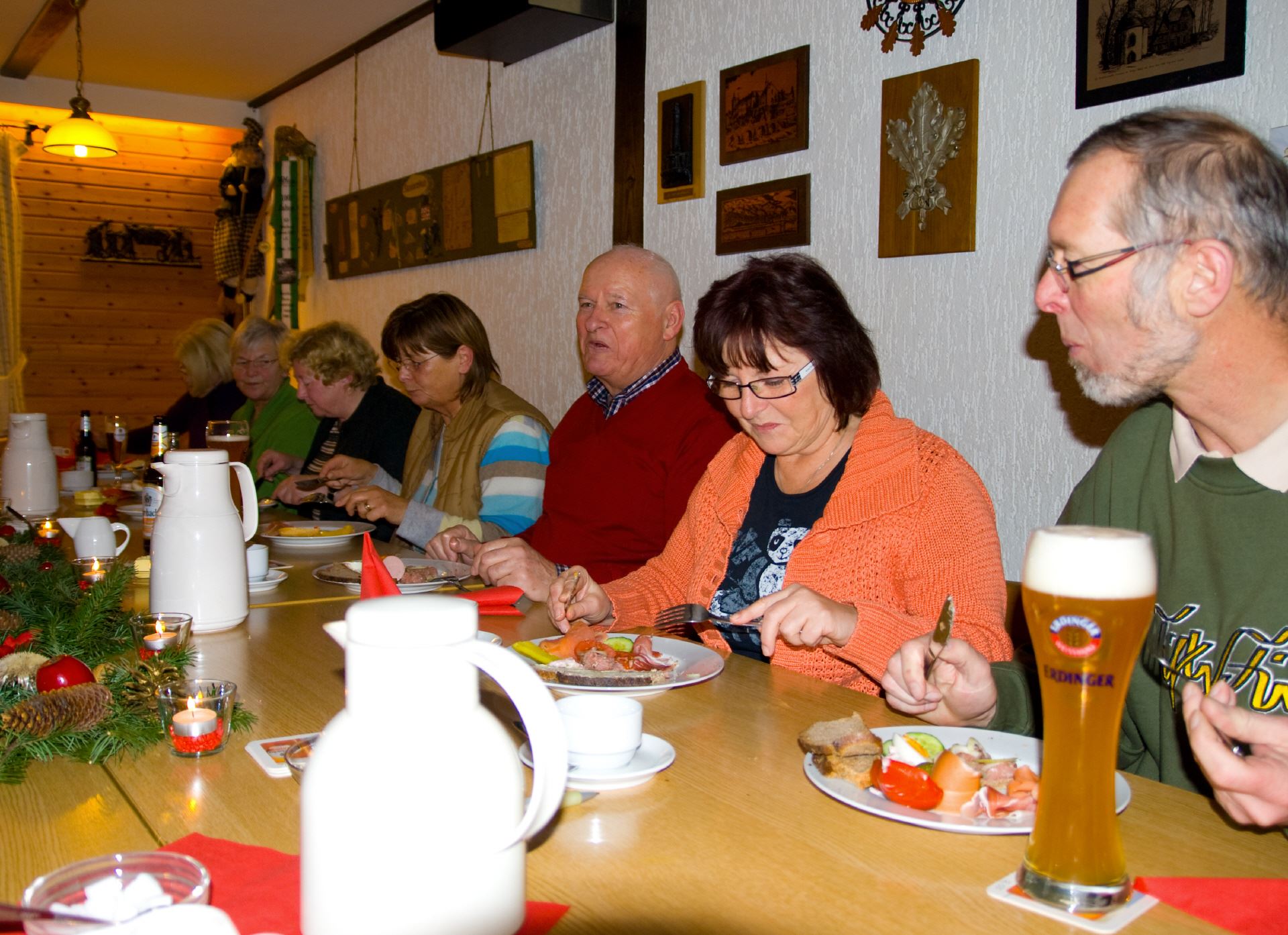 Das rührige Serviceteam hatte wieder mal keine Mühen gescheut und für das leibliche Wohl der Gäste gesorgt. Es gab leckere Schweinshaxen mit deftigem Sauerkraut und Knödel. Bis in die Nacht hinein fand man sich in fröhlicher Runde im SGV-Wanderheim.
