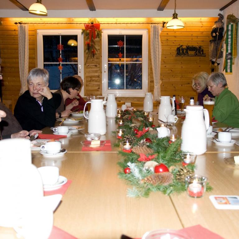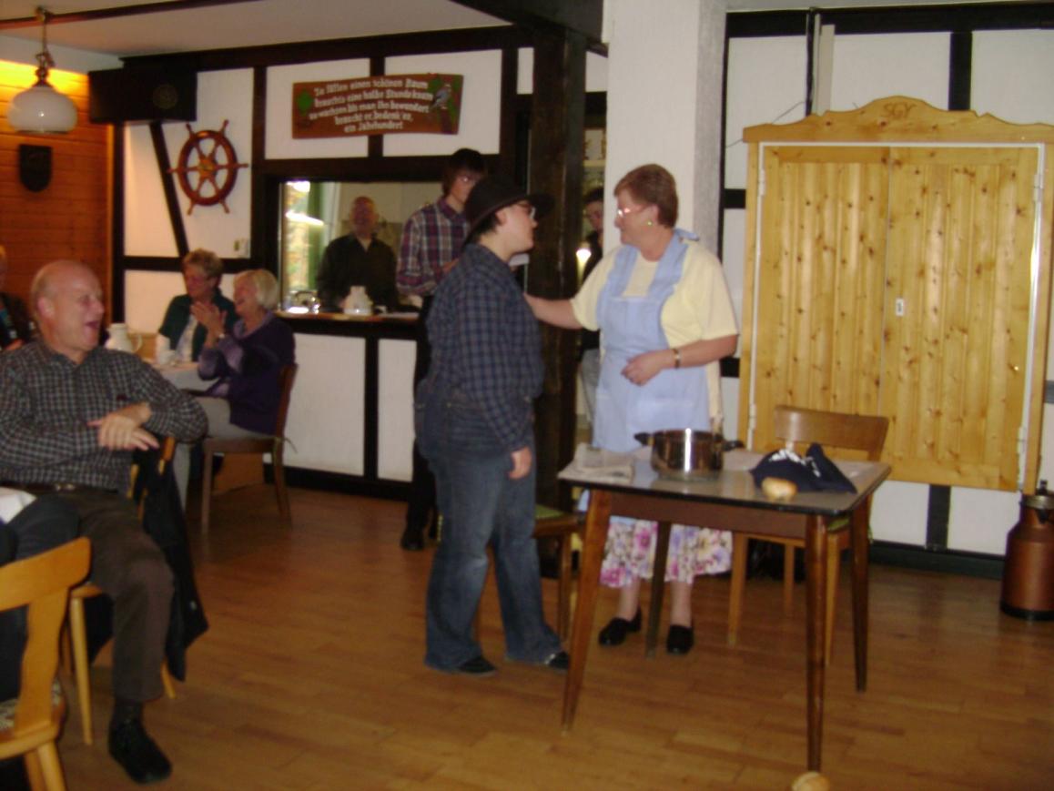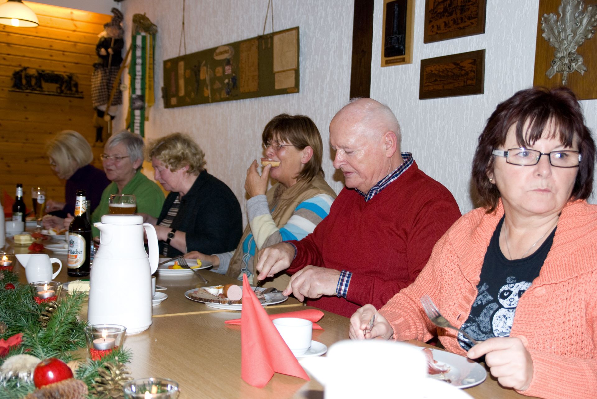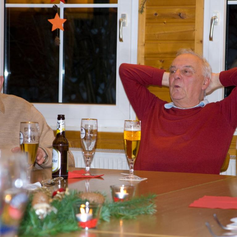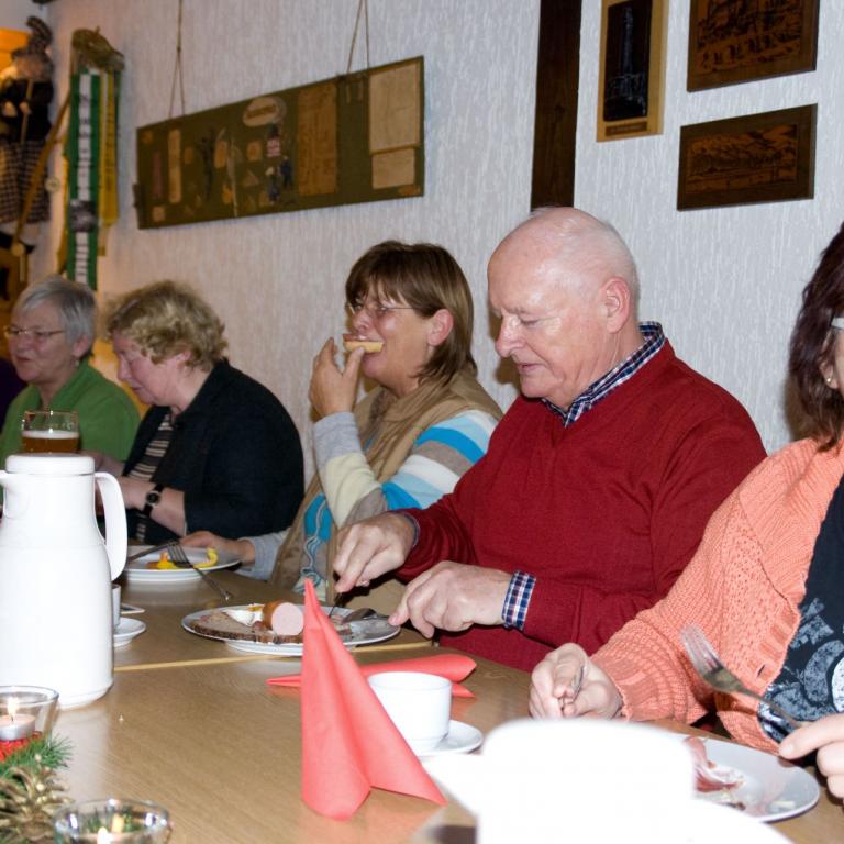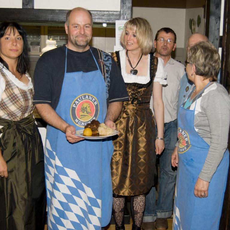 Das rührige Serviceteam hatte wieder mal keine Mühen gescheut und für das leibliche Wohl der Gäste gesorgt. Es gab leckere Schweinshaxen mit deftigem Sauerkraut und Knödel. Bis in die Nacht hinein fand man sich in fröhlicher Runde im SGV-Wanderheim.