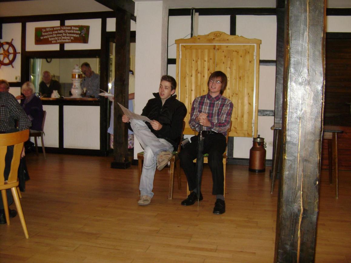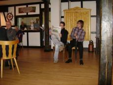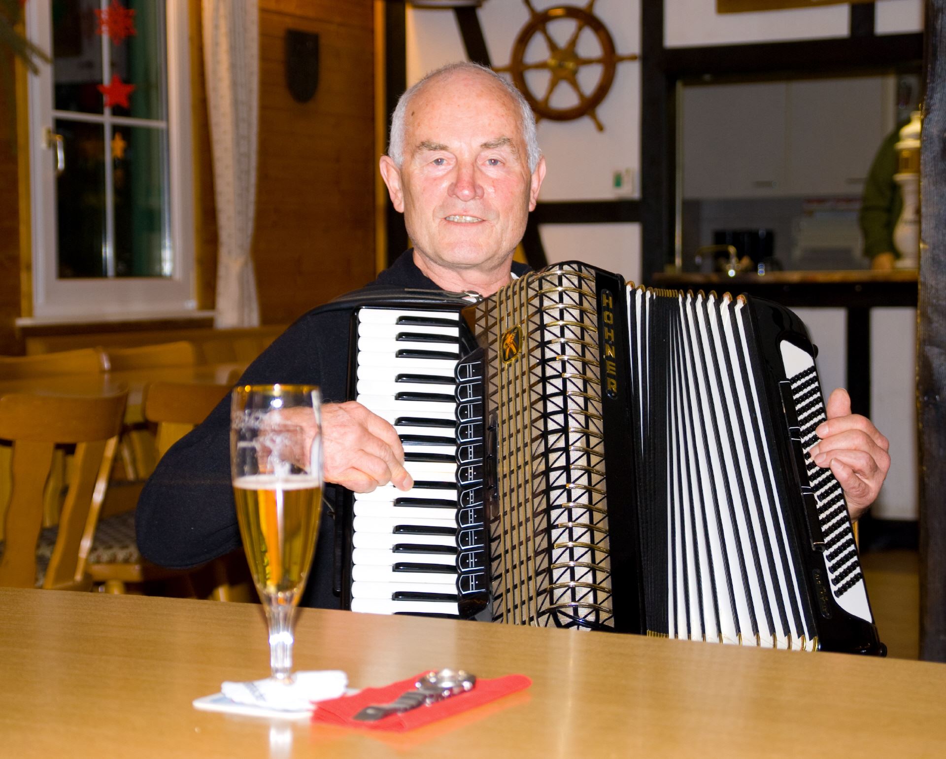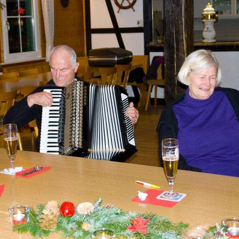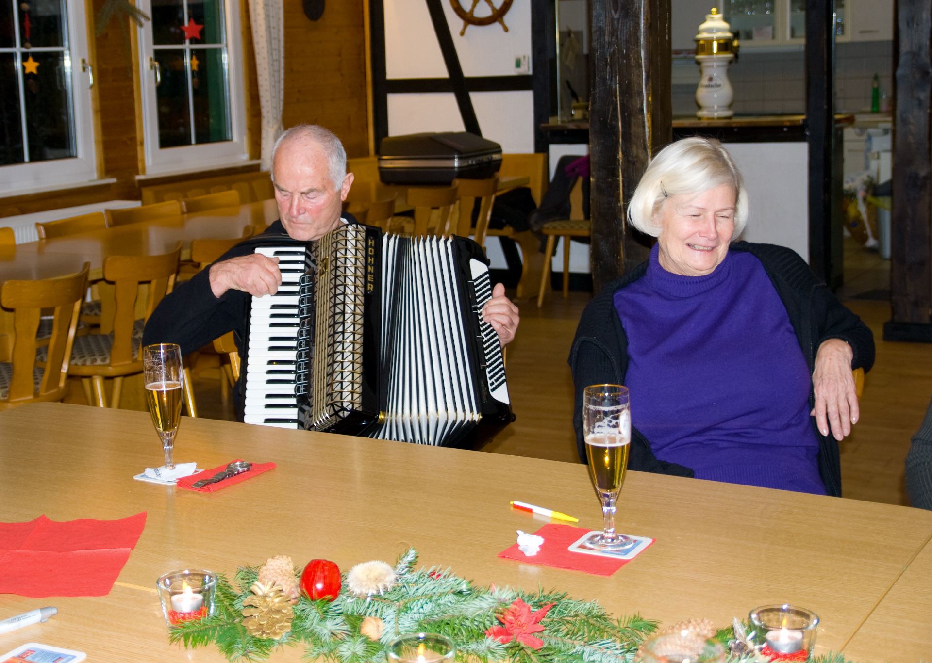 Die Theatergruppe des Heimatvereins Anzhausen führte 2 mundartliche Sketche vor, die den Anwesenden viel Freude bereitete. Hanna Honig,die seit vielen, vielen Jahren mit ihrem Schifferklavier die Seniorenfeier musikalisch begleitet, spielte auch in diesem Jahr mit Karl-Heinz Kölsch viele bekannte Volkslieder, die von Allen mitgesungen wurden.