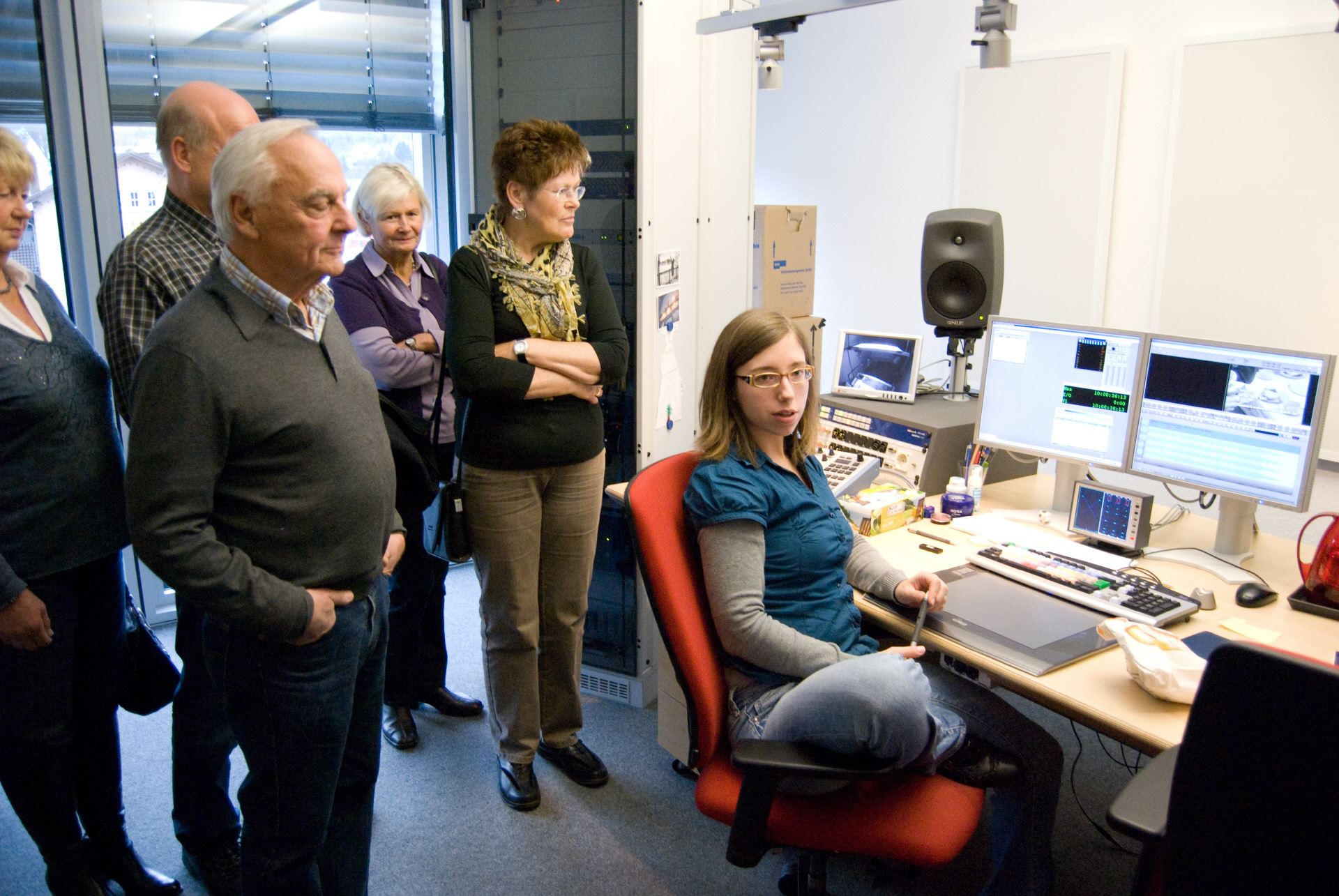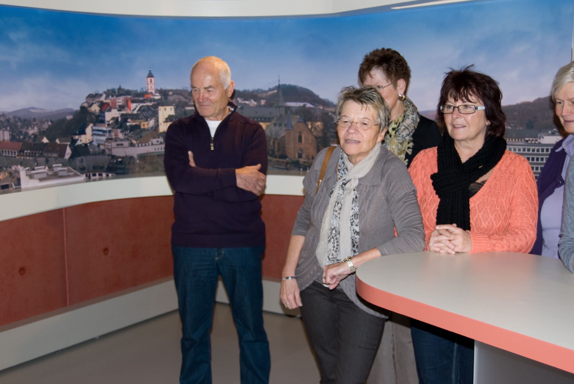 Am Freitag den 12. November besuchten 16 Wanderfreunde der SGV Abteilung Flammersbach das WDR Studio in Siegen. Der Student Jan Wagener führte die Gruppe durch die Räume und und informierte kompetent und umfangreich über die Arbeit des Westdeutschen Rundfunks in Südwestfalen. Das supermoderne Hörfunk- und Fernsehstudio macht großen Eindruck auf die Besucher. Mit einer Information über den WDR im Allgemeinen und eine abschließende Diskussion wurde das Programm eingerahmt. Ein interessanter Nachmittag für alle Teilnehmer.