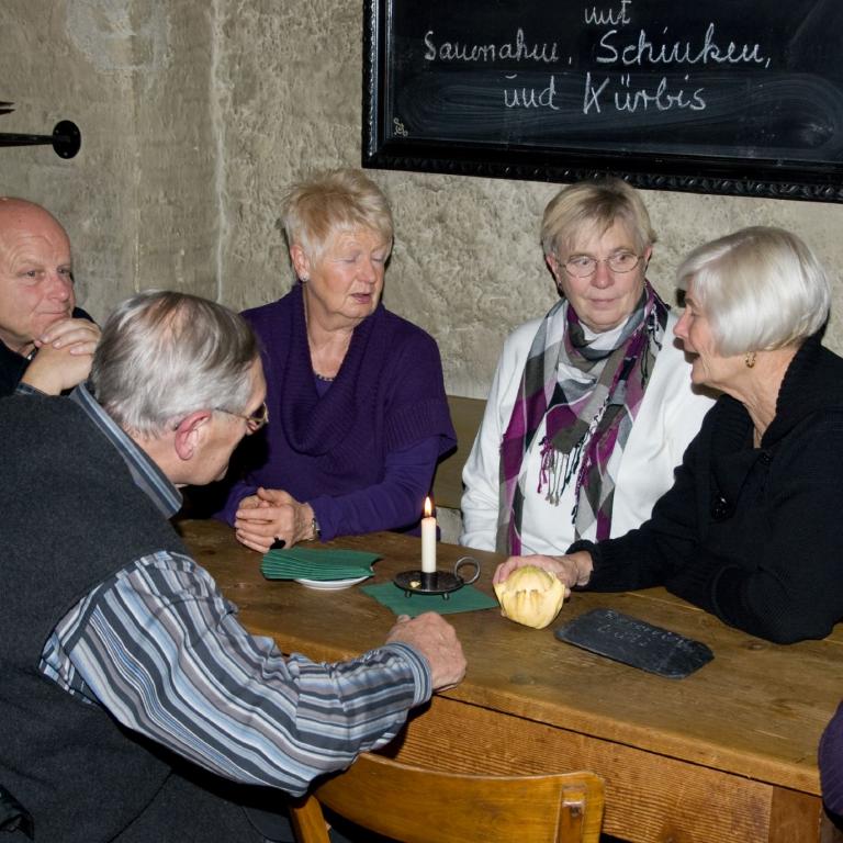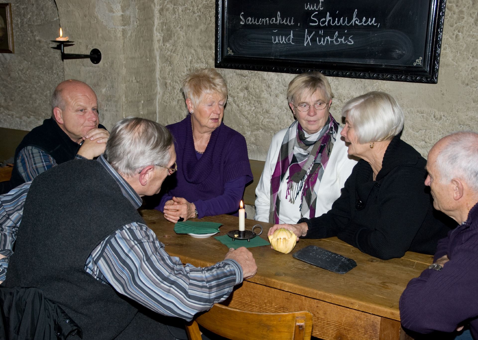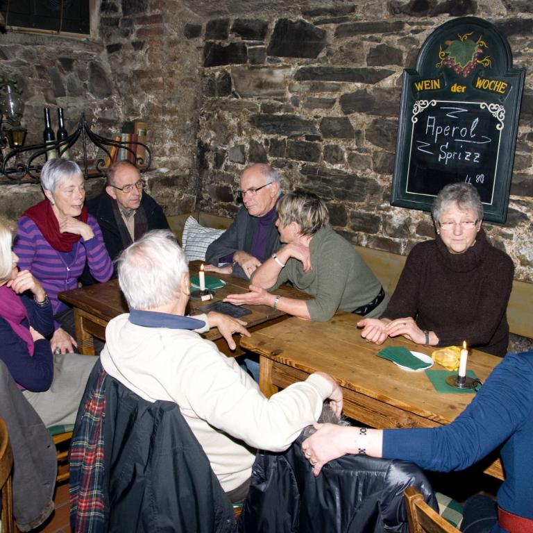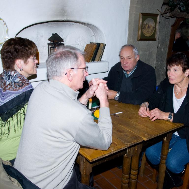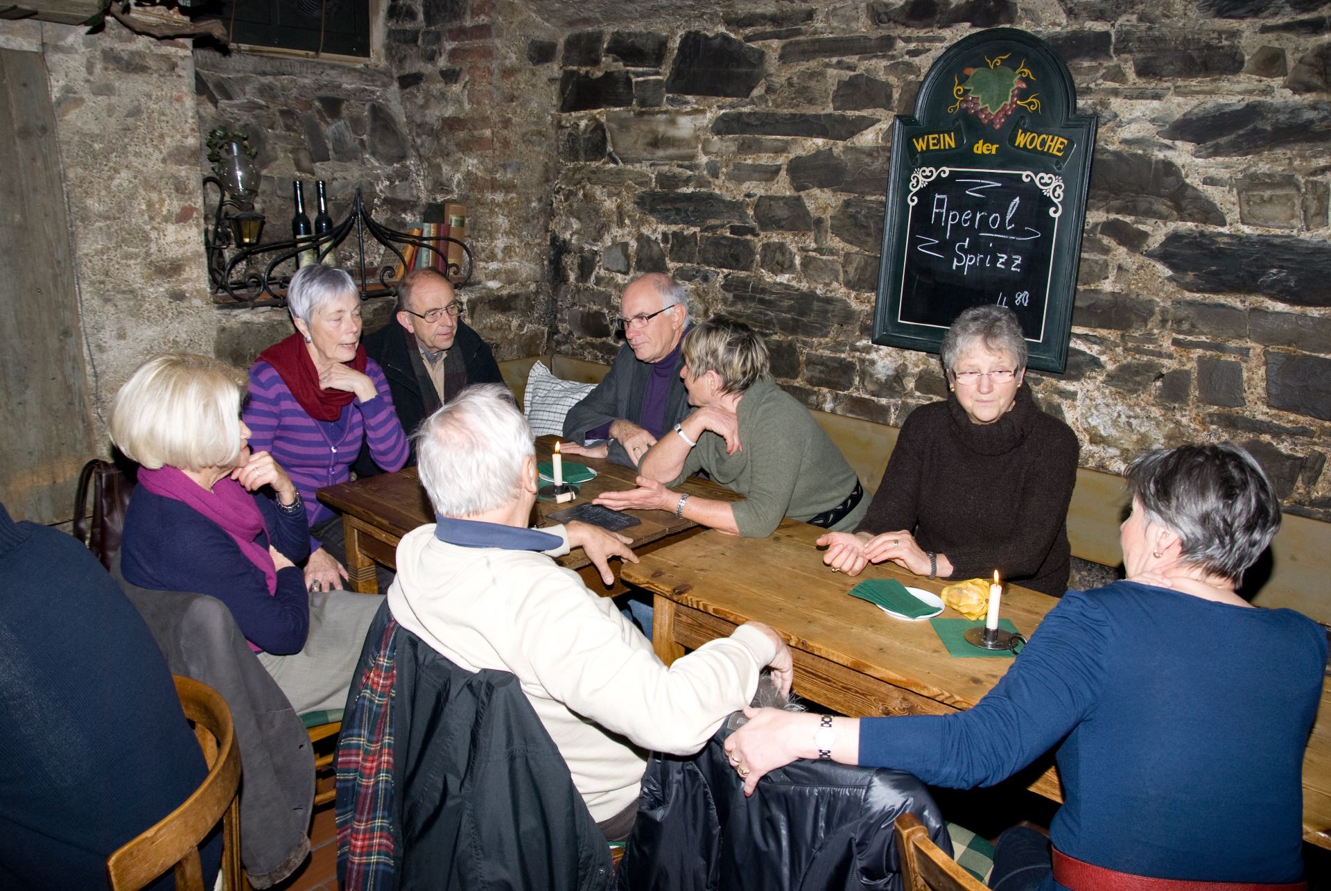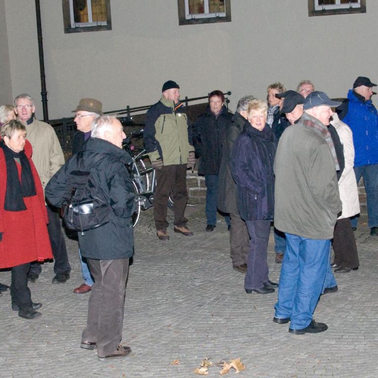 Man traf sich gegen 20:00 Uhr an der Nikolaikirche. Der Nachtwächter führte durch die Siegener Altstadt und erzählte in seiner originellen Art aus der Stadtgeschichte. Trotz recht kühler Temperaturen folgten die Teilnehmer aufmerksam seinen Ausführungen. Nach ca. 75 minütiger Führung kehrte man ein im Lokal "Zum Alten Weinkeller" und erfreute sich an Flammkuchen und Wein
