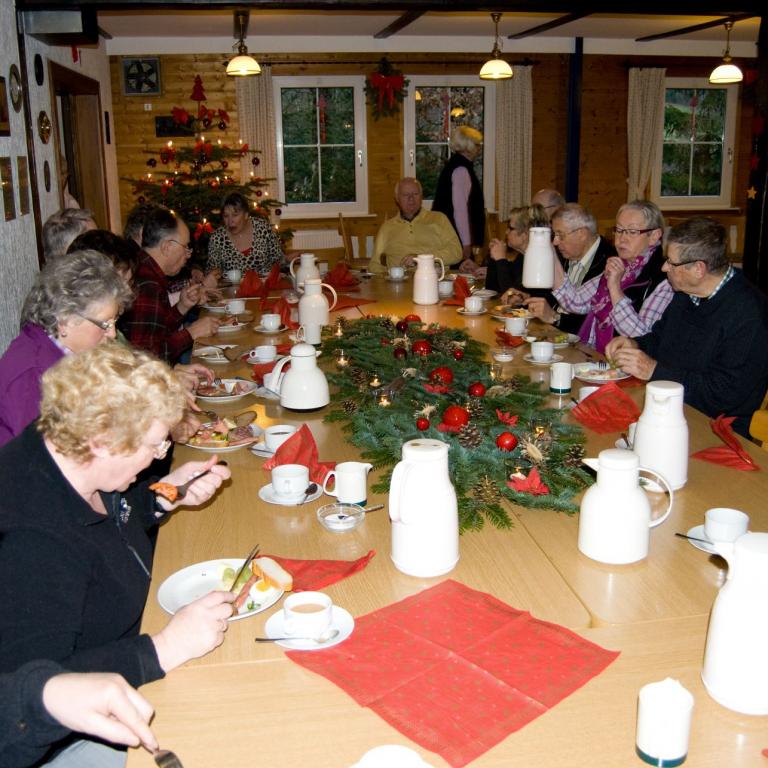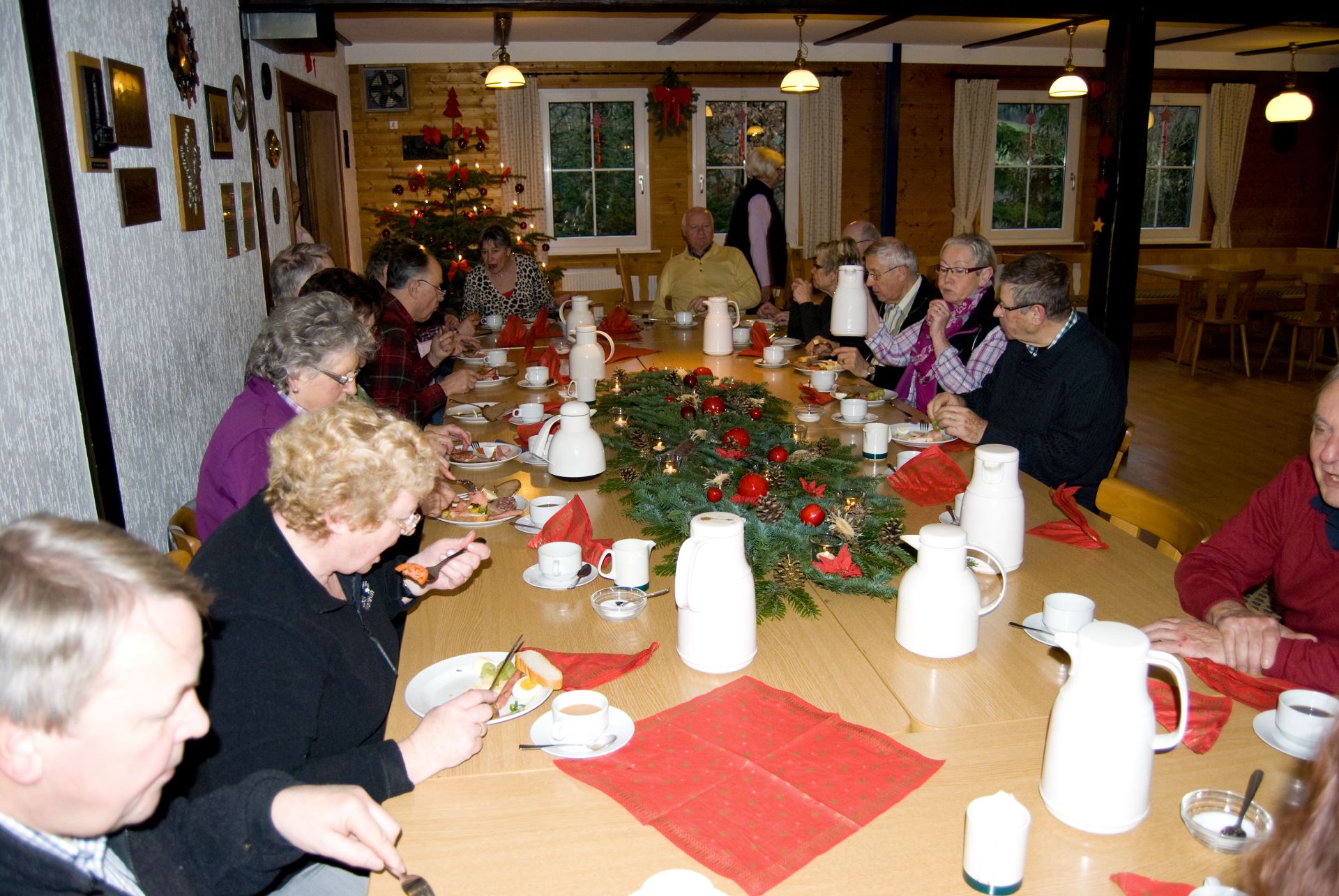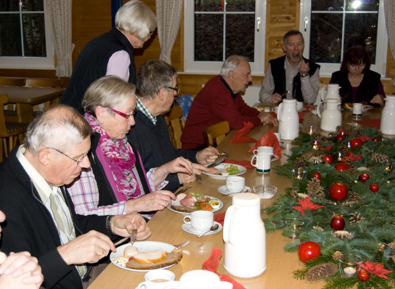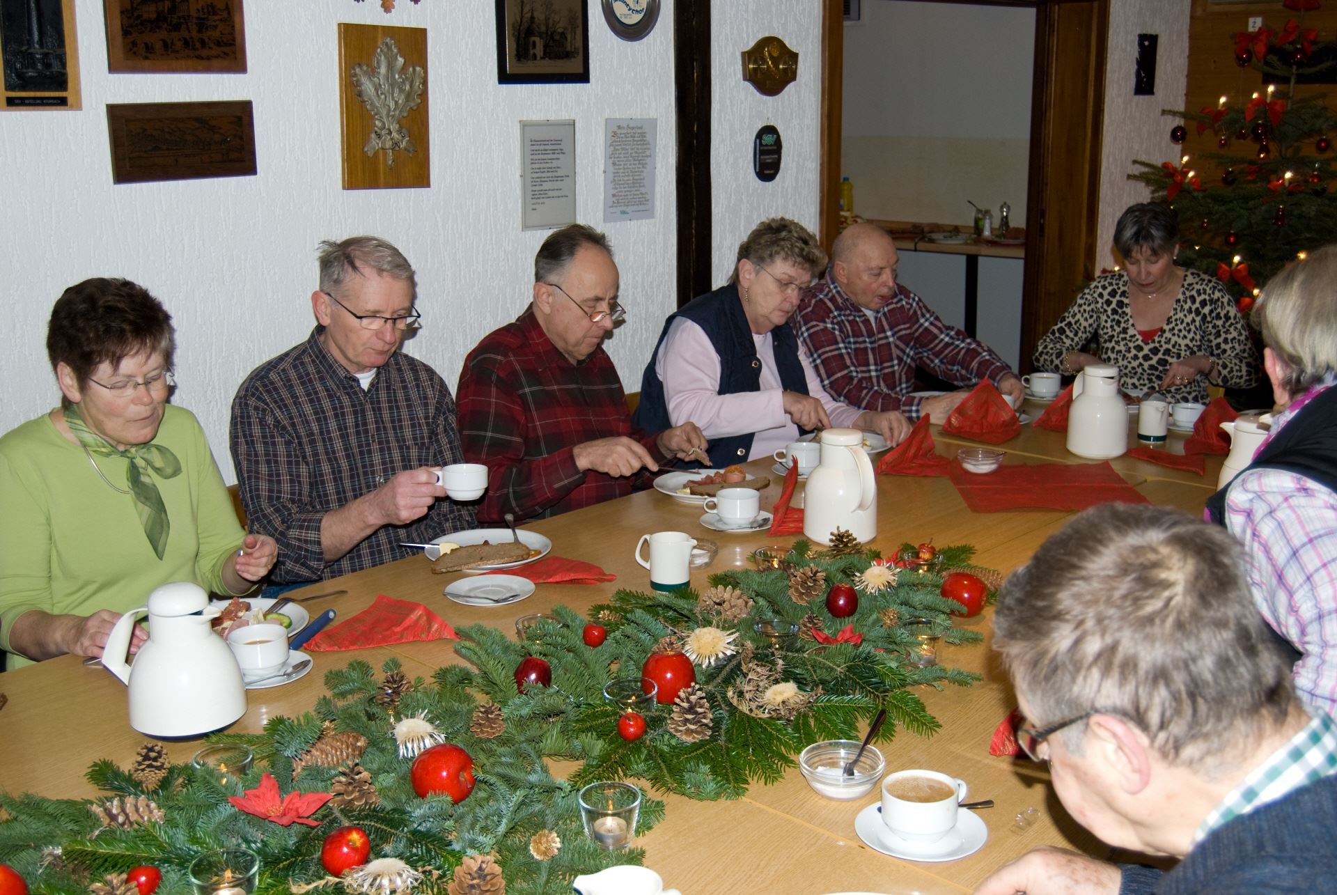 Wie in jedem Jahr hatten Karin und Karl-Heinz Kölsch wieder zu Ihrer Wanderung zwischen den Jahren eingeladen. Etliche Wanderfreunde waren der Einladung gefolgt und machten sich auf den zweistündigen Weg. Im Wanderheim hatte Karin Kölsch ein Büffet mit Wurst, Käse und Schinken vorbereitet und alle langten nach der Wanderung kräftig zu.