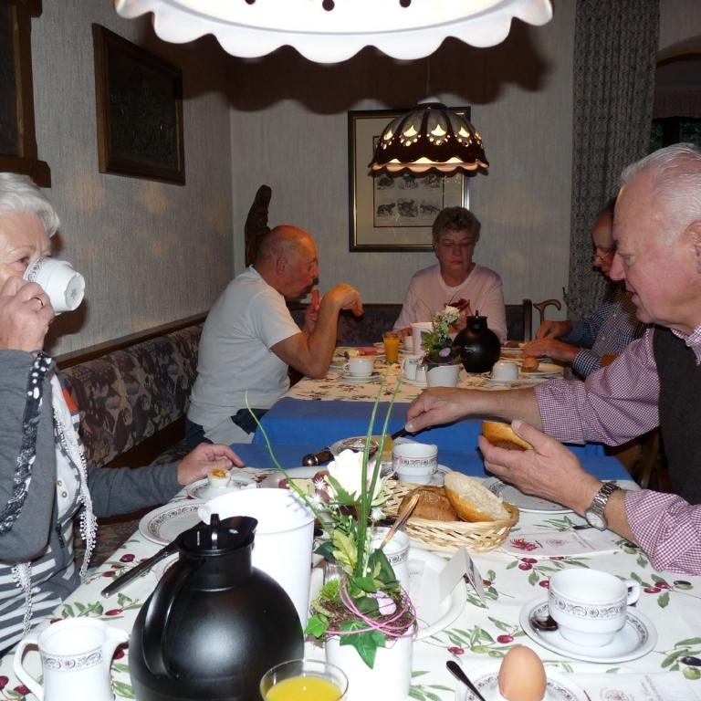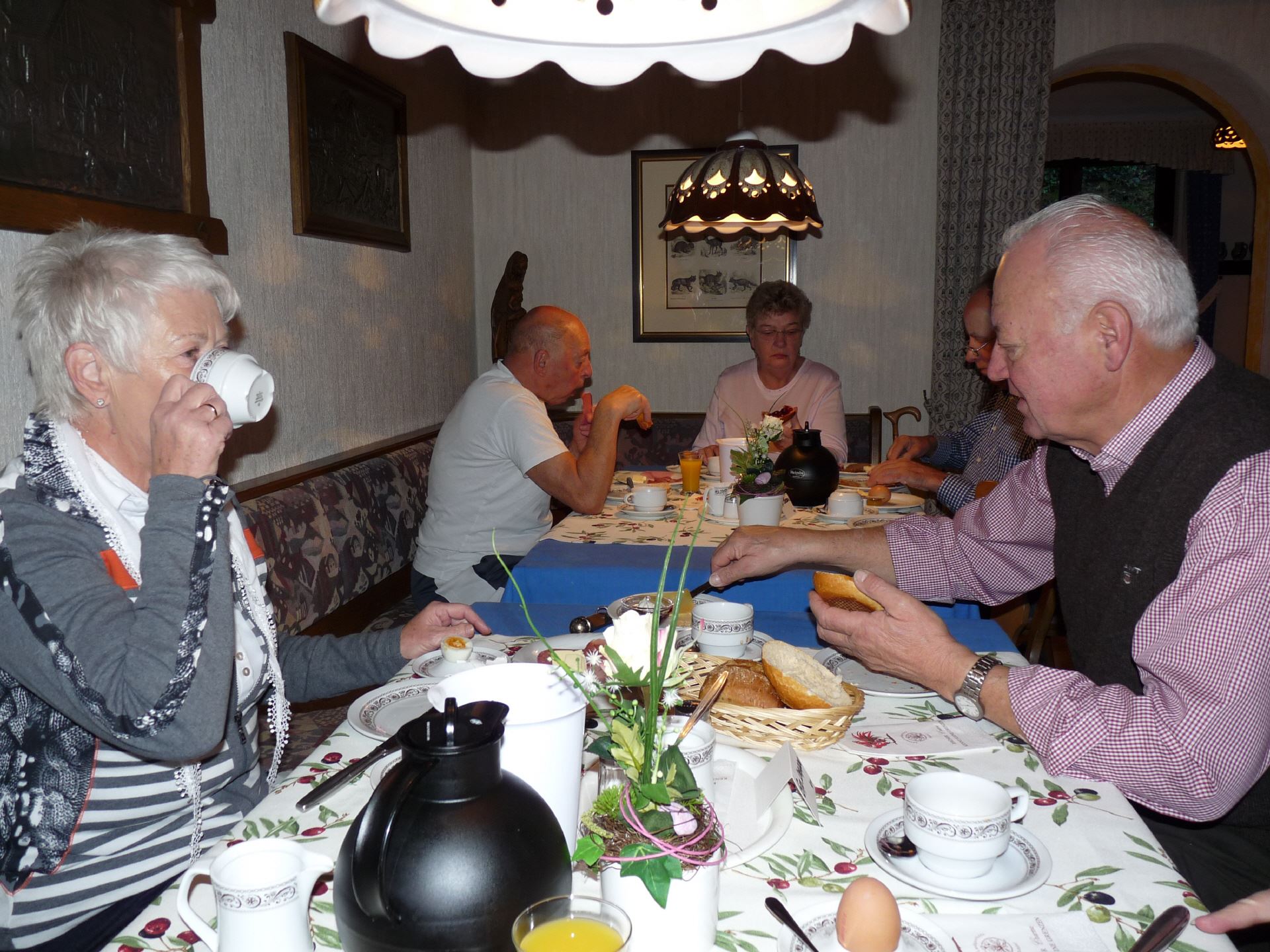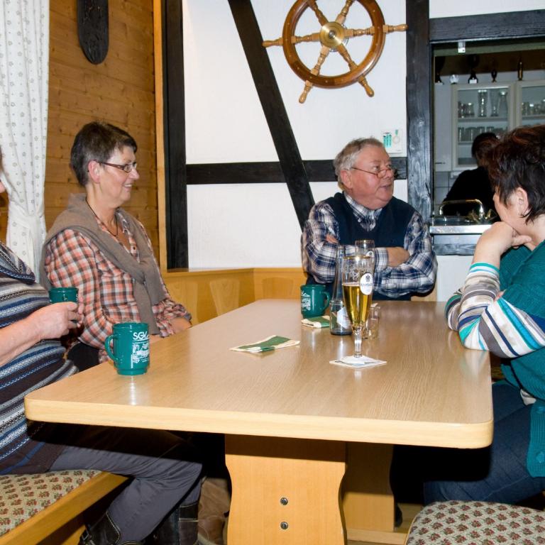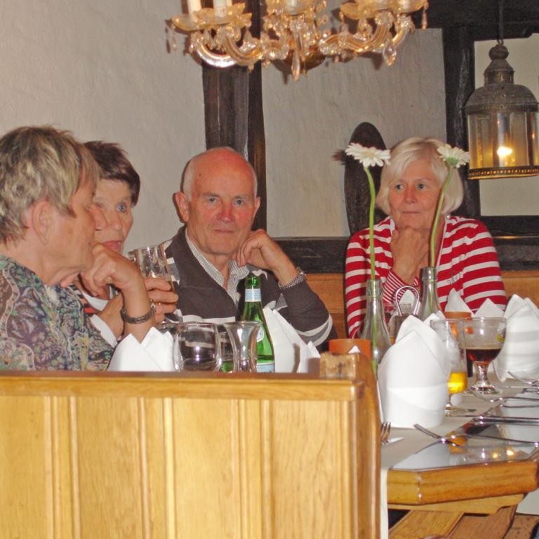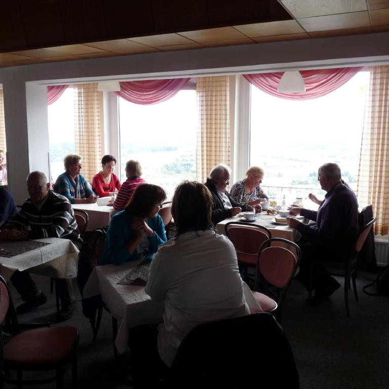 Am 13. Oktober 2012 war es endlich so weit !! Anlässlich unseres 75 jährigen Vereins Jubiläums ging es ab in die Rhön. Um 9 Uhr rollte unser Bus gesteuert von Busfahrer Manfred mit 42 Personen nach Alsfeld. In der historischen Altstadt von Alsfeld wurde sich mit Kaffee und Kuchen gestärkt. Dann ging es weiter zur Burgenstadt Schlitz und von dort nach Fulda. Nach Dom, Altstadt und Irischem Pup fuhren wir dann zum Landgasthof Kehl in Lahrbach unserem Ziel. Nach dem Bezug unserer Zimmer gab es ein 4 Gänge!! Menu. Gut gestärkt gingen wir dann zum gemütlichen Teil über. Mit Musik von einem Alleinunterhalter wurde gefeiert bis in die Morgenstunden. Nach einem reichhaltigen und sehr guten Frühstück besuchten wir die Wasserkuppe. Leider war auf Grund der Wetterbedingungen die Sicht sehr schlecht. Nach kurzem Aufenthalt gings weiter nach Amöneburg zum Kaffee trinken. In der auf einem 365m hohen "Berg" gelegenen Altstadt mit Resten vom alten Schloss und der großen Stiftskirche genossen wir die schöne Aussicht. Anschließend zog es uns wieder in die Heimat.