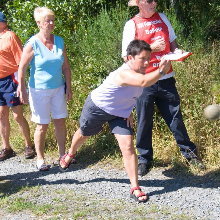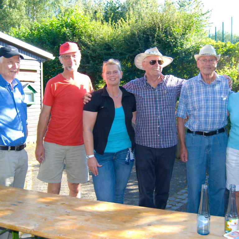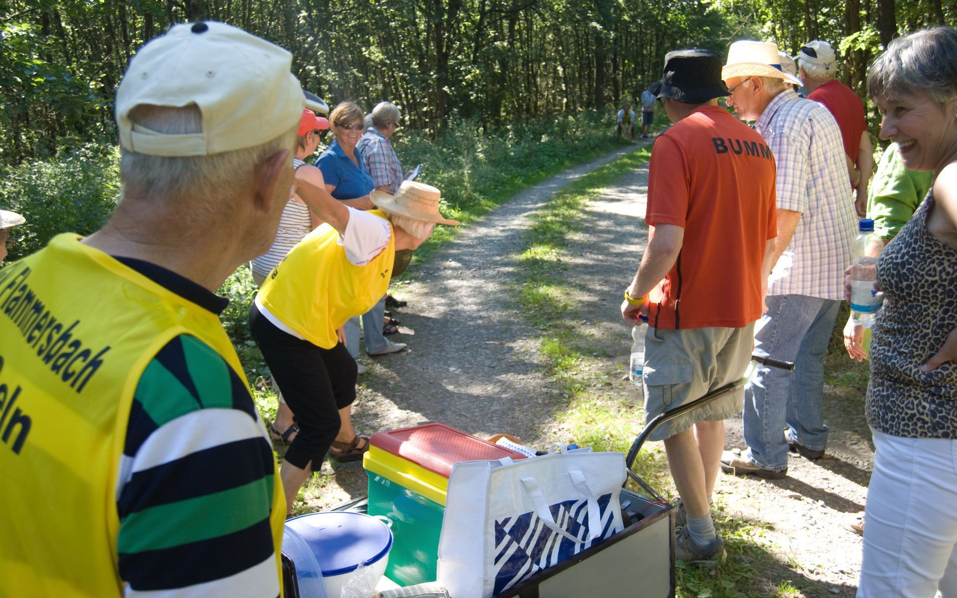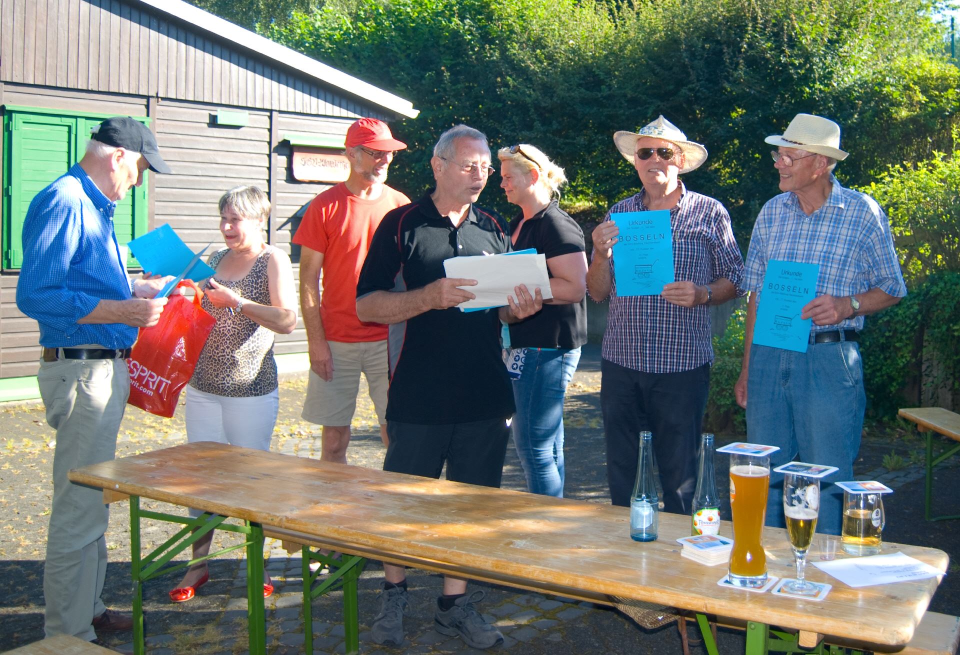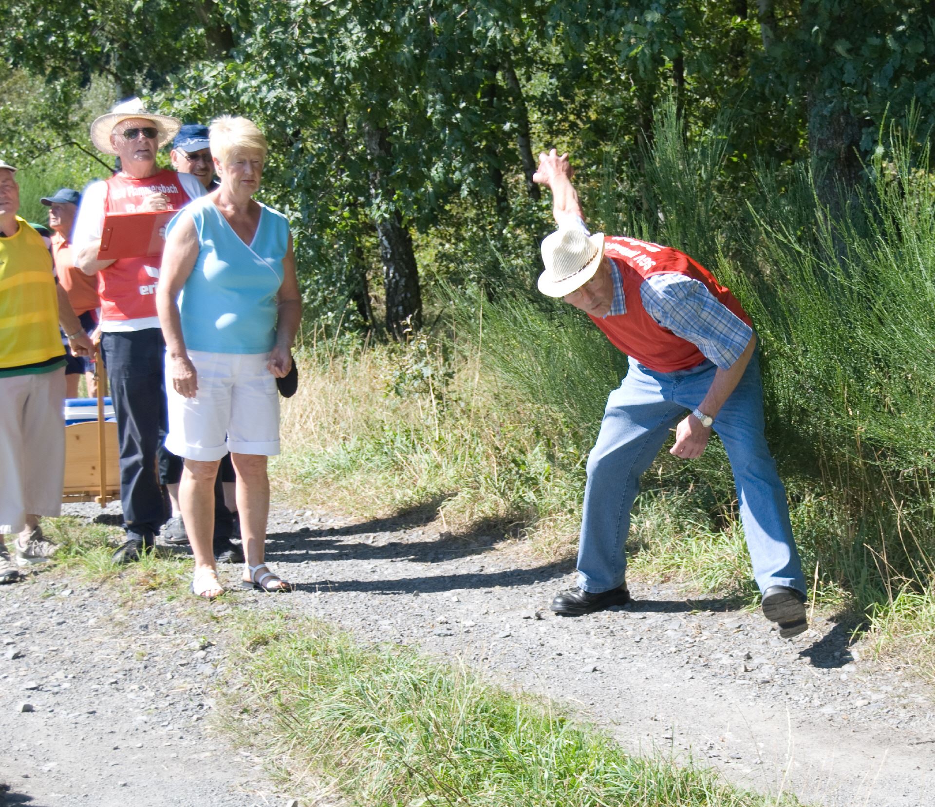 Bereits zum 13. Mal hatte der Singkreis des SGV zum Boßeln eingeladen. 28 Boßler und 5 Gäste hatten sich angemeldet. Wegen des heißen Wetters wurde die Boßelstrecke verkürzt und in den schattigen Wald verlegt, was dann viele als interessante Lösung ansahen. Nach halber Strecke war im Wald der Tisch gedeckt (sogar mit Tischdecke) und es gab Kaffee und Kuchen.