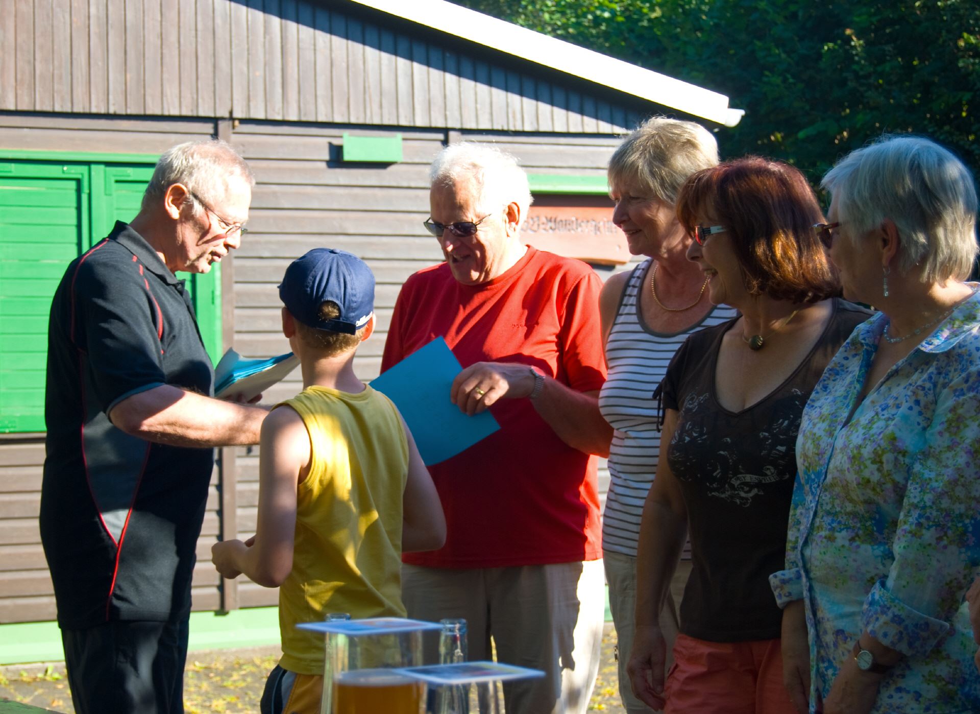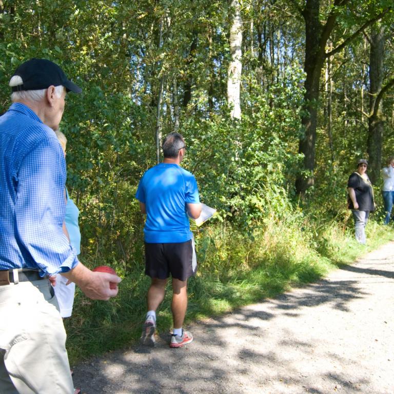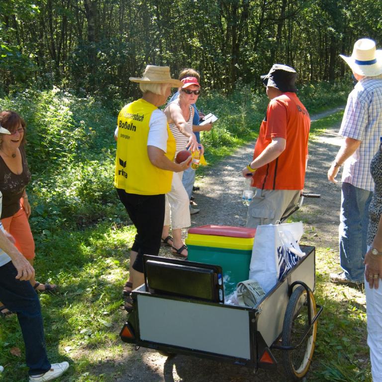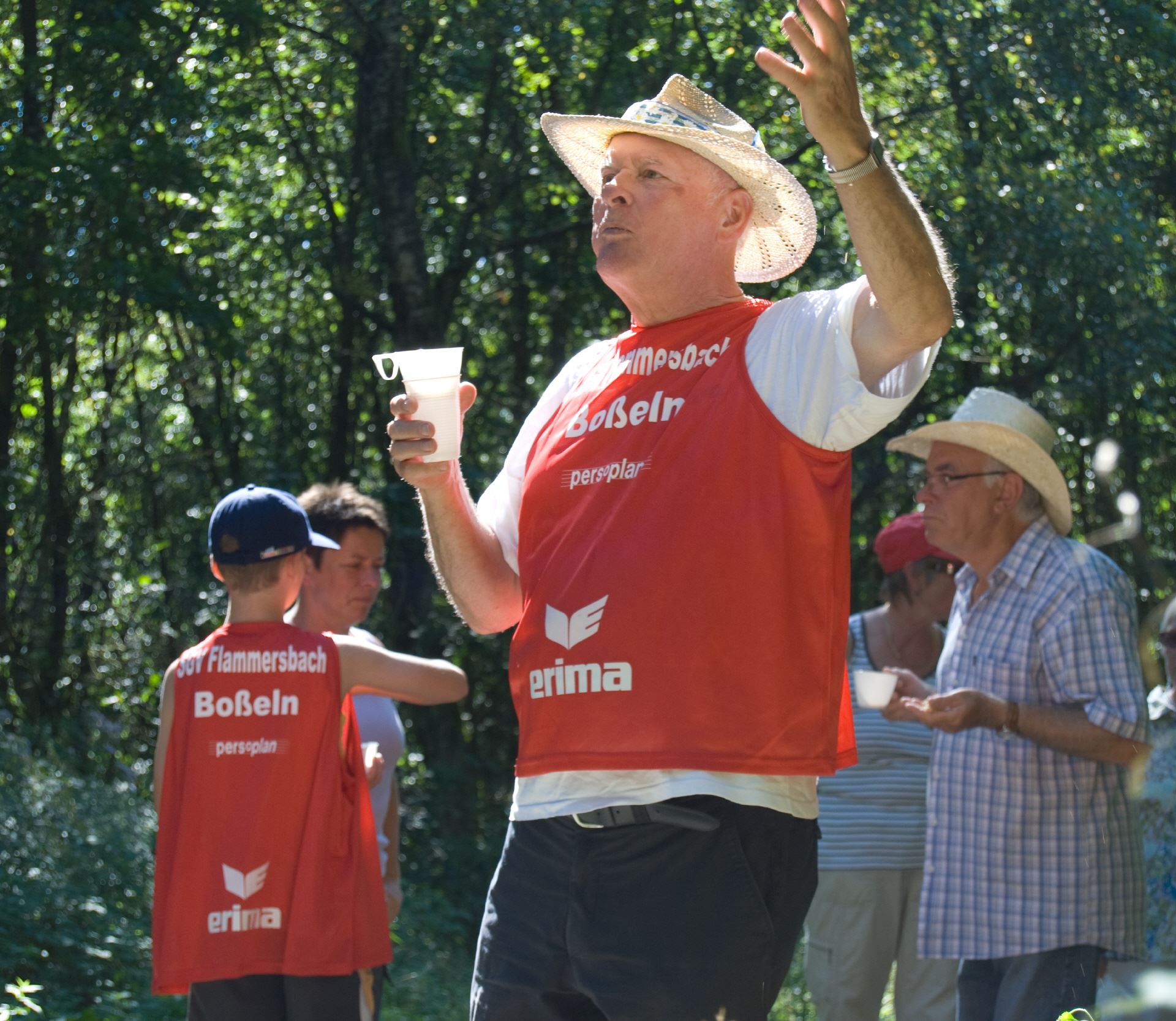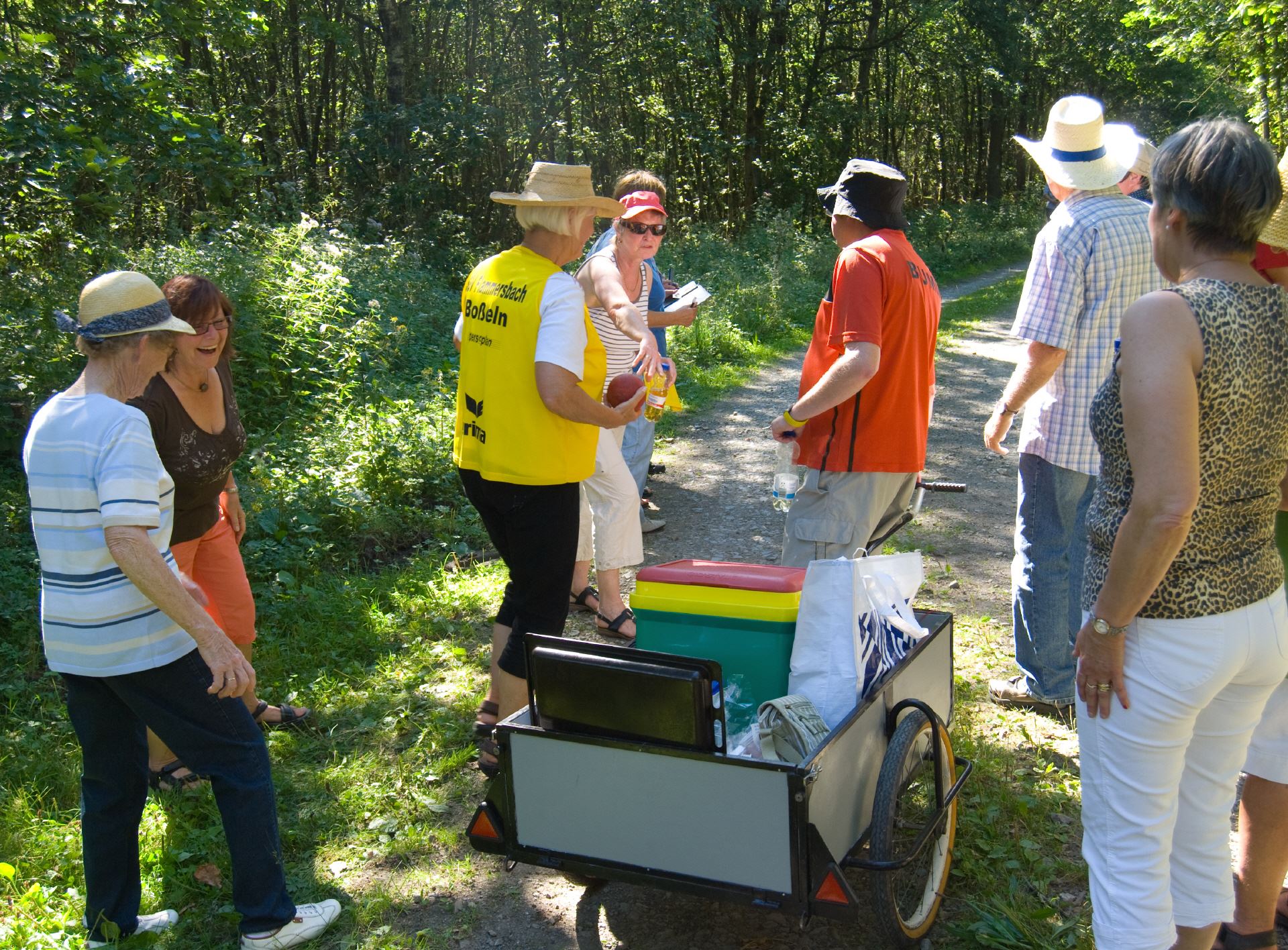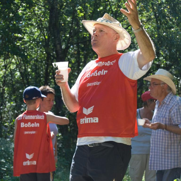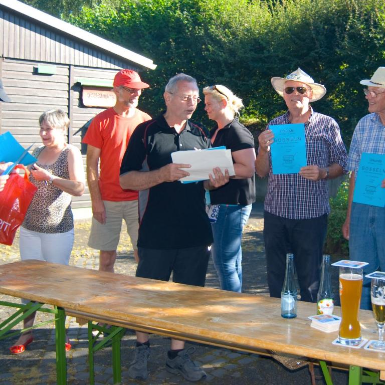 Bereits zum 13. Mal hatte der Singkreis des SGV zum Boßeln eingeladen. 28 Boßler und 5 Gäste hatten sich angemeldet. Wegen des heißen Wetters wurde die Boßelstrecke verkürzt und in den schattigen Wald verlegt, was dann viele als interessante Lösung ansahen. Nach halber Strecke war im Wald der Tisch gedeckt (sogar mit Tischdecke) und es gab Kaffee und Kuchen.