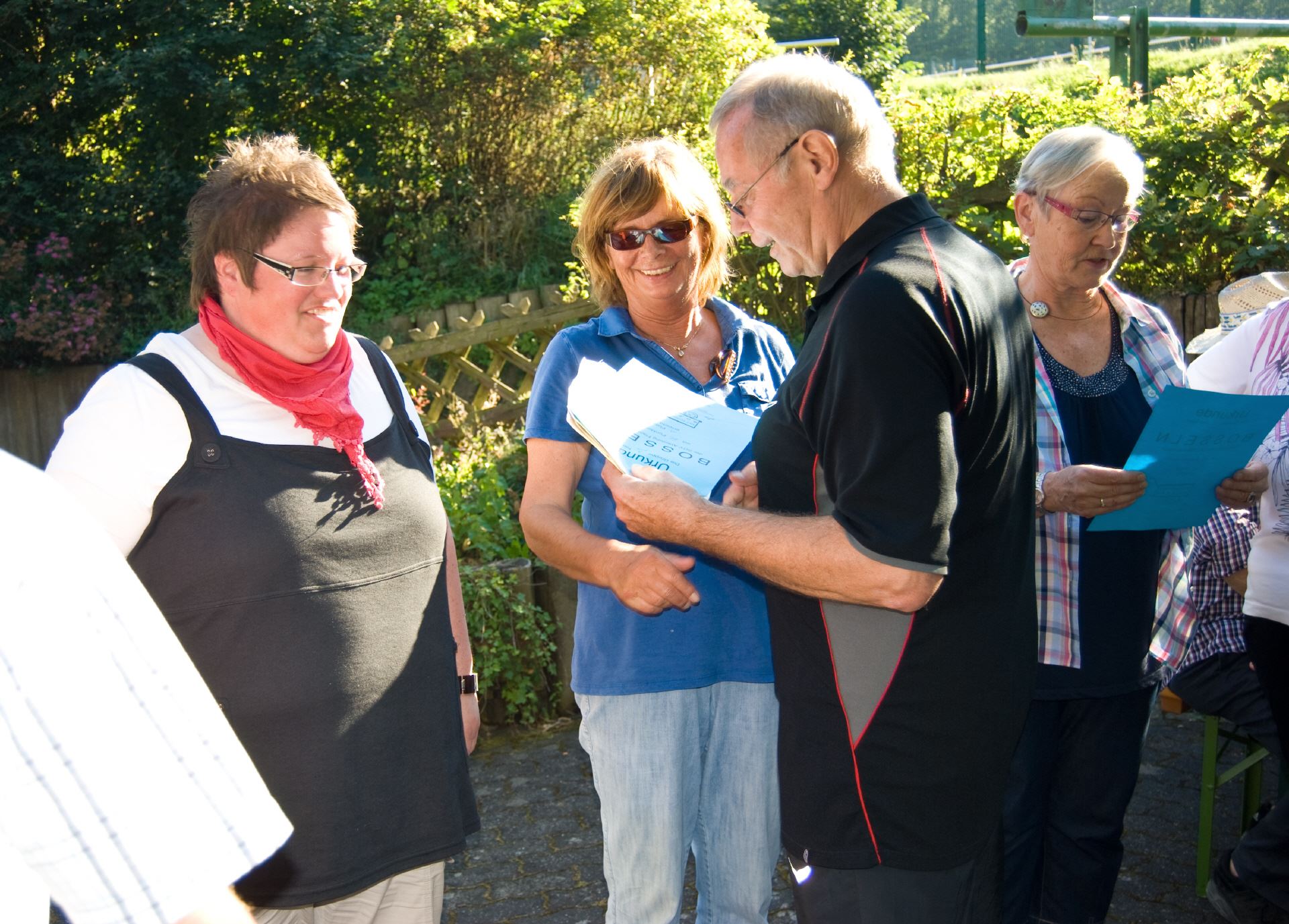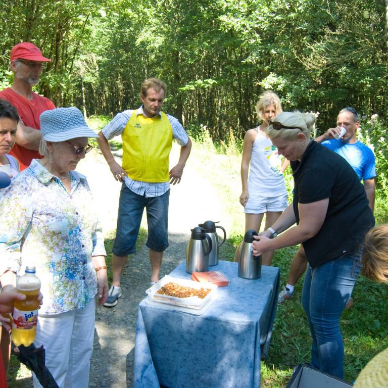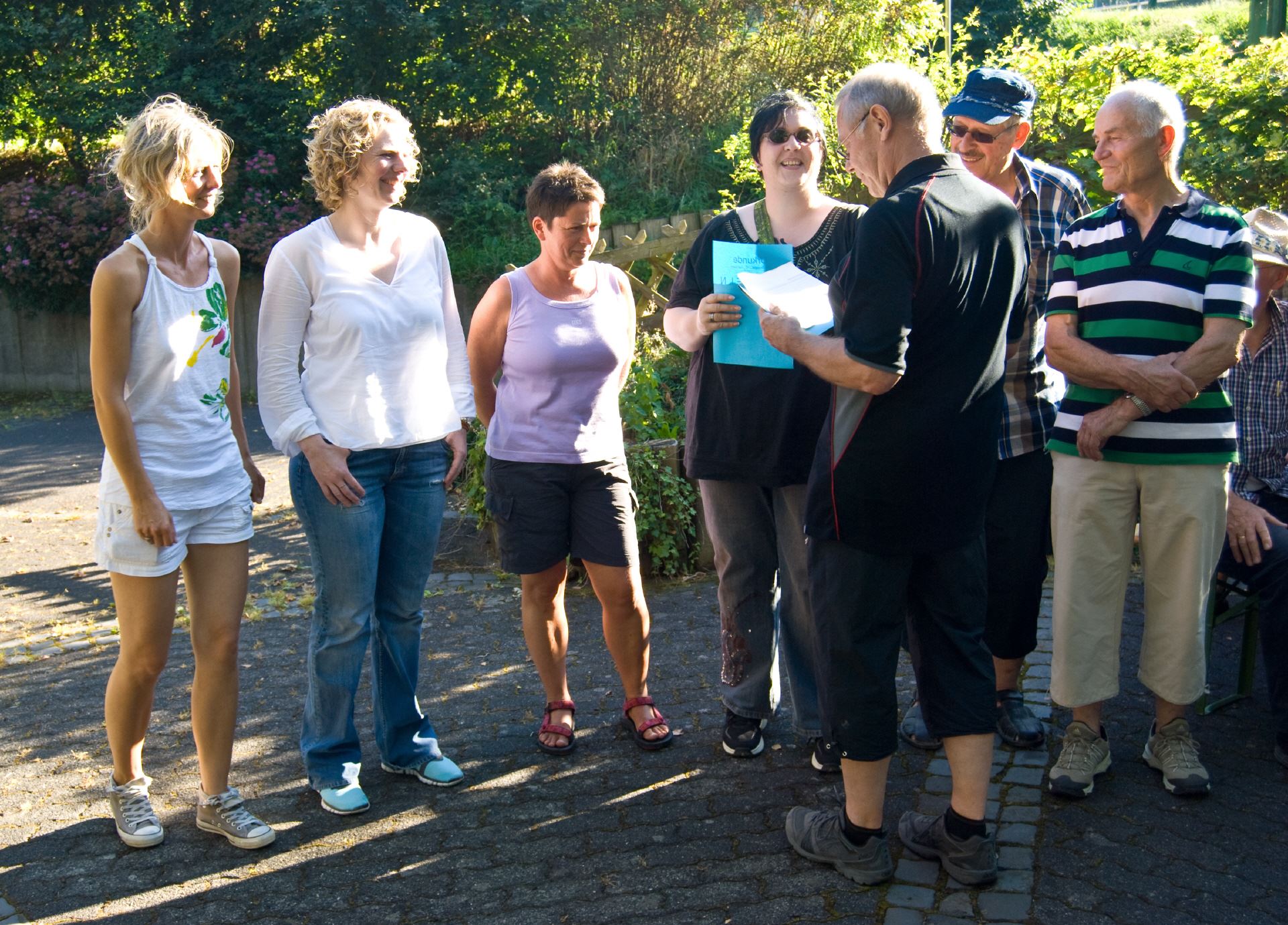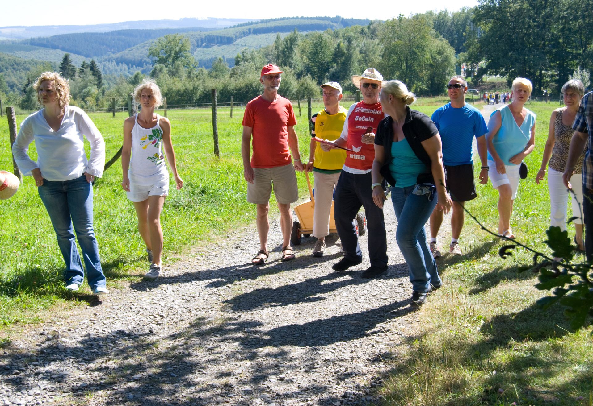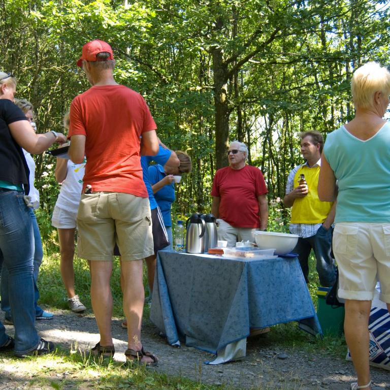 Bereits zum 13. Mal hatte der Singkreis des SGV zum Boßeln eingeladen. 28 Boßler und 5 Gäste hatten sich angemeldet. Wegen des heißen Wetters wurde die Boßelstrecke verkürzt und in den schattigen Wald verlegt, was dann viele als interessante Lösung ansahen. Nach halber Strecke war im Wald der Tisch gedeckt (sogar mit Tischdecke) und es gab Kaffee und Kuchen.