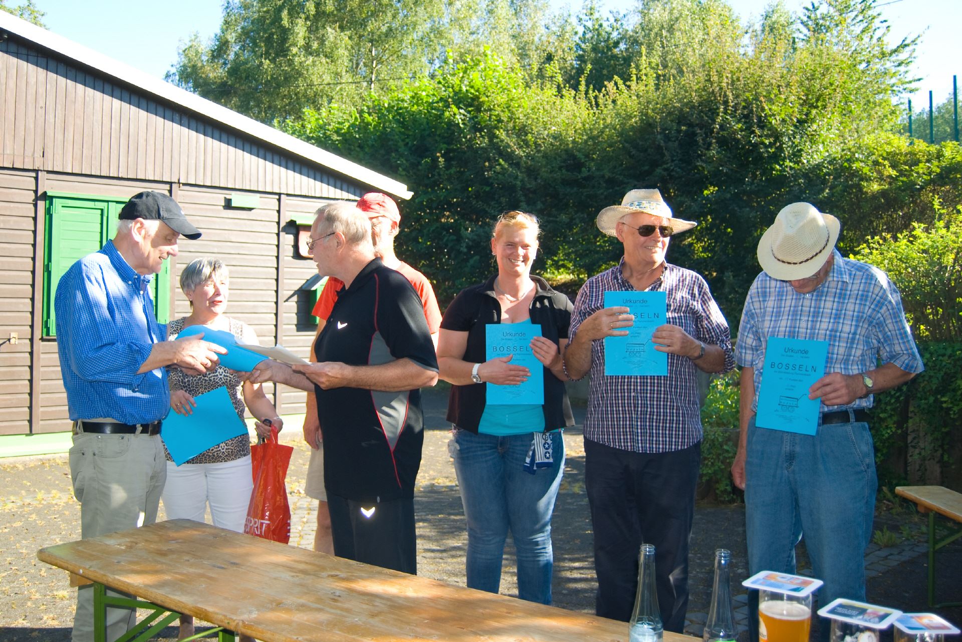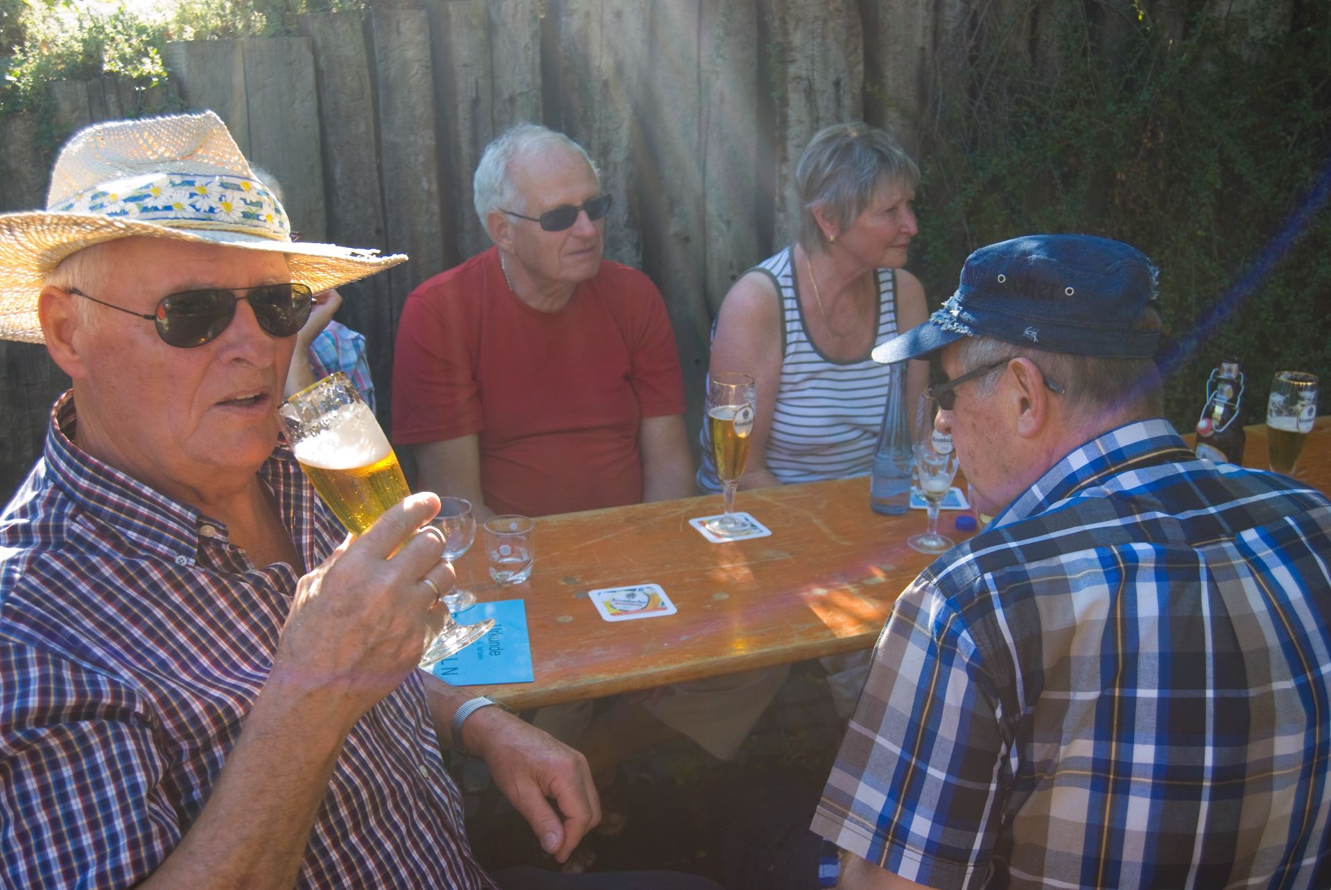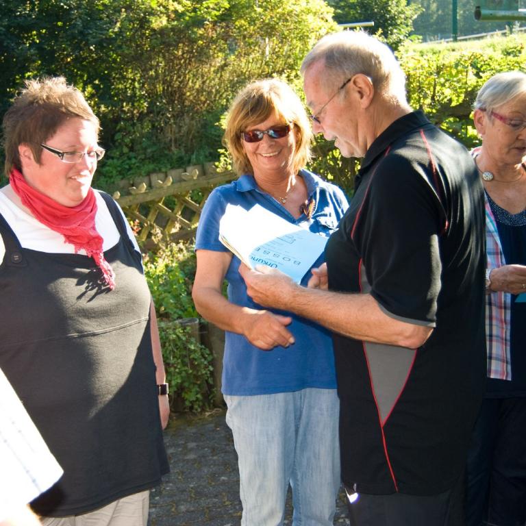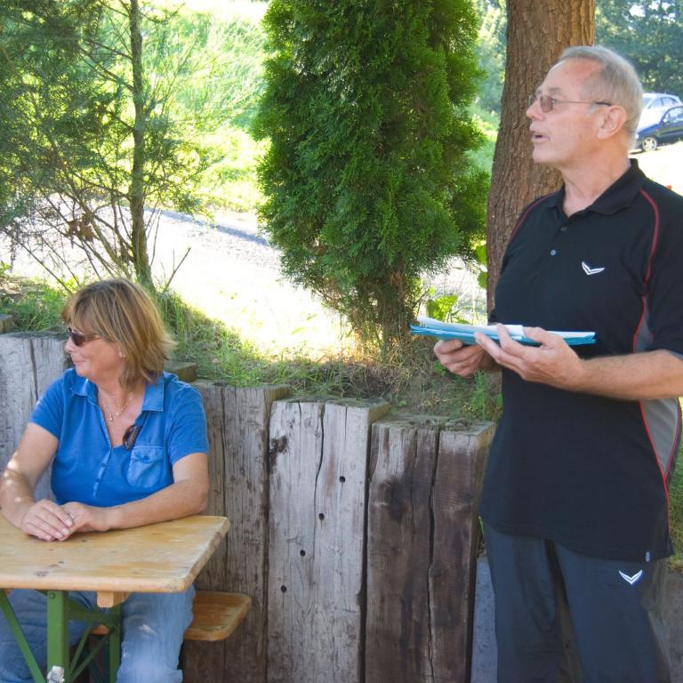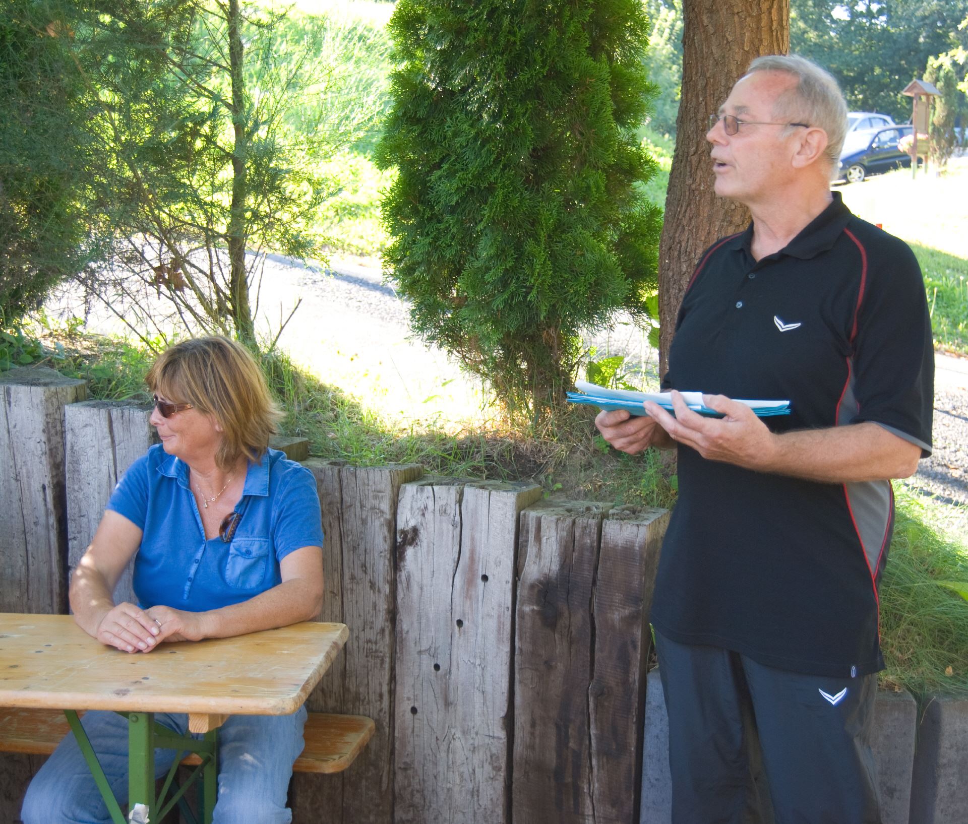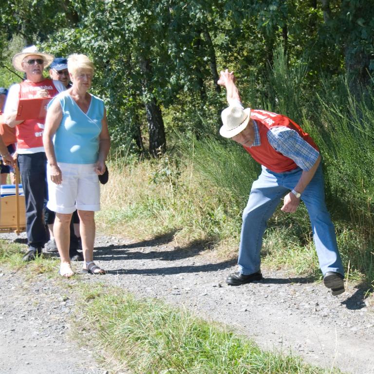 Bereits zum 13. Mal hatte der Singkreis des SGV zum Boßeln eingeladen. 28 Boßler und 5 Gäste hatten sich angemeldet. Wegen des heißen Wetters wurde die Boßelstrecke verkürzt und in den schattigen Wald verlegt, was dann viele als interessante Lösung ansahen. Nach halber Strecke war im Wald der Tisch gedeckt (sogar mit Tischdecke) und es gab Kaffee und Kuchen.