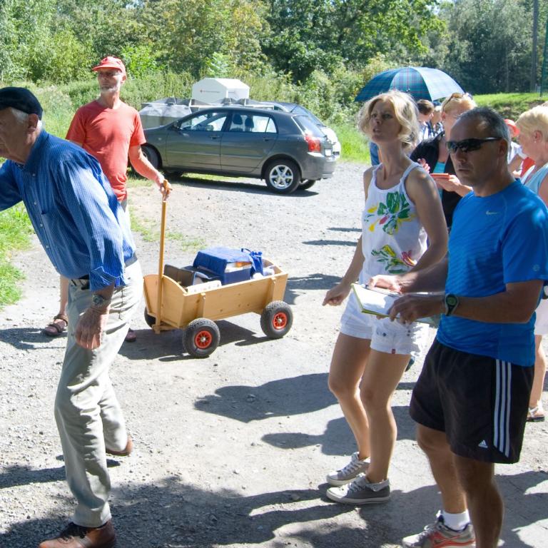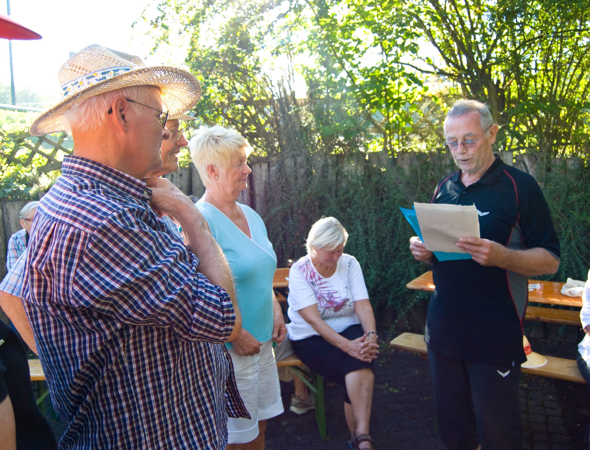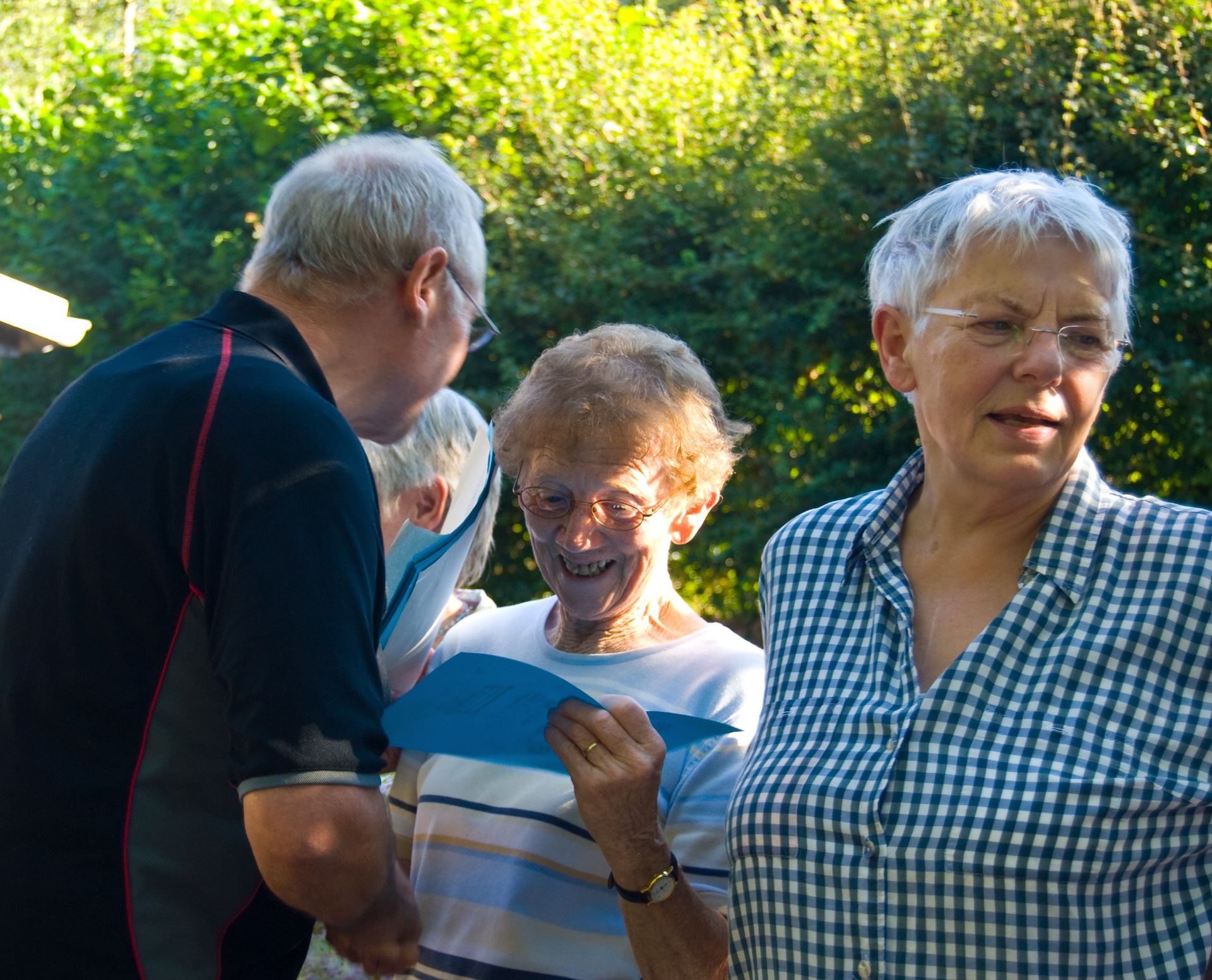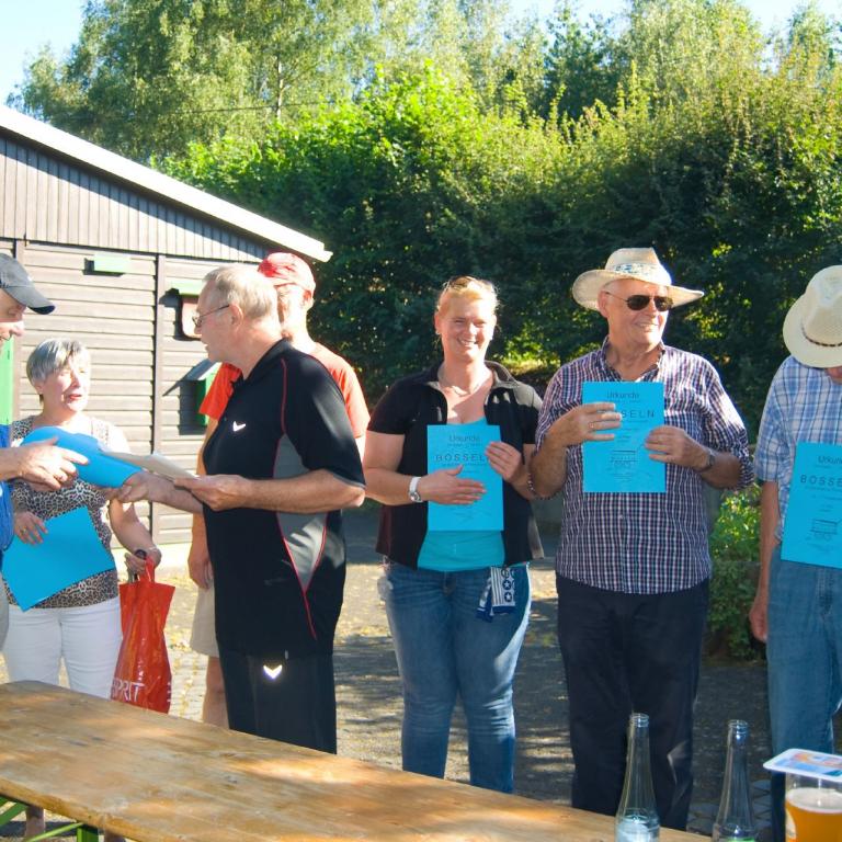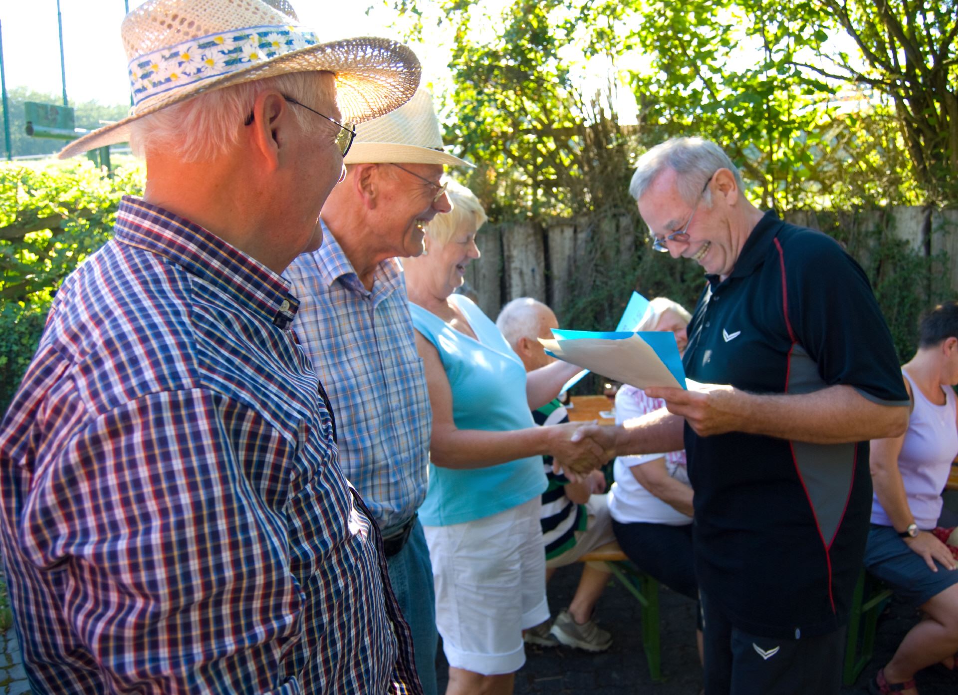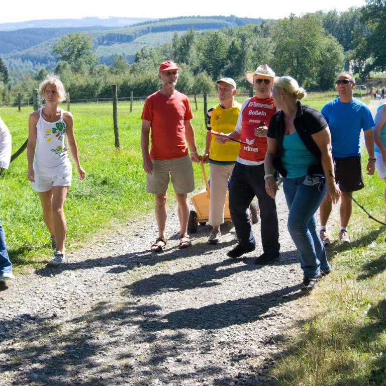Bereits zum 13. Mal hatte der Singkreis des SGV zum Boßeln eingeladen. 28 Boßler und 5 Gäste hatten sich angemeldet. Wegen des heißen Wetters wurde die Boßelstrecke verkürzt und in den schattigen Wald verlegt, was dann viele als interessante Lösung ansahen. Nach halber Strecke war im Wald der Tisch gedeckt (sogar mit Tischdecke) und es gab Kaffee und Kuchen.