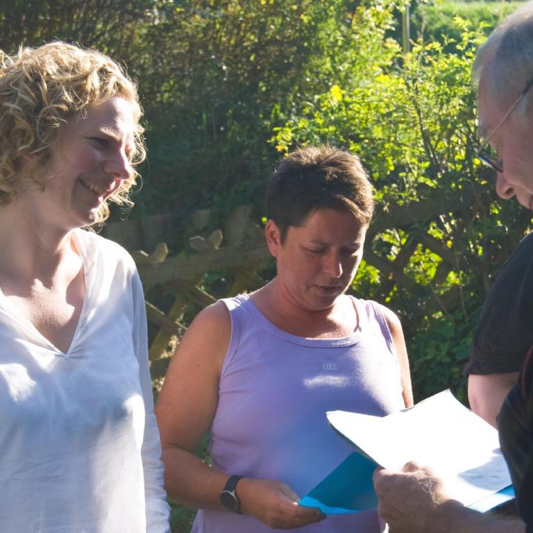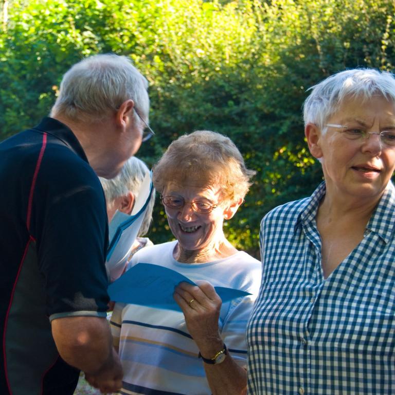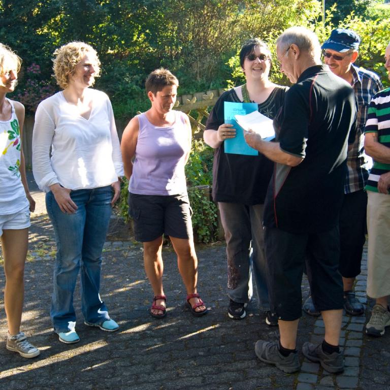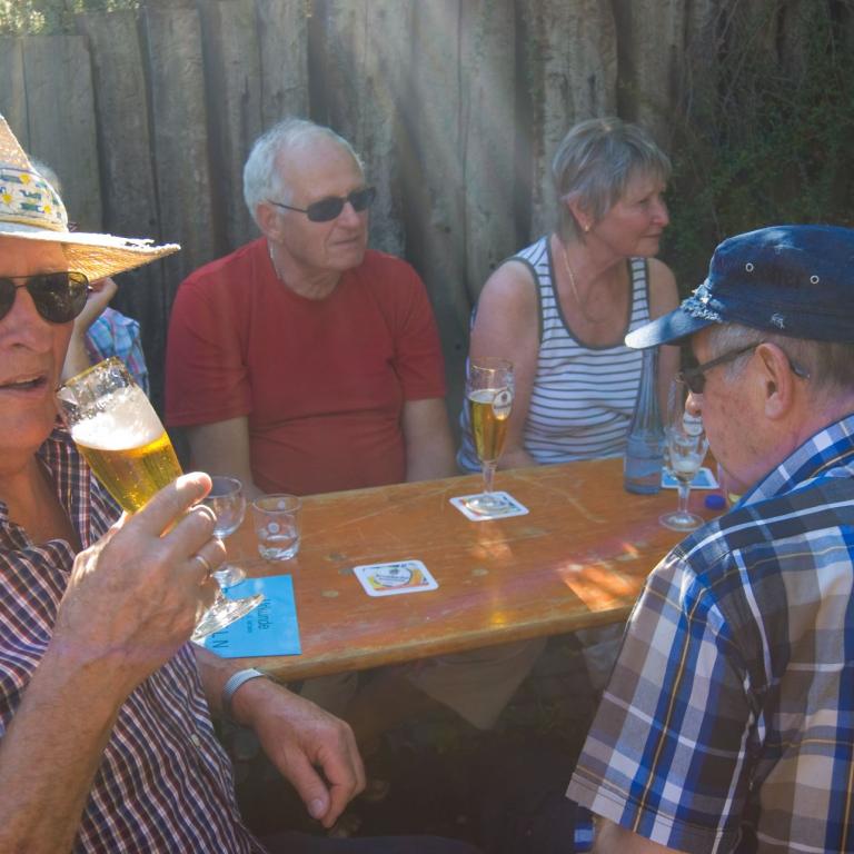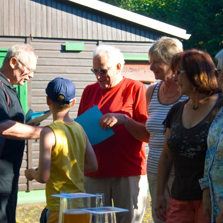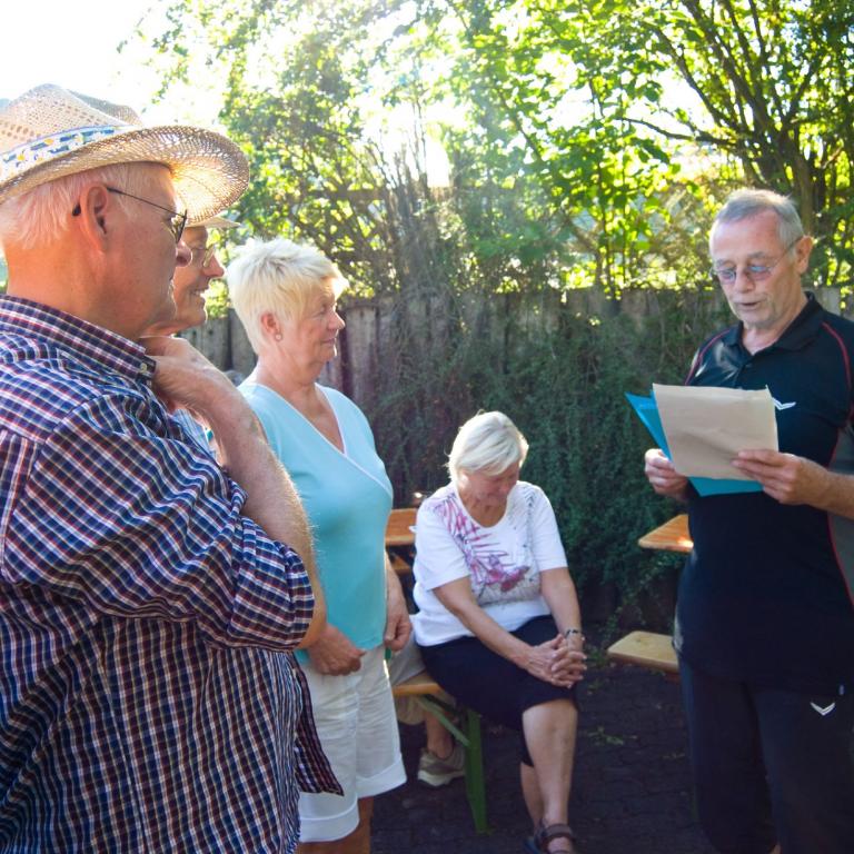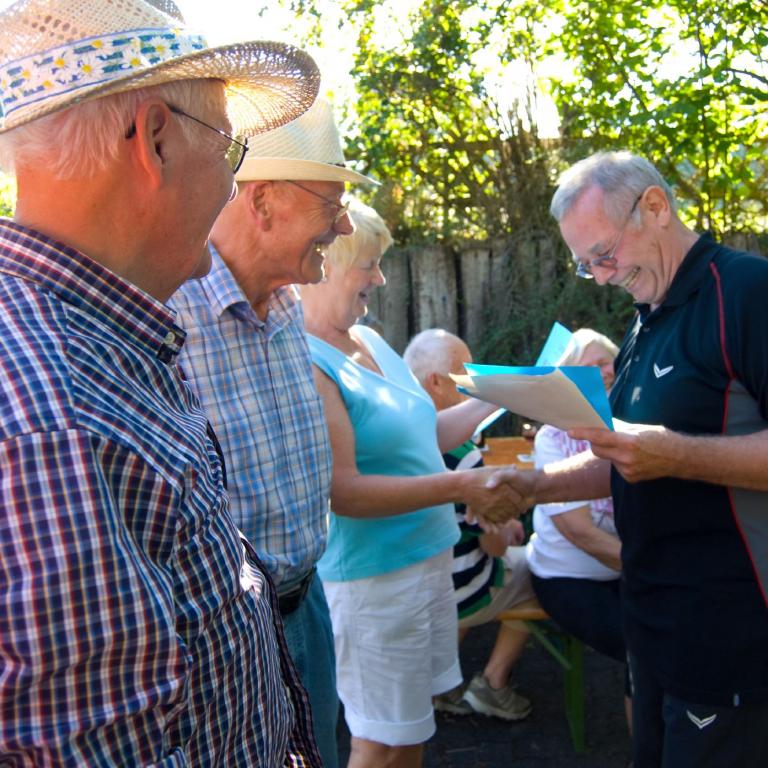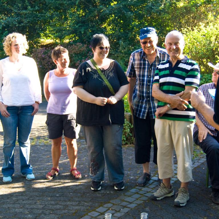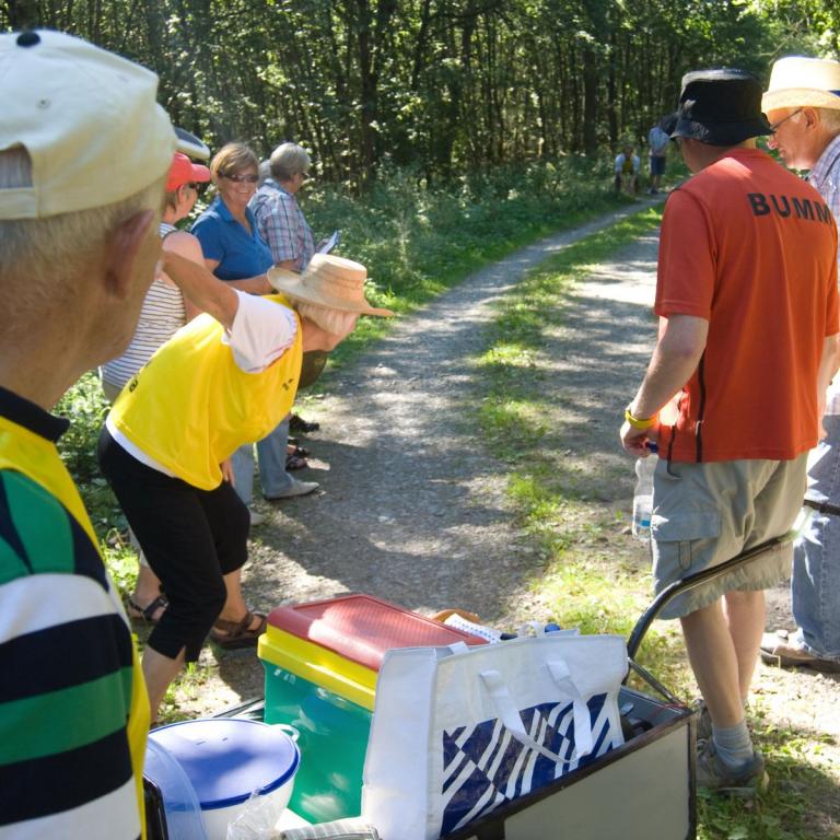 Bereits zum 13. Mal hatte der Singkreis des SGV zum Boßeln eingeladen. 28 Boßler und 5 Gäste hatten sich angemeldet. Wegen des heißen Wetters wurde die Boßelstrecke verkürzt und in den schattigen Wald verlegt, was dann viele als interessante Lösung ansahen. Nach halber Strecke war im Wald der Tisch gedeckt (sogar mit Tischdecke) und es gab Kaffee und Kuchen.