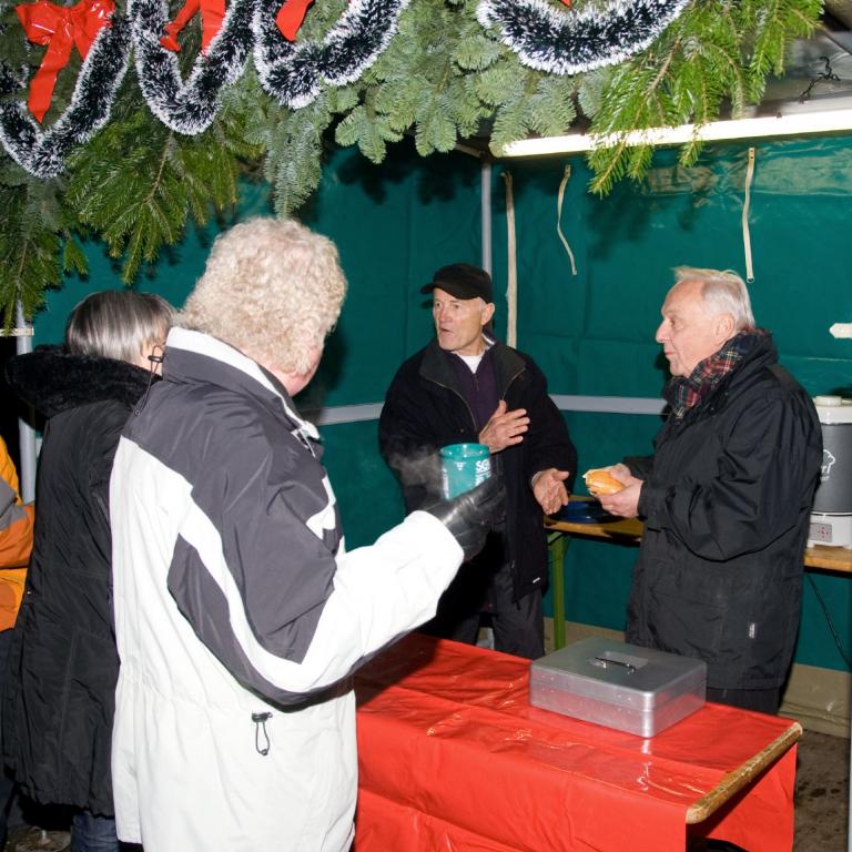 Recht vorweihnachtlich ging es zu beim SGV Weihnachsmarkt. Der Posaunenchor des CVJM spielte zu Beginn wunderschöne Adventsmusik und im Wanderheim wurden Kräbbelchen und Waffeln gebacken. Glühwein und Würstchen, Steaks und Fritten gab es im festlich dekorierten Aussenbereich. Bei Anbruch der Dunkelheit kam der Nikolaus aus dem Wald und bescherte 60 erwartungsvolle Kinder mit einer Tüte voller Süßigkeiten. Bis in den Abend hinein gab es ein geselliges Treiben im Wanderheim.