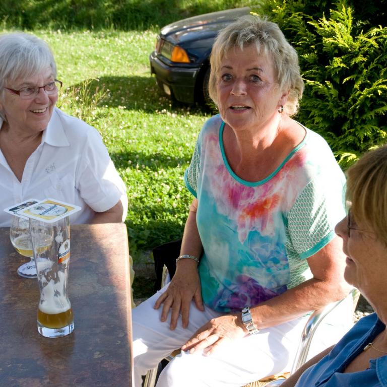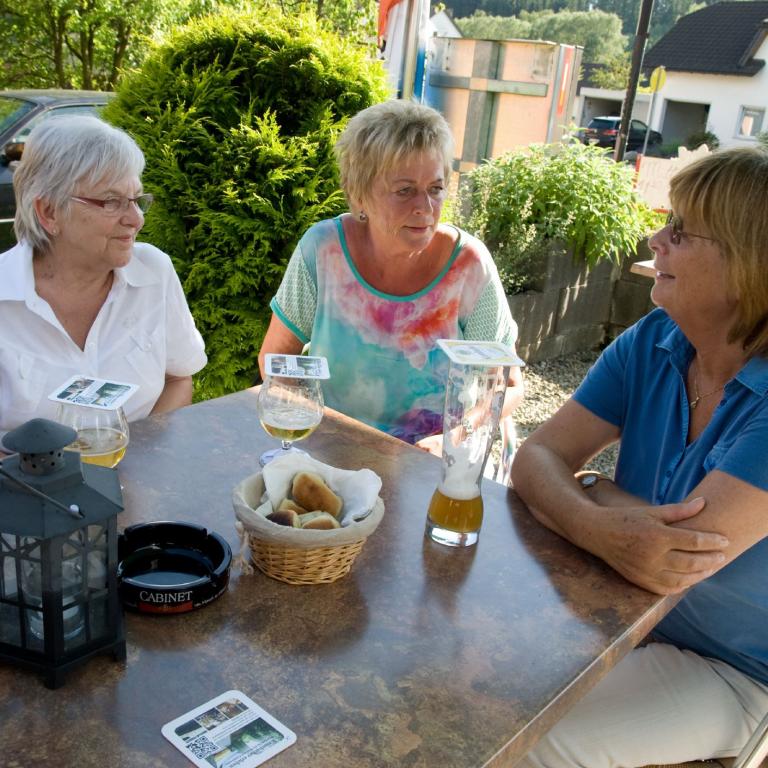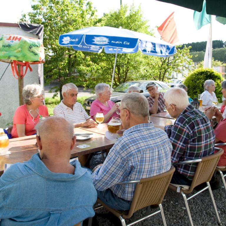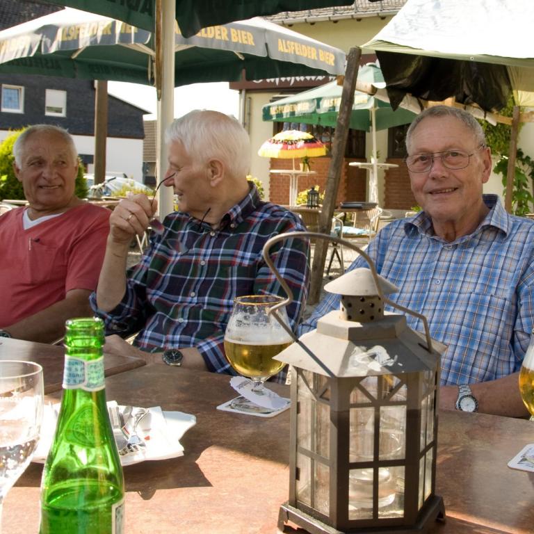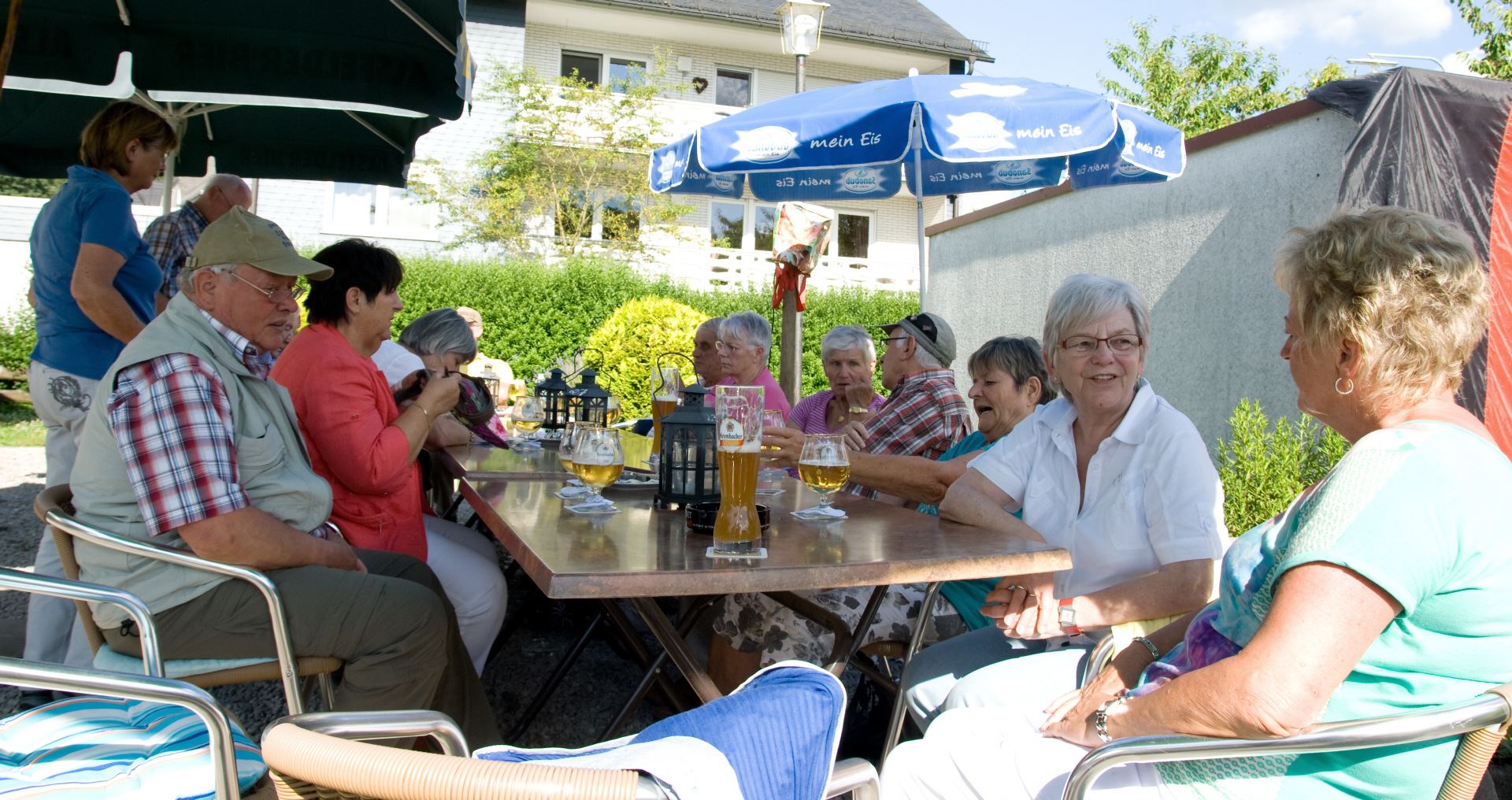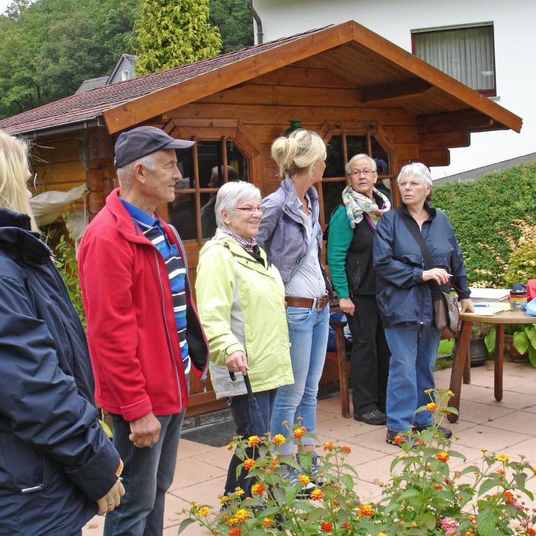 Bei herrlichem Wetter führte uns die kleine Wanderung nach Anzhausen. Mit gemächlichem Gang und einigen Pausen, sowie 2 angebotenen Wegstrecken erreichten wir nach 1 1/2 bzw. 2 Stunden unser Ziel - das "Gasthaus im Weißtal". Inhaber Angelo Leo hatte uns im Biergarten einen schönen Platz reserviert. Als Hunger und Durst gestillt waren, machten wir uns auf, um auf dem kürzesten Weg wieder nach Flammersbach zu wandern.