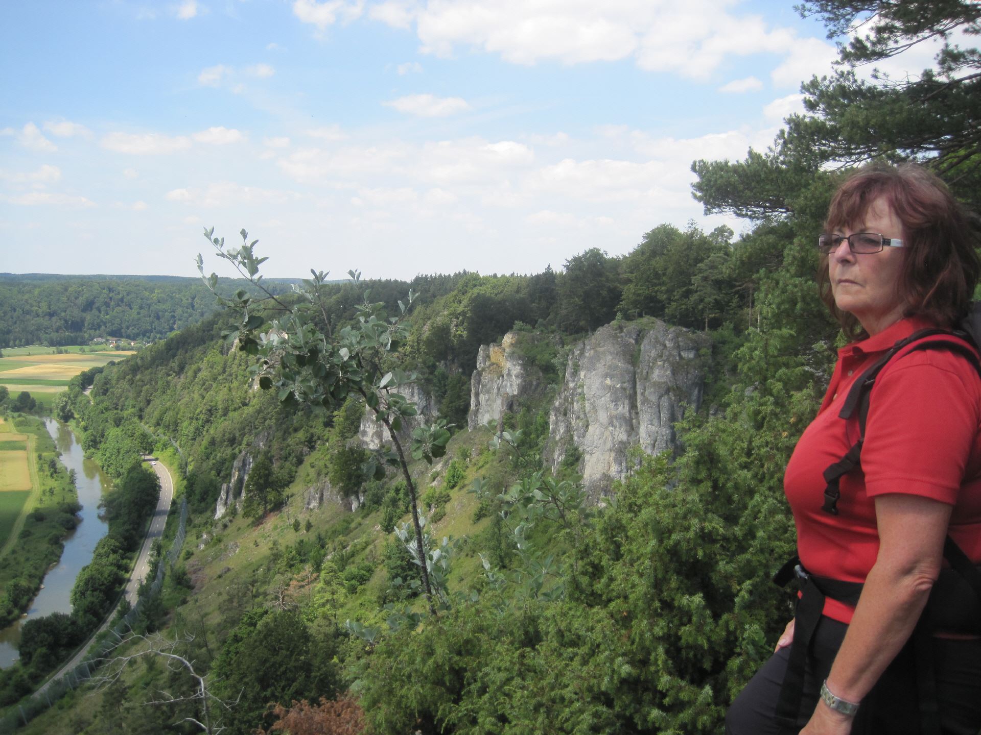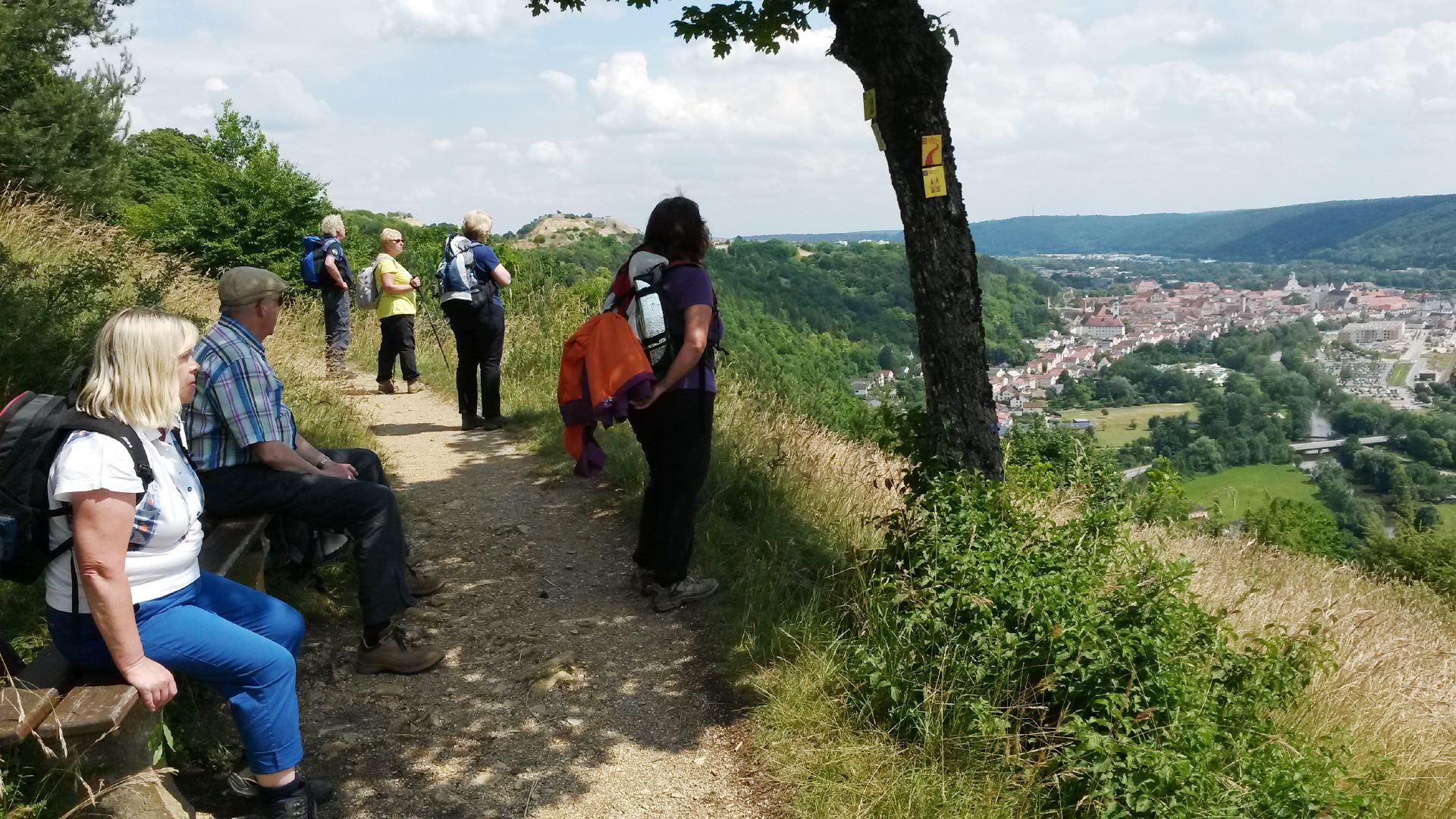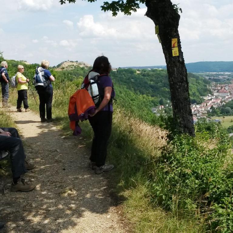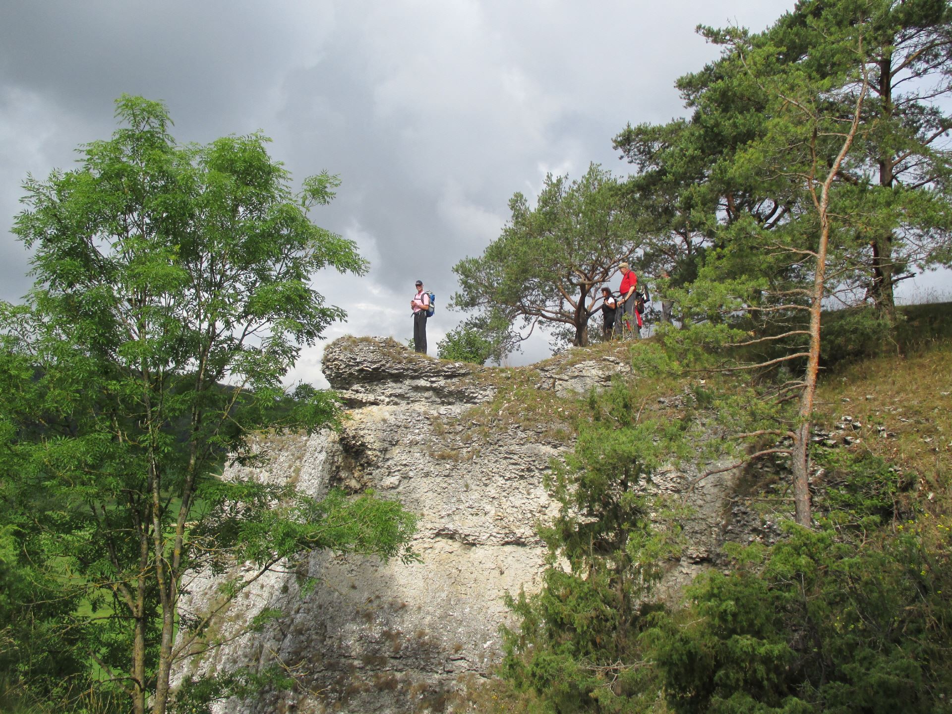 Eichstätt weist eine Vielzahl historischer Gebäude auf, neben Burg, Residenz, Kirchen, Klöstern und Domherrenhöfen, die Katholische Universität Eichstätt-Ingolstadt bei der es sich um die einzige katholische Universität in Deutschland handelt. Gleich zu Beginn der Wanderung wartete ein echtes Highlight auf die Wandergruppe, mächtig und bizarr begrüßten uns zwischen Solnhofen und Eßlingen die zwölf Apostel. Bei den Kalkfelsen handelt es sich um ehemalige Riffe des urzeitlichen Jurameeres, welche im Laufe der Zeit schwer verwittert sind. Von Mörnsheim im malerischen Gailachtal geht es steil bergauf über eine waldreiche Anhöhe. Vor Dollnstein öffnet sich ein weiter, atemberaubender Ausblick auf das Urdonautal, in dem einst die Altmühl in die Urdonau floss. Nach sonniger Wacholderheide und schroffen Kalkfelsen beeindruckt hinter Dollnstein der Burgsteinfelsen mit seinem markanten, turmartigen Aussehen.