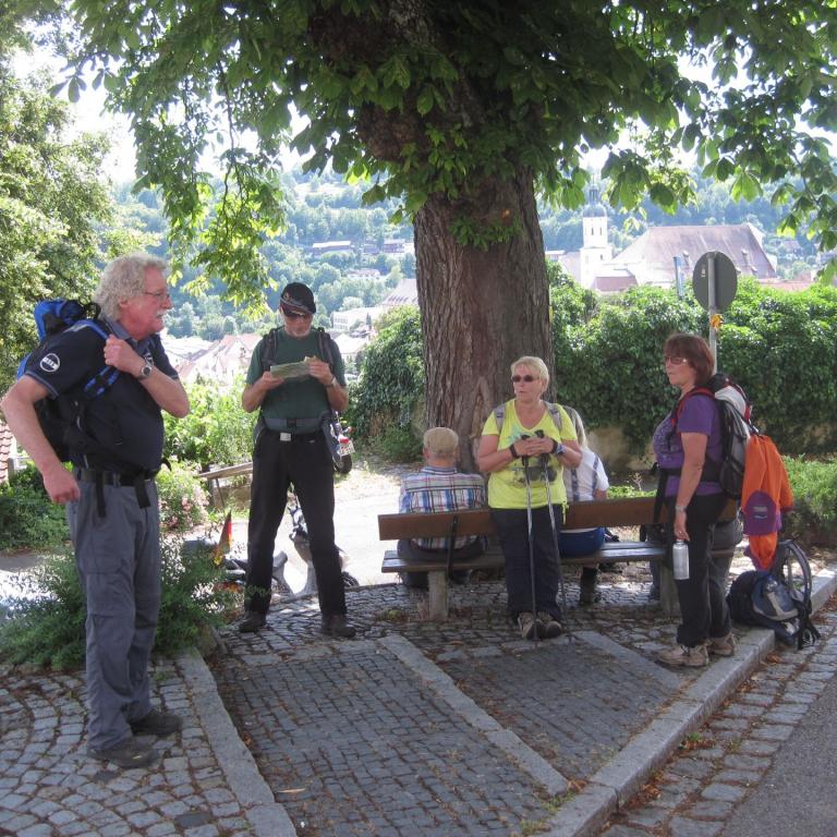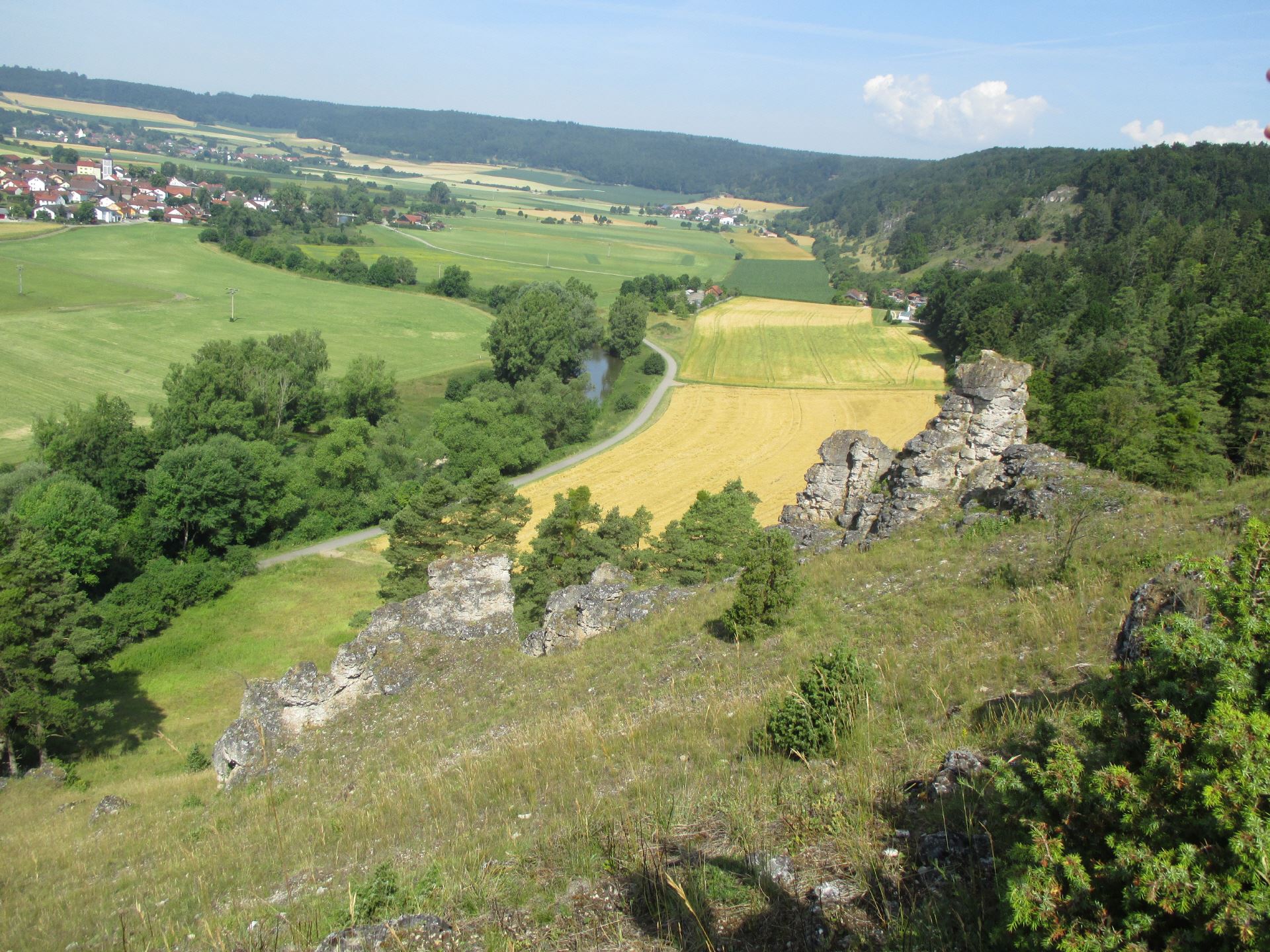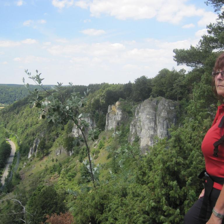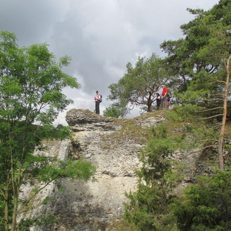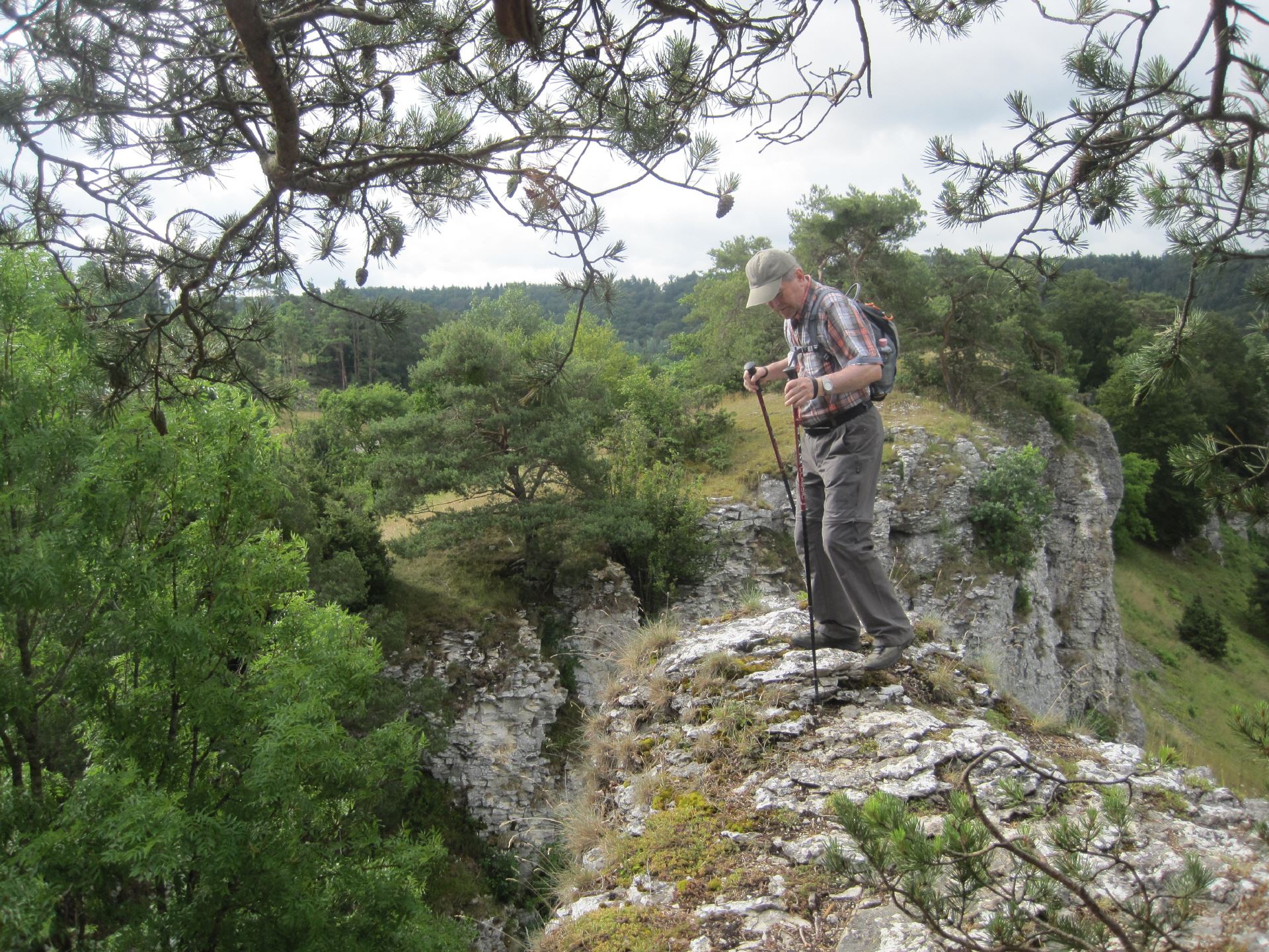 Eichstätt weist eine Vielzahl historischer Gebäude auf, neben Burg, Residenz, Kirchen, Klöstern und Domherrenhöfen, die Katholische Universität Eichstätt-Ingolstadt bei der es sich um die einzige katholische Universität in Deutschland handelt. Gleich zu Beginn der Wanderung wartete ein echtes Highlight auf die Wandergruppe, mächtig und bizarr begrüßten uns zwischen Solnhofen und Eßlingen die zwölf Apostel. Bei den Kalkfelsen handelt es sich um ehemalige Riffe des urzeitlichen Jurameeres, welche im Laufe der Zeit schwer verwittert sind. Von Mörnsheim im malerischen Gailachtal geht es steil bergauf über eine waldreiche Anhöhe. Vor Dollnstein öffnet sich ein weiter, atemberaubender Ausblick auf das Urdonautal, in dem einst die Altmühl in die Urdonau floss. Nach sonniger Wacholderheide und schroffen Kalkfelsen beeindruckt hinter Dollnstein der Burgsteinfelsen mit seinem markanten, turmartigen Aussehen.