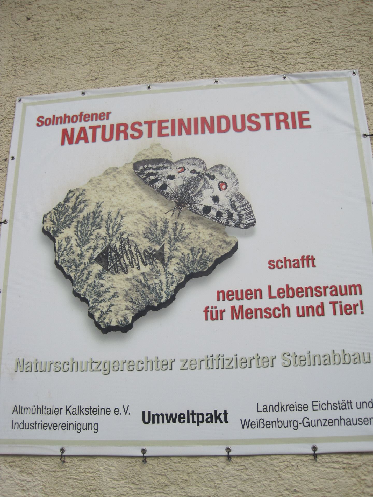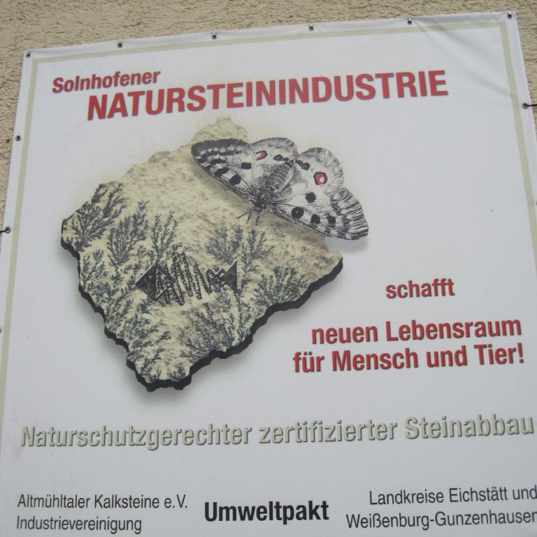 Auf wirtschaftlichem Gebiet ist Eichstätt vor allem durch die Natursteinindustrie bekannt. In den Steinbrüchen der Umgebung werden die Solnhofener Platten (bekannt durch die Lithographie) und der Jura-Marmor gewonnen. Der Blumenberg bei Eichstätt ist der Fundort eines der wohl berühmtesten Fossilien der Welt: das so genannte Berliner Exemplar des Urvogels Archaeopteryx.