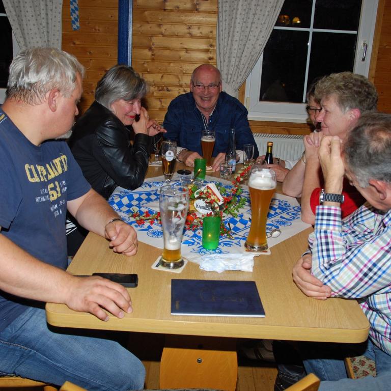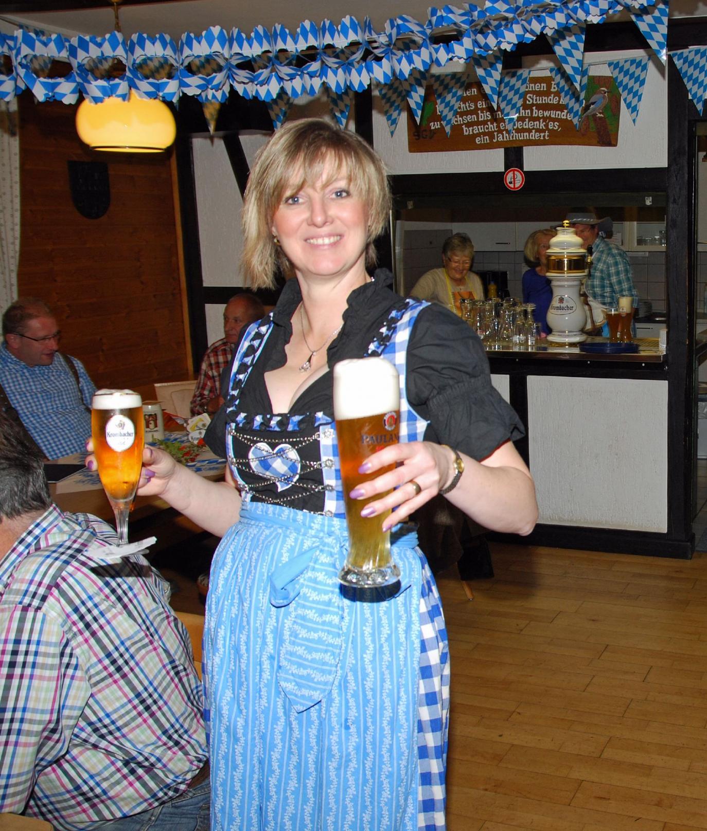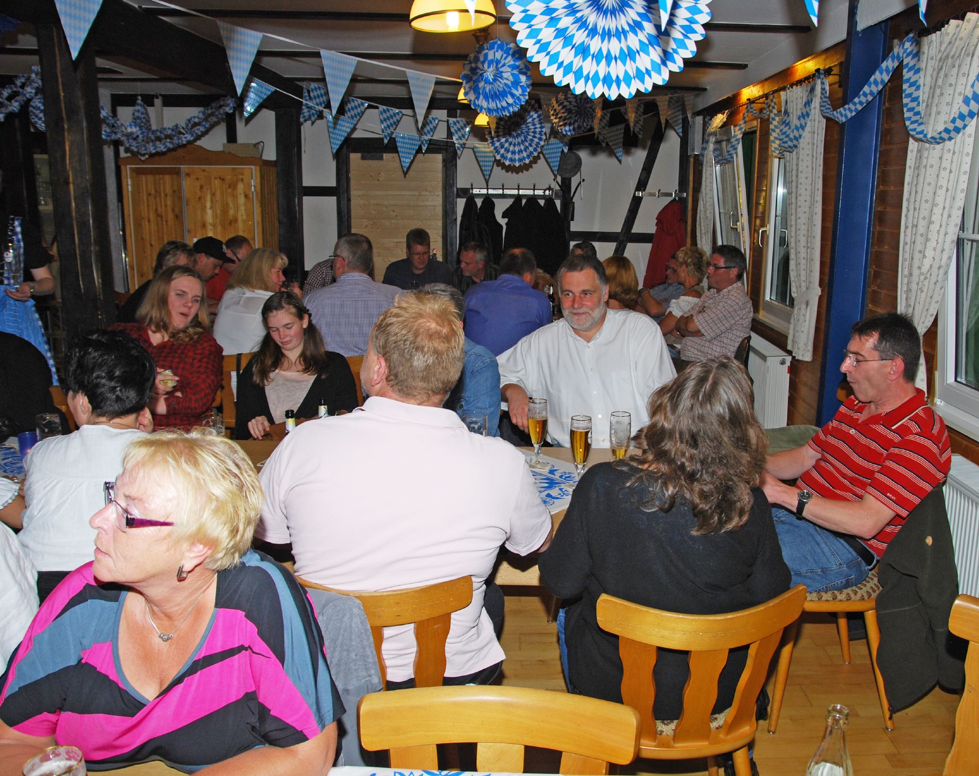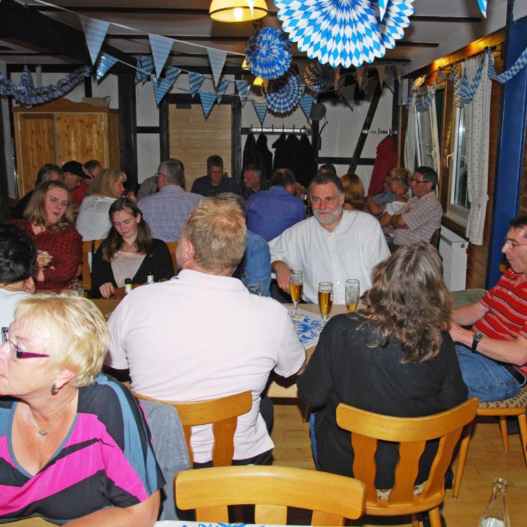 Richtig zünftig ging es beim Oktoberfest im SGV Wanderheim zu. Fröhliche Gäste sorgten für gute Stimmung. Uschi, Alfred Urban, Petra und Carmen bewiteten alle Besucher professionell. Schweinshaxen, Leberkäse, Sauerkraut und Kartoffelpüree gab es gegen den Hunger; Weizenbier und Krombacher Pils vom Fass gegen den Durst. Das Wanderheim war toll dekoriert und man feierte bis in die Nacht.