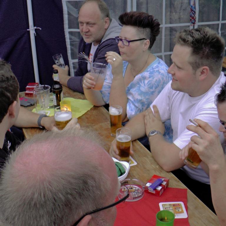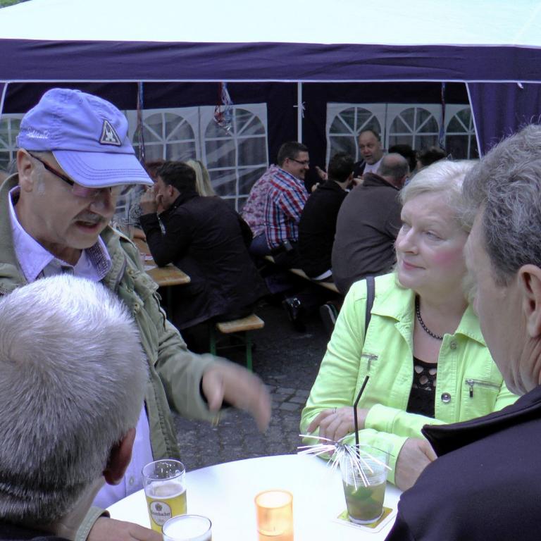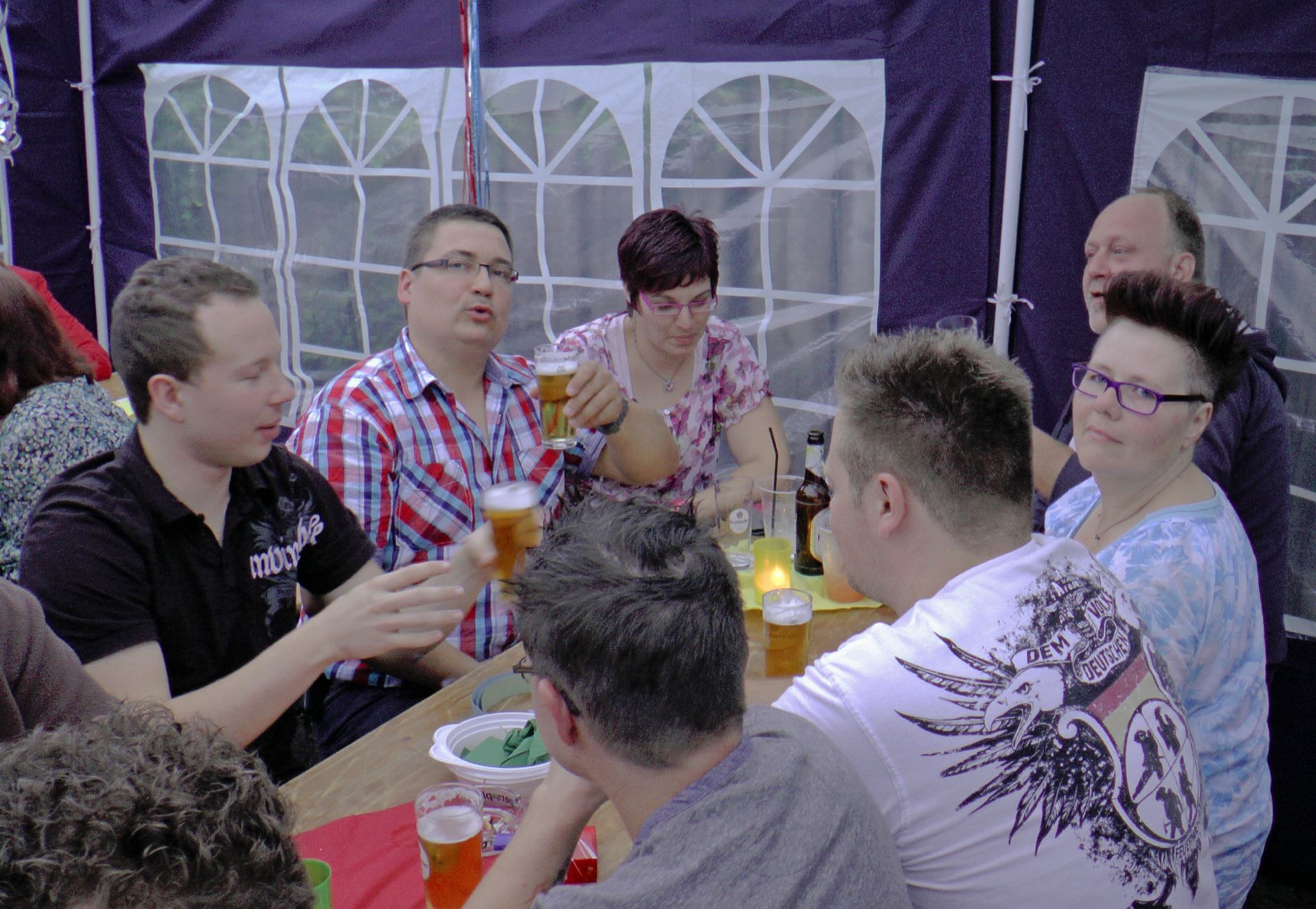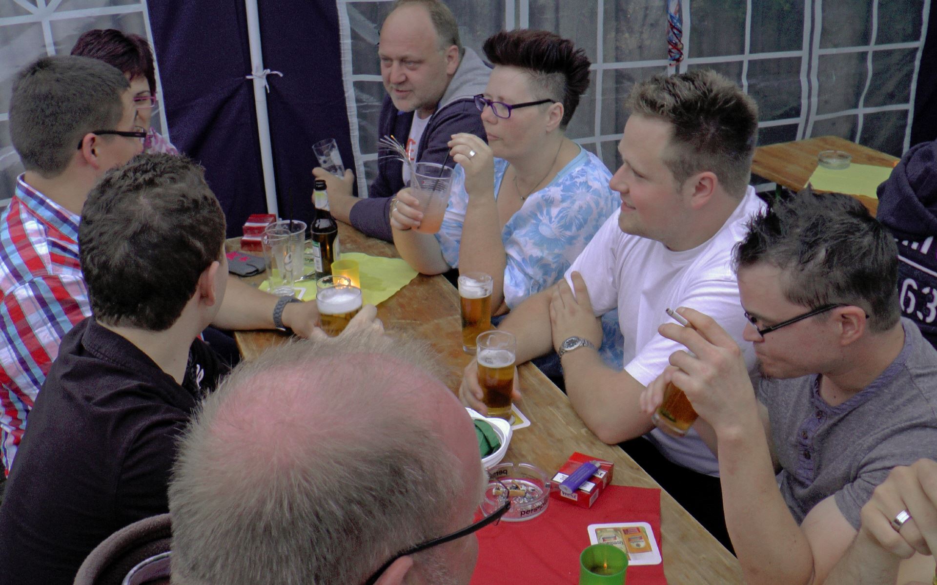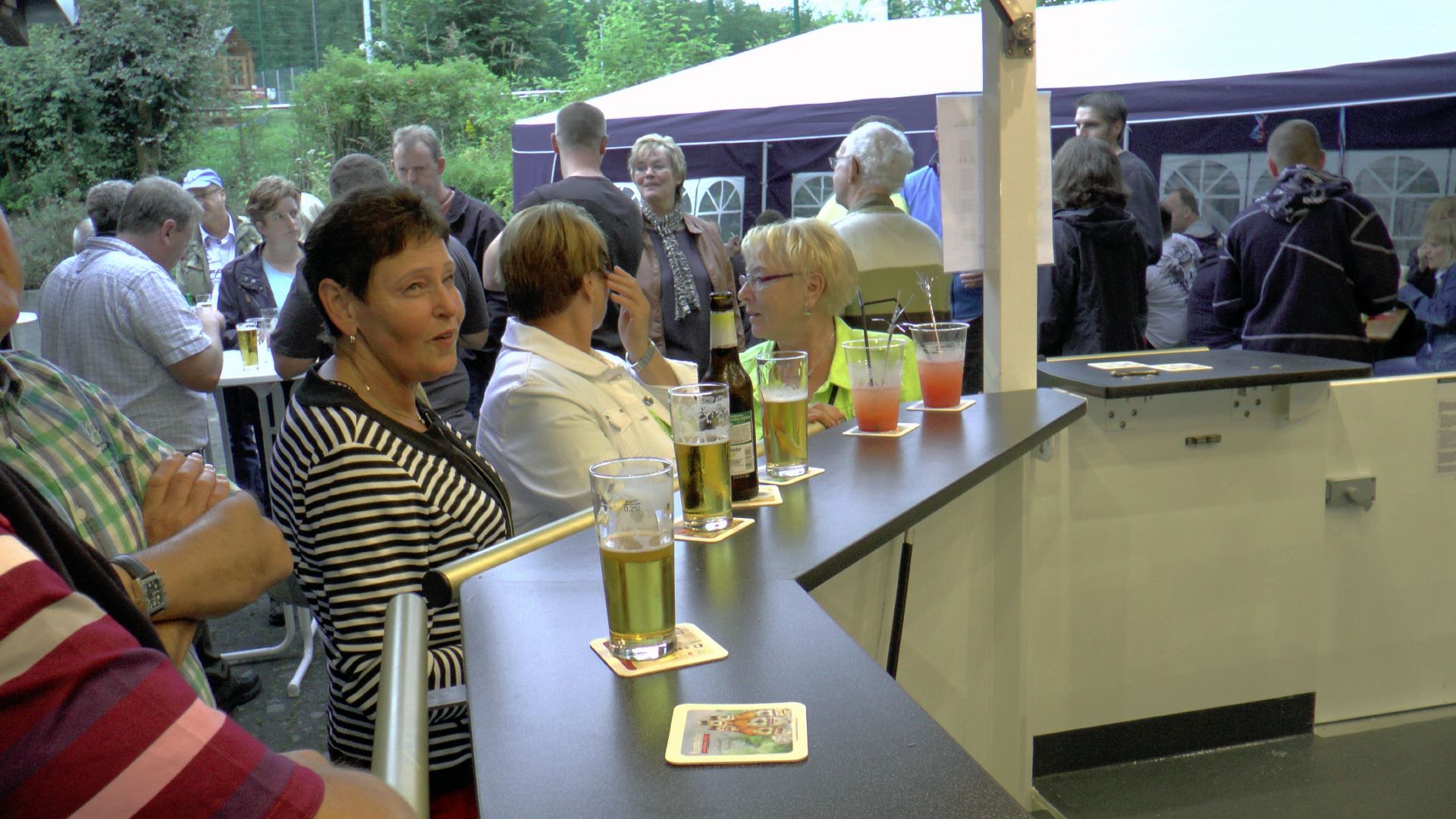 Richtig zünftig ging es beim Oktoberfest im SGV Wanderheim zu. Fröhliche Gäste sorgten für gute Stimmung. Uschi, Alfred Urban, Petra und Carmen bewiteten alle Besucher professionell. Schweinshaxen, Leberkäse, Sauerkraut und Kartoffelpüree gab es gegen den Hunger; Weizenbier und Krombacher Pils vom Fass gegen den Durst. Das Wanderheim war toll dekoriert und man feierte bis in die Nacht.