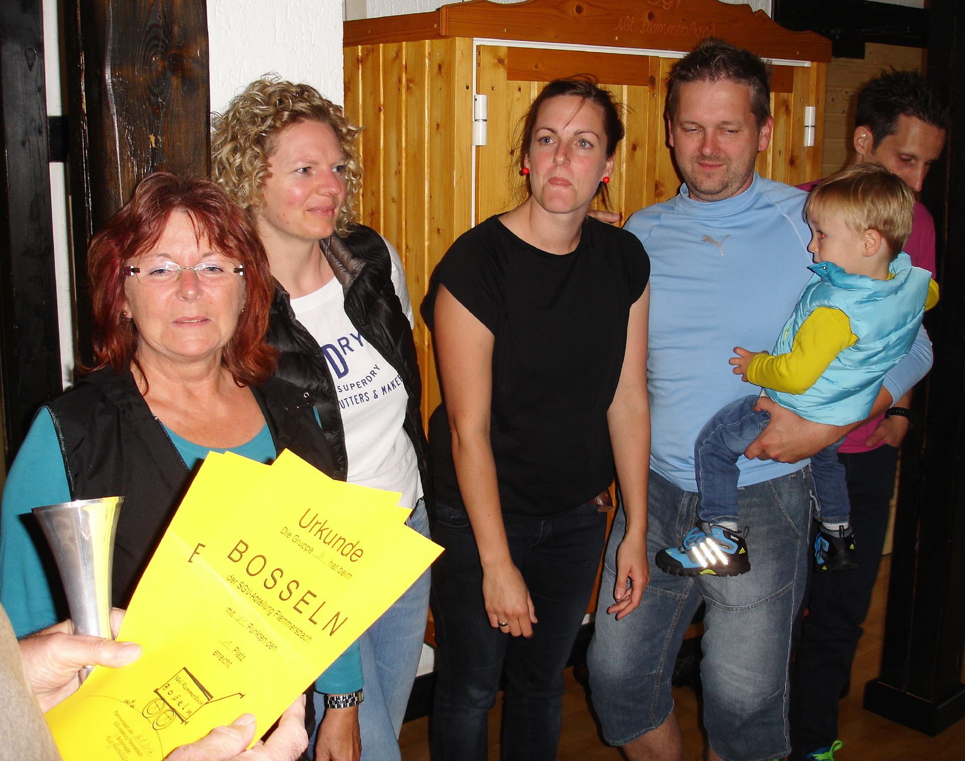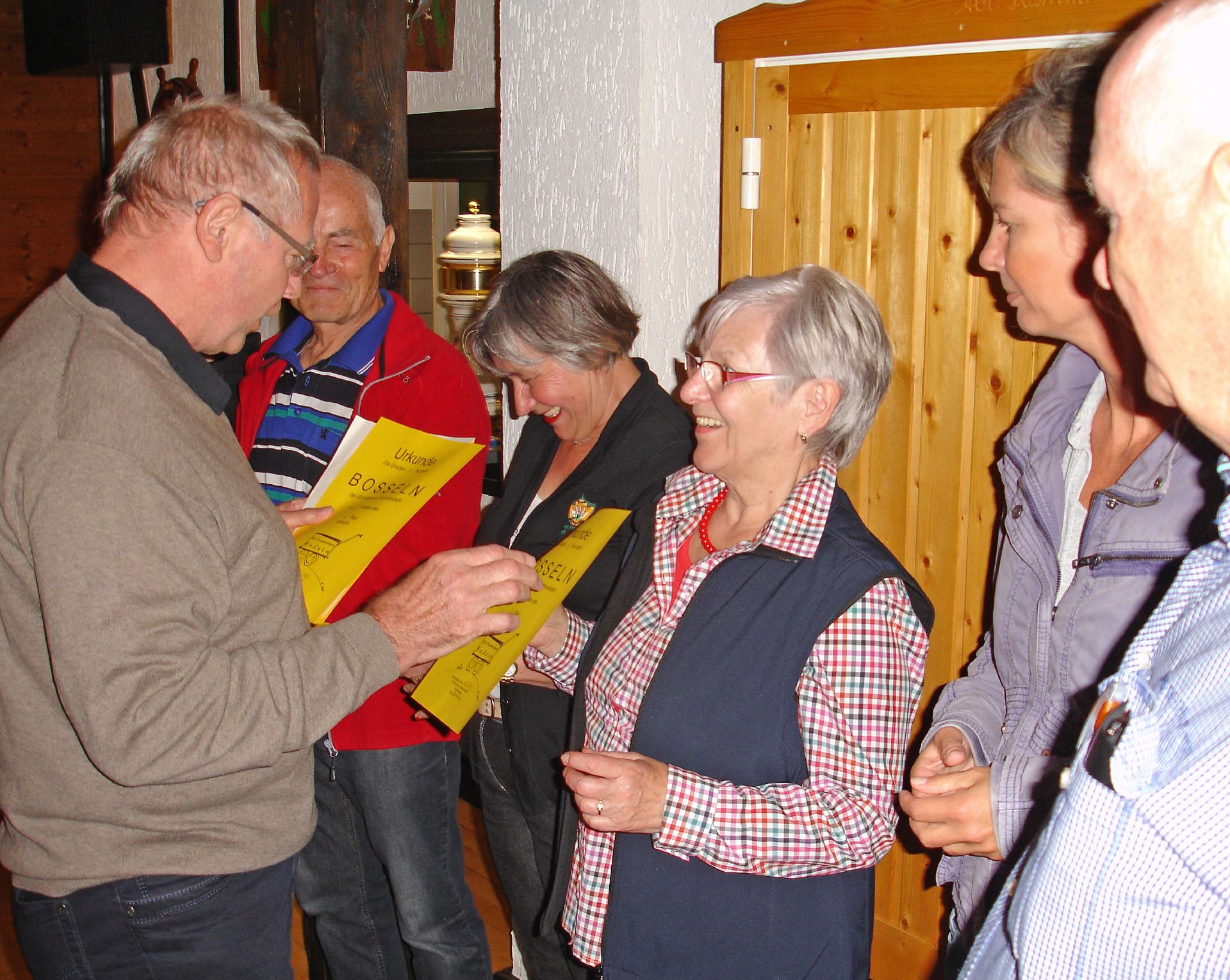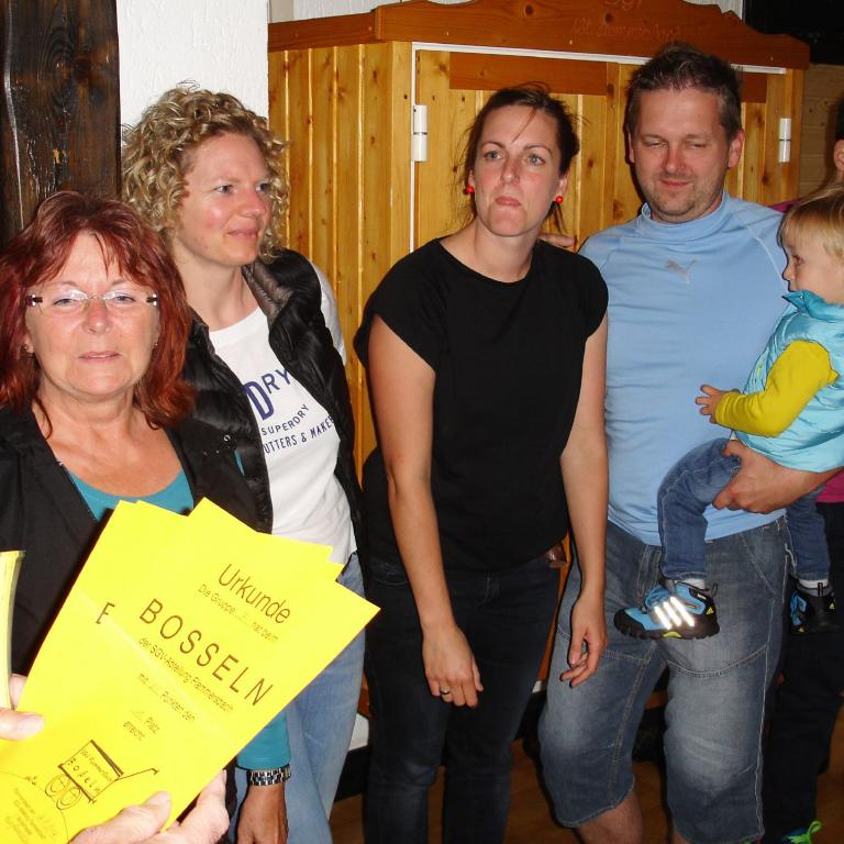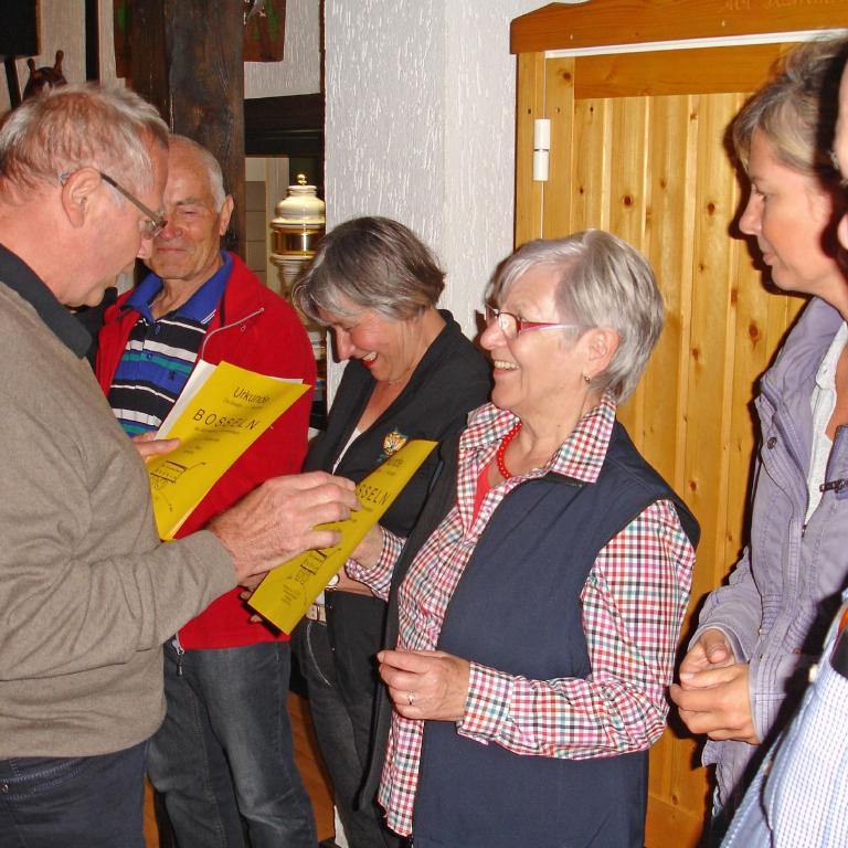 Von einer Reise 1997 ins Alte Land brachte der Singkreis den Boßelsport mit nach Hause. Mit 24 Keglern, 6 Gästen, Kugeln und Proviantwagen zog man los um die beste Mannschaft zu ermitteln. Diesmal war die Boßelstrecke wieder über das ,,Wasserhäuschen" nach Anzhausen gelegt worden. Nach halber Wegstrecke gab es Kaffee und Kuchen. Die Auswertung der Werferlisten erfolgte nach Rückkehr ins Wanderheim. Die Mannschaft 3 mit Regina, Jutta, Heiko, Daniel, Melli und Marianne holten den 1. Platz. Desweiteren gab es 2 zweite und einen 3. Platz. Die Siegerehrung durch Aribert Gruhl und anschließendes Grillen beendete die Veranstaltung. Ute und Theo Fleischhauer bedankten sich bei den Helfern und natürlich für die Sachspenden.