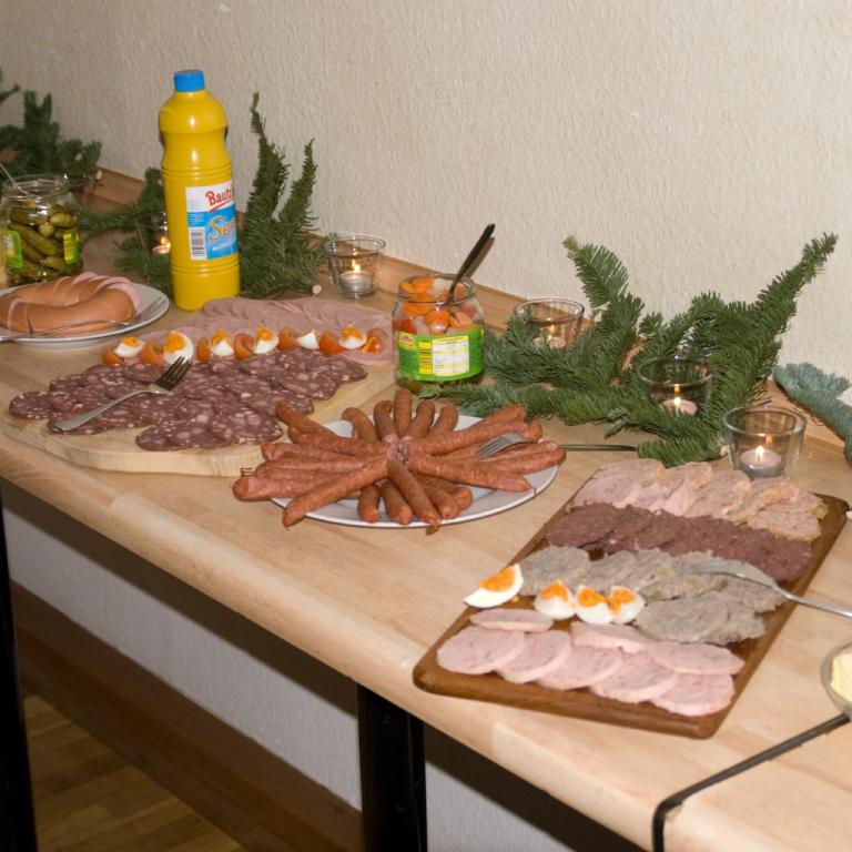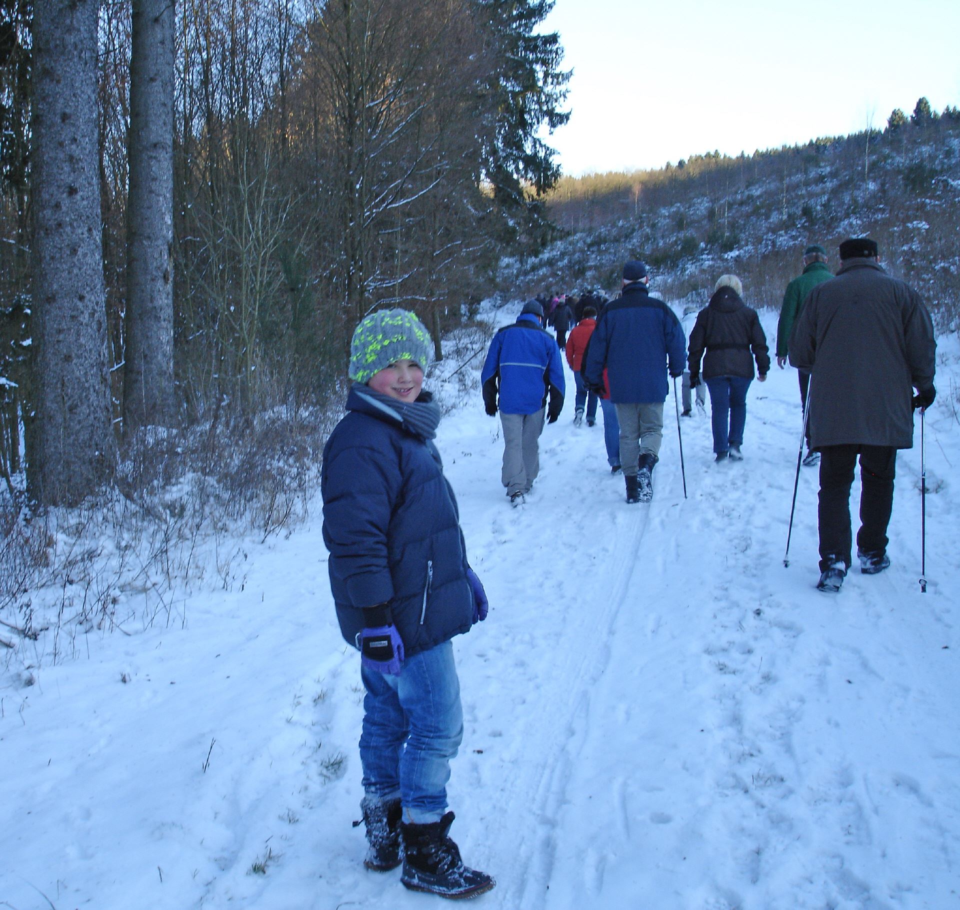 Zur traditionellen Wanderung zwischen den Jahren hatten Karin und Karl-Heinz Kölsch geladen. 30 Wanderfreunde folgten der Einladung und nahmen an der Veranstaltung teil. Bei herrlichem Wetter und viel Schnee wanderten sie durch den Flammerbacher Wald. Im Wanderheim hatte Karin Kölsch schon heißen Kaffee und ein Wurstbuffet vorbereitet an dem sich die Wanderer labten. Da es allen gut schmeckte, blieb nicht mehr viel vom reichlichen Buffet übrig. Wie in jedem Jahr hatten Karin und Karl-Heinz sich wieder viel Mühe mit der Vorbereitung gemacht - vielen Dank !!