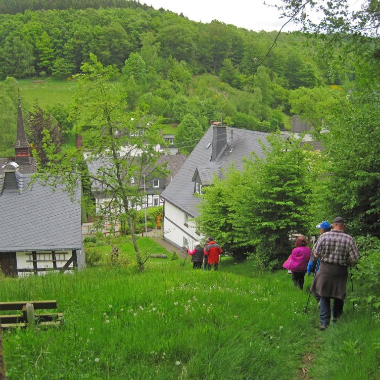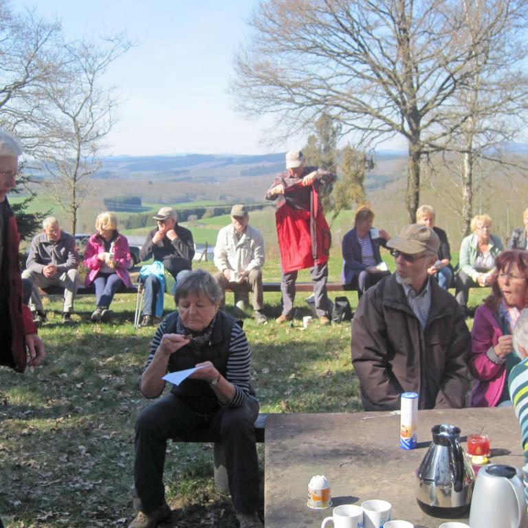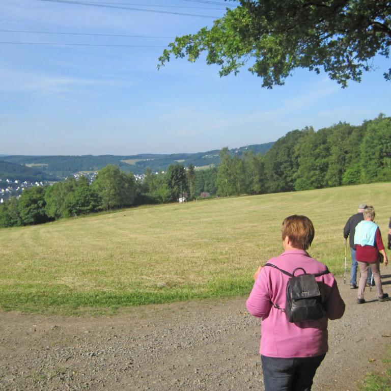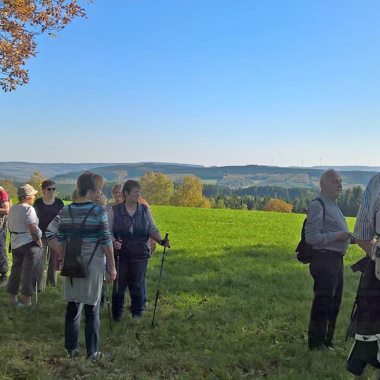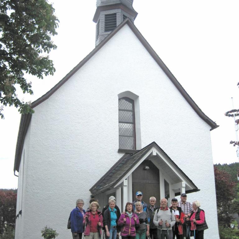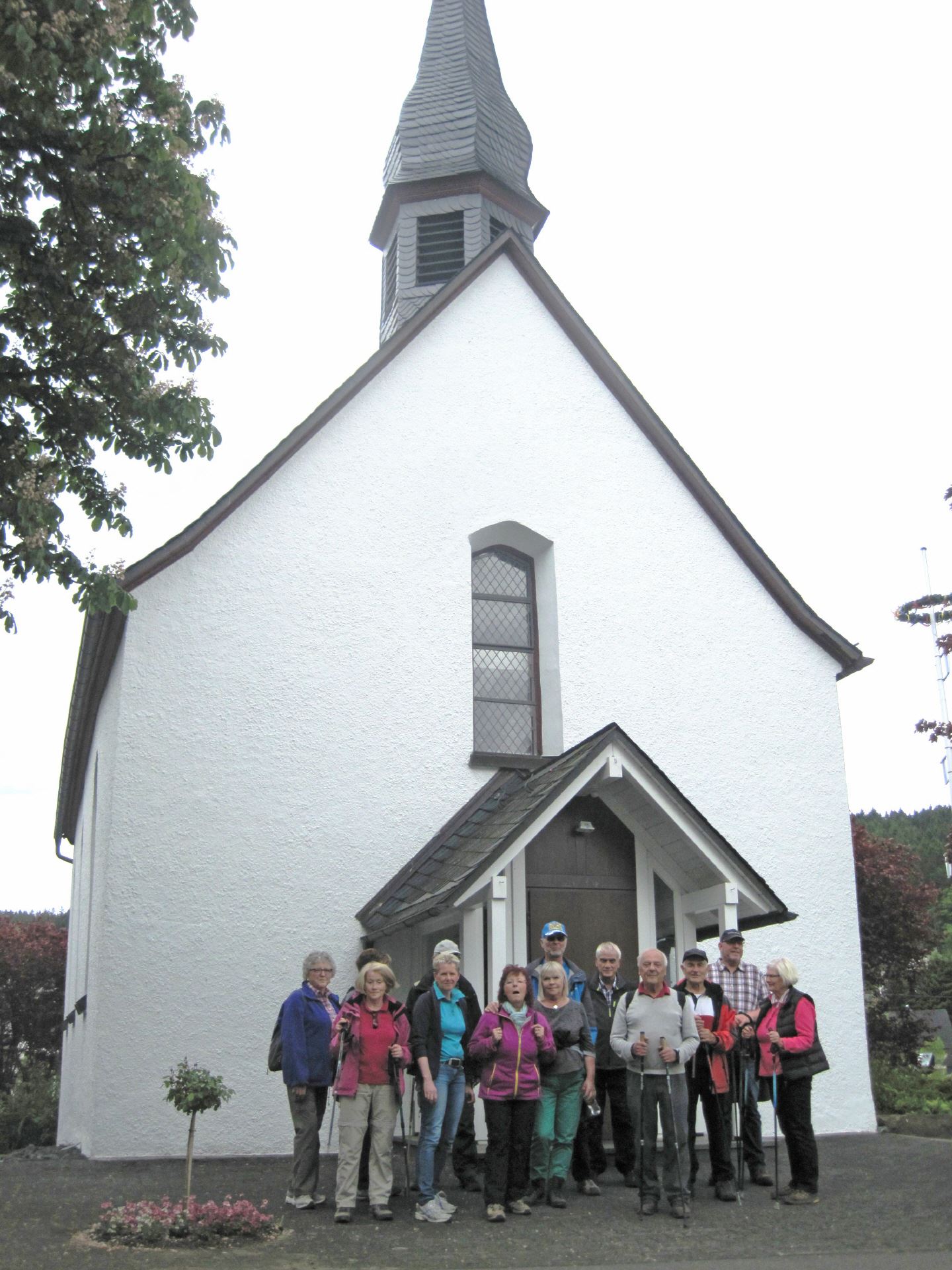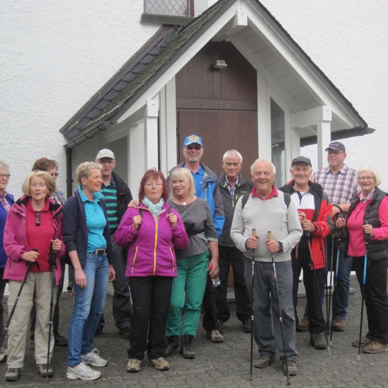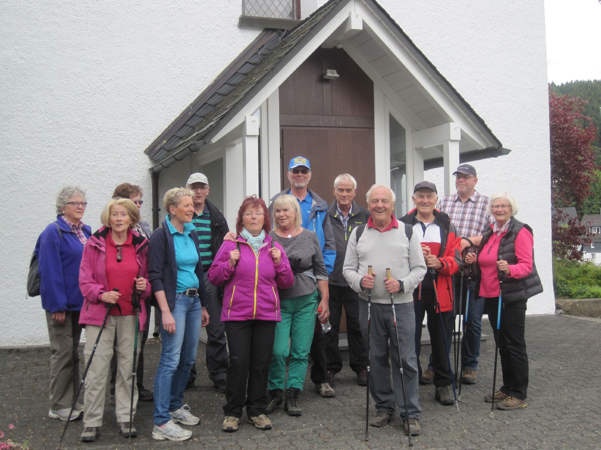 Nach einer Anfahrt in eigenen Pkw`s wurden auf dem Parkplatz "Gut AHE" die Wagen abgestellt. Es begann eine sehr schöne Wanderung im südlichsten Zipfel des Sauerlandes. Auf schönen Waldwegen wanderten 15 Pers. auf dem mit A1 gezeichneten Pfaden im Wald nach Brachthausen. Nach Durchquerung des Ortes erst über Wiesenwege, dann wieder im Wald über Wegescheid nach Wirme. Steil ging es ins Tal hinab und in Wirme wieder recht steil auf einem Fahrweg bis zur Wallfahrtskirche Kohlhagen. Eine Kirchenbesichtigung war aufgrund eines Gottesdienstes nicht möglich. Von hier war es nicht mehr weit bis zum Ausgangspunkt "Gut Ahe", wo bei Kaffee, Kuchen, Waffeln und sonstigen Köstlichkeiten ein schöner Wandertag ausklang.